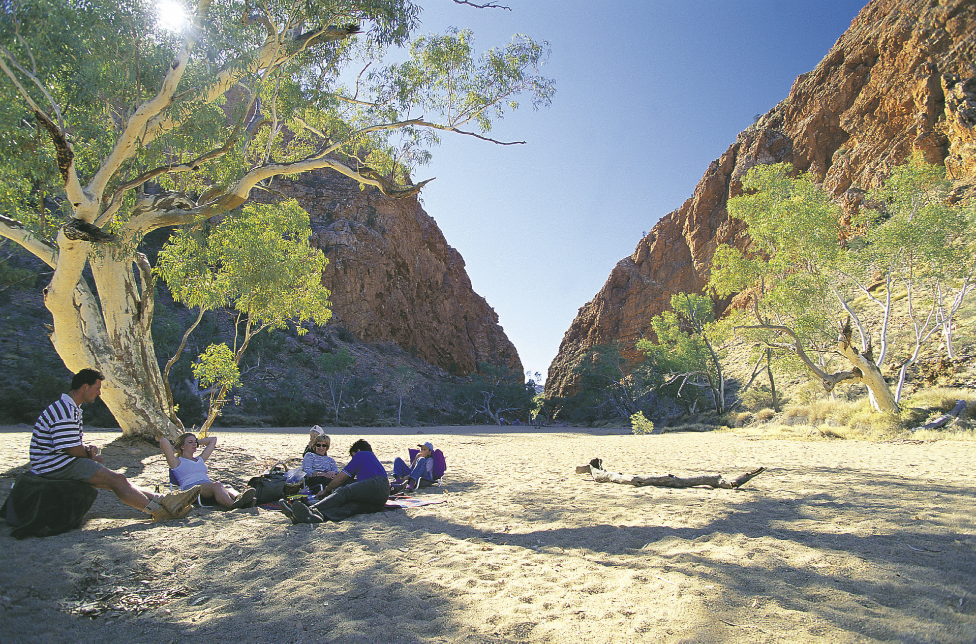 West MacDonnell Ranges - Alice Springs (F/M; Ende: 18.30 Uhr).Sie erkunden die Ormiston Gorge mit ihren hoch aufragenden, roten Wänden. Weiterfahrt gen Westen und Stopp für ein erfrischendes Bad im Ellery Creek Bighole. Sie erleben die Standley Chasm, eine 3m breite und 80m hohe Schlucht inmitten der West MacDonnell Ranges. Bei Simpsons Gap, wo sich Traumzeitgeschichten kreuzen, haben Sie eine weitere Möglichkeit für ein erfrischendes Bad, bei dem Sie einheimische Wildtiere beobachten können. Anschließend Weiterfahrt nach Alice Springs.