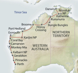 Von Perth, der Hauptstadt Westaustraliens im Süden des Landes stoppen Sie in diversen Nationalparks und sehen Kängurus, Koalas, Delfine u.v.m. entlang der Küste gen Norden. Am Ningaloo Reef entdecken Sie die bunte Unterwasserwelt und erkunden dann das Hinterland. Sie erkunden die diversen Schluchten in der Kimberley Region, die alle zu einem erfrischenden Bad einladen. Ein Höhepunkt nach dem anderen präsentiert sich Ihnen. Freuen Sie sich auf den Rundflug über die Bungle Bungles, bevor Sie ins Northern Territory gelangen, wo Sie die Katherine Gorge per Boot erkunden und Ihre Reise in Darwin endet.