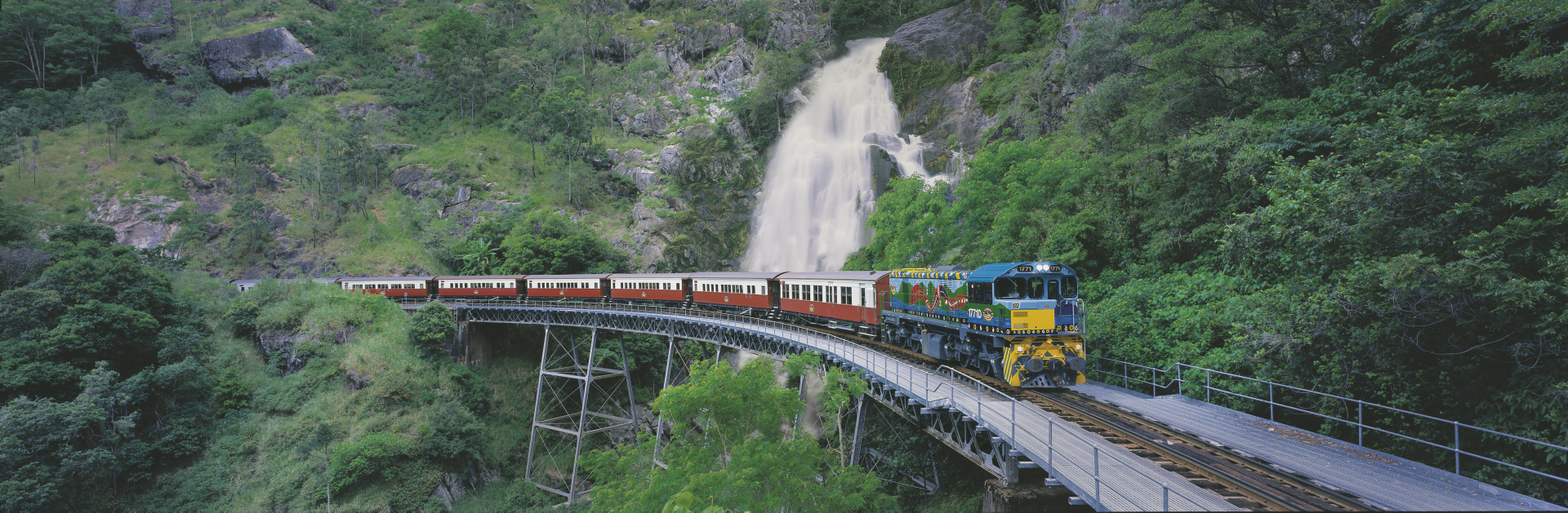 Kuranda (F/A).Bei dem heutigen Tagesausflug fahren Sie mit einer historischen Eisenbahn durch den Regenwald. Endstation ist das urige Dorf Kuranda. Nachmittags steigen Sie in eine Gondel und gleiten zurück ins Tal.