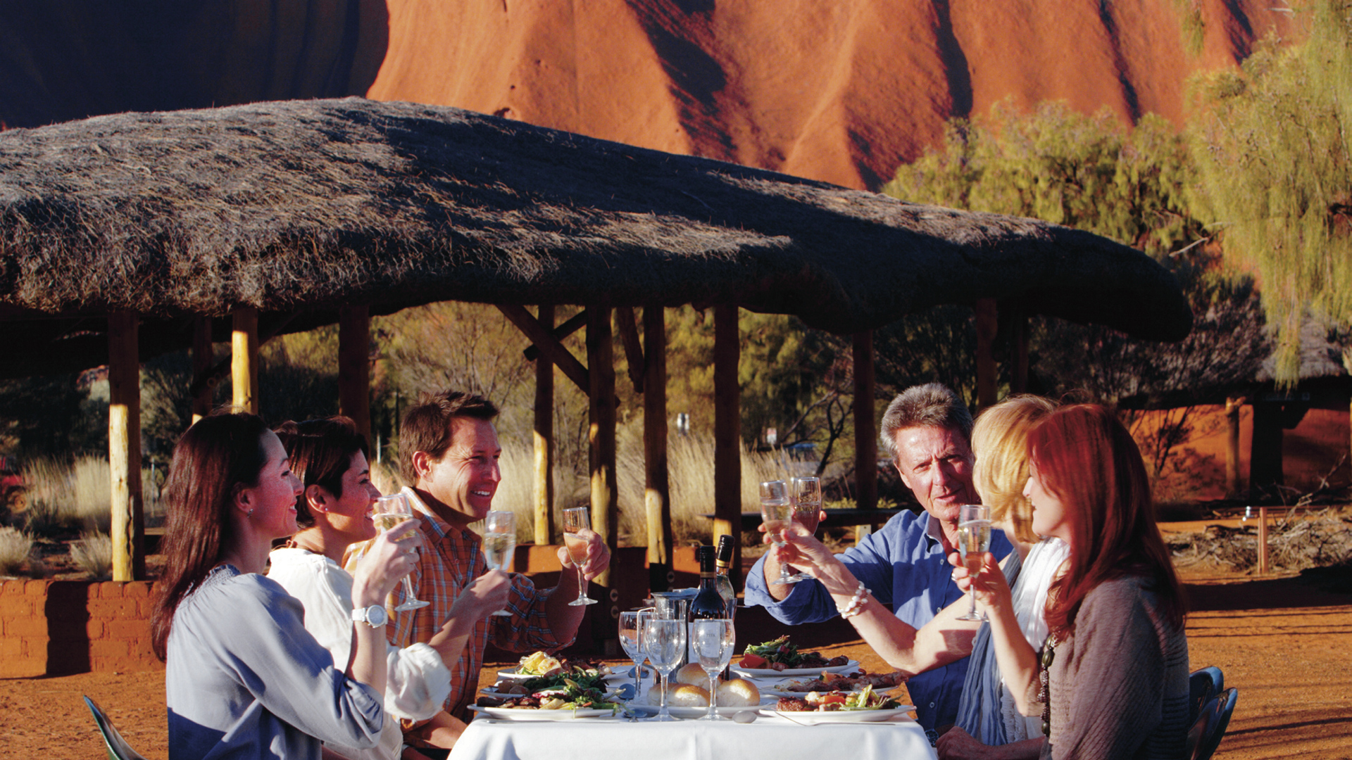 am berühmten Monolithen Uluru (Ayers Rock) bei einem stilvollen Glas Sekt/Wein und Canapés. Es folgt ein