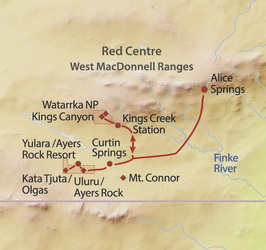 Erleben Sie die Höhepunkte des Roten Zentrums: die Outbackstadt Alice Springs, Wanderung am Kings Canyon, leuchtend rote Farben am Uluru und den Kata Tjutas.
