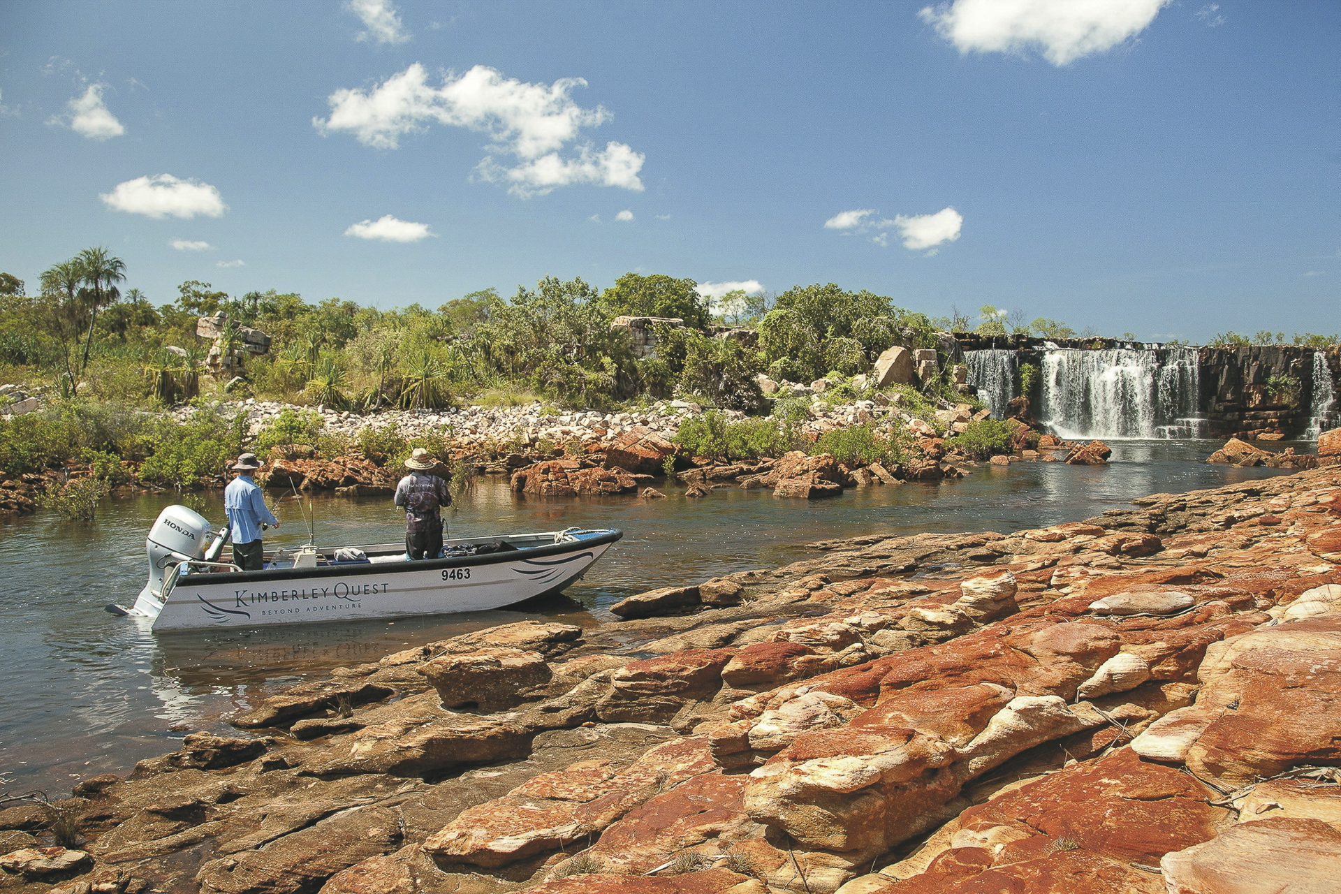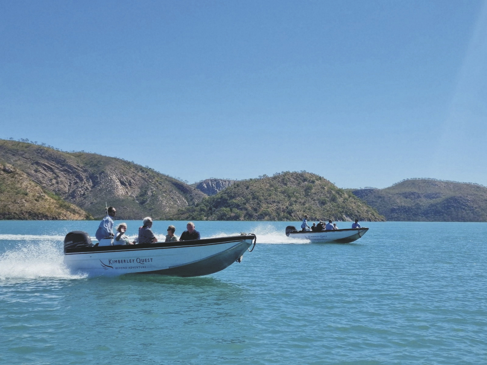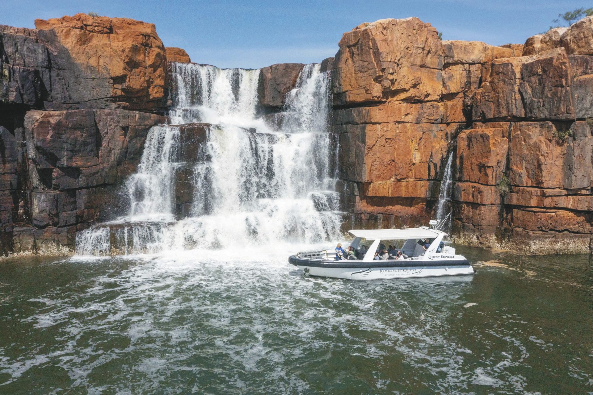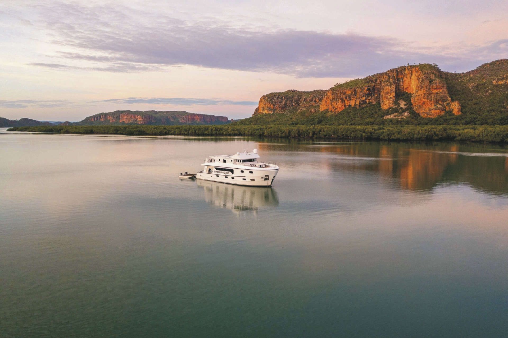 Entdecken Sie die südliche Kimberley Region vom Wasser aus, erkunden Sie die Fjorde und erleben Sie atemberaubende Landschaften abseits der üblichen Touristenpfade. Die Kimberley Region erlebt große Gezeitenbewegungen, die die Reiseroute beeinflussen. Unabhängig von den Gezeiten besuchen Sie spektakuläre Sehenswürdigkeiten, unternehmen Landausflüge mit dem luxuriösen Schnellboot Quest Express zu vielen unberührten Orten und haben die Möglichkeit, Ihr Angelglück zu versuchen.