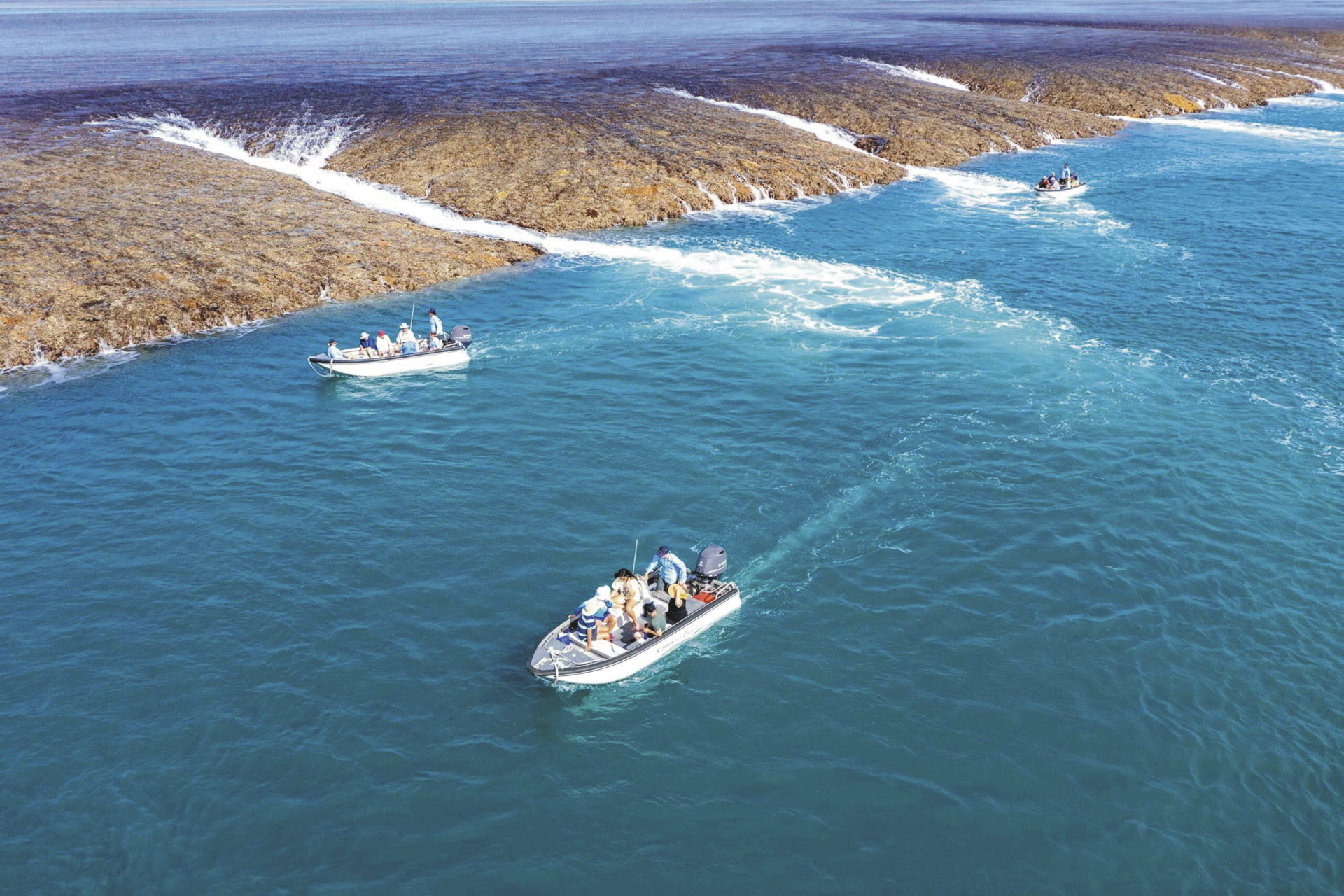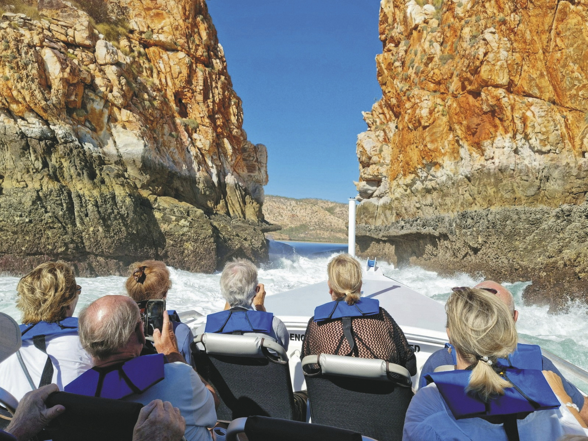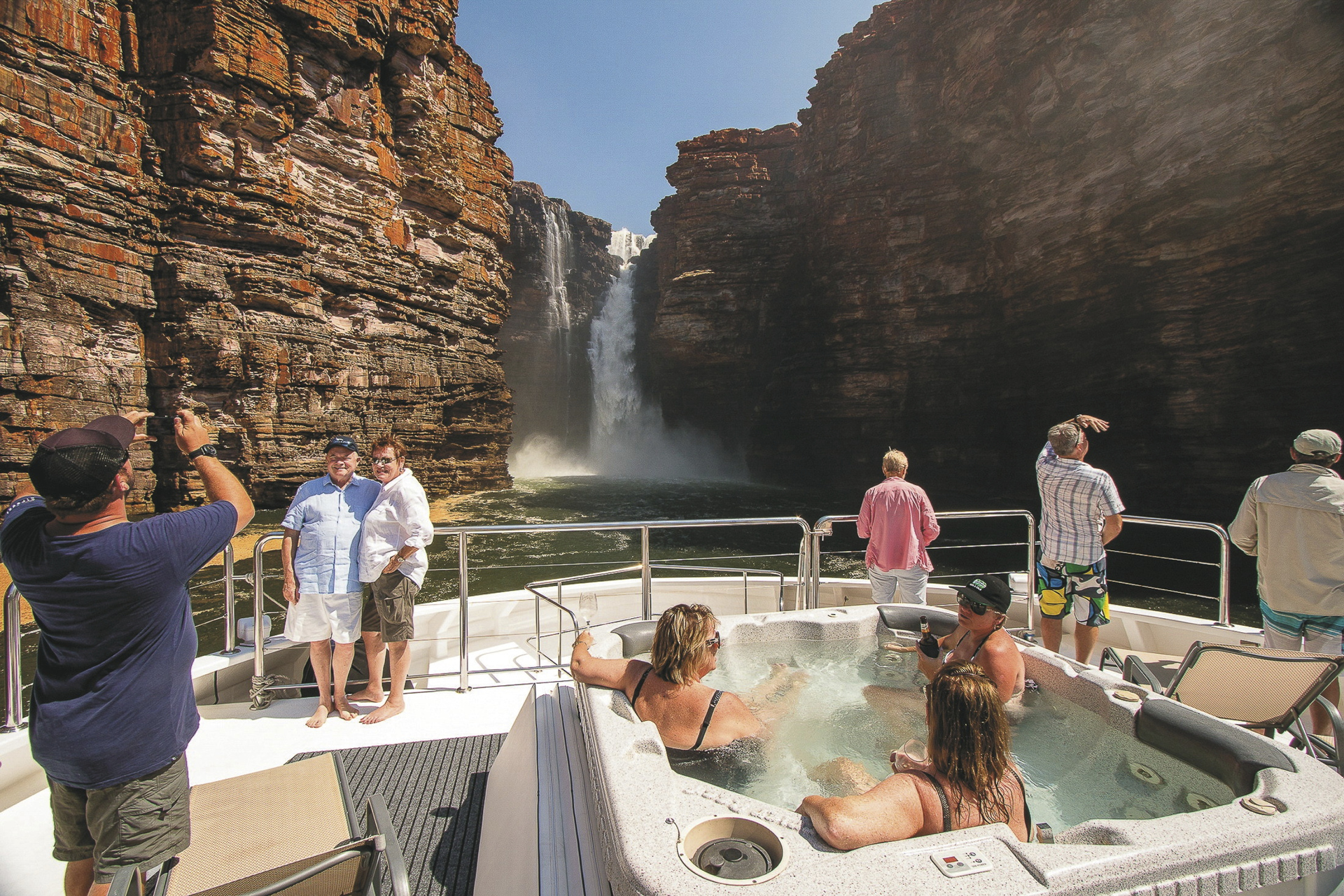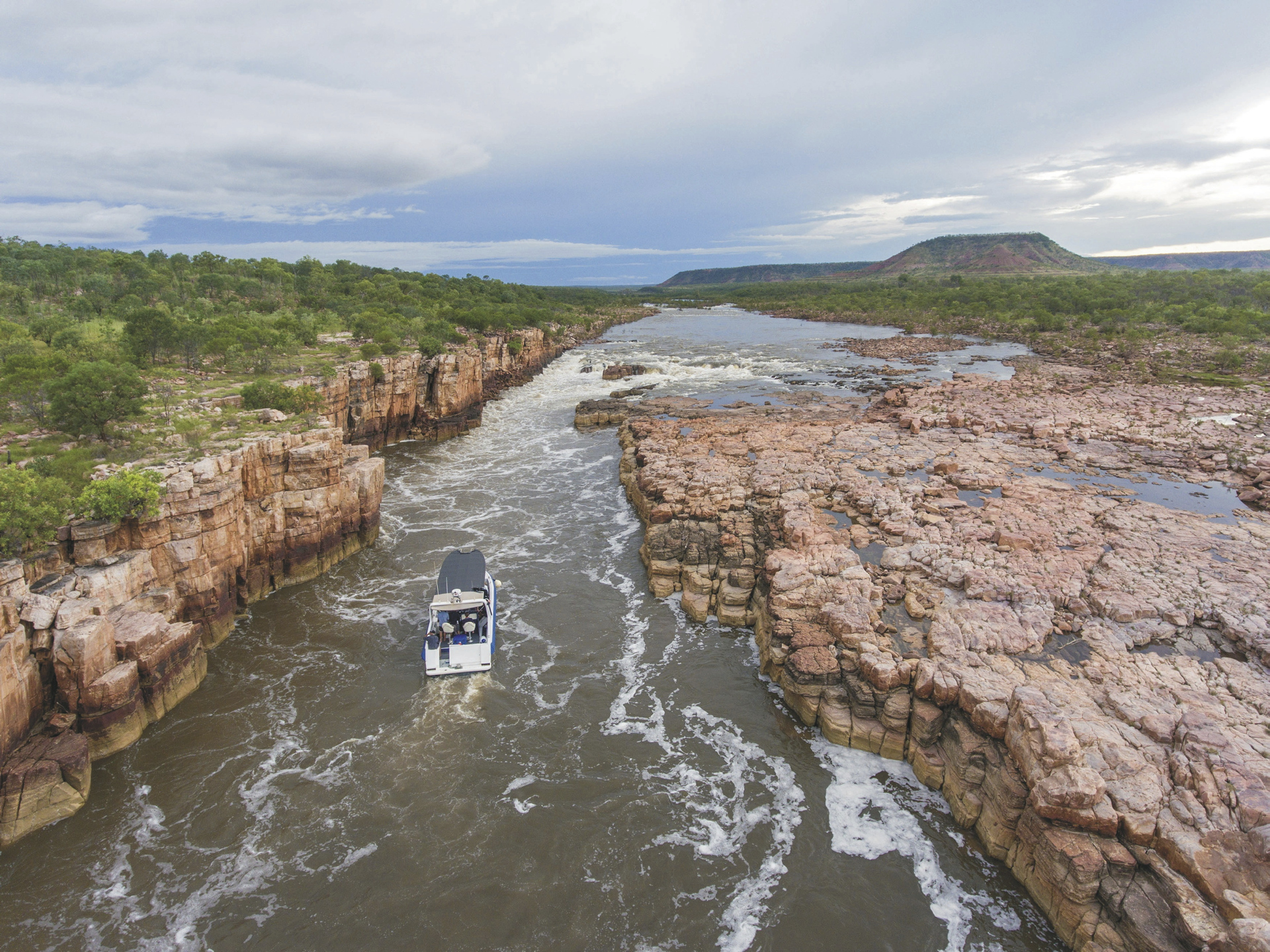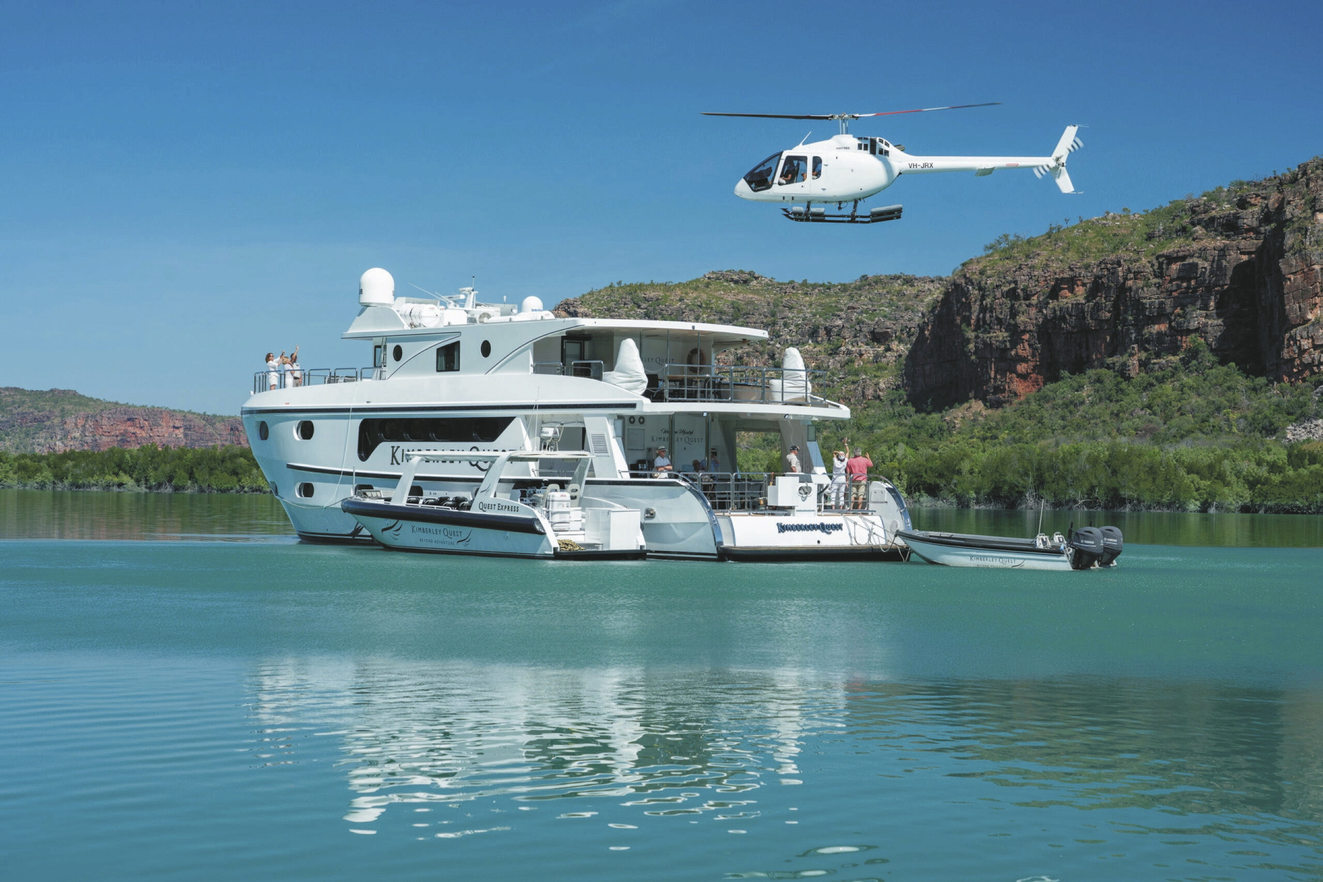Entdecken Sie die südliche Kimberley Region vom Wasser aus, erkunden Sie die Fjorde und erleben Sie atemberaubende Landschaften abseits der üblichen Touristenpfade. Die Kimberley Region erlebt große Gezeitenbewegungen, die die Reiseroute beeinflussen. Unabhängig von den Gezeiten besuchen Sie spektakuläre Sehenswürdigkeiten, unternehmen Landausflüge mit dem luxuriösen Schnellboot Quest Express zu vielen unberührten Orten und haben die Möglichkeit, Ihr Angelglück zu versuchen.