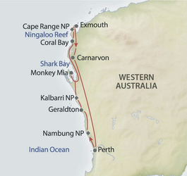 Ningaloo Reef - Exmouth (F/M/A).Individuelle Erkundung des Ningaloo Reef. Unternehmen Sie (optional) eine Bootstour, schwimmen Sie mit Mantarochen oder erkunden Sie das Riff beim Schnorcheln. Genießen Sie die wunderschönen Strände rundum Coral Bay oder halten Sie Ausschau nach Baby-Haien. Abends Fahrt nach Exmouth.