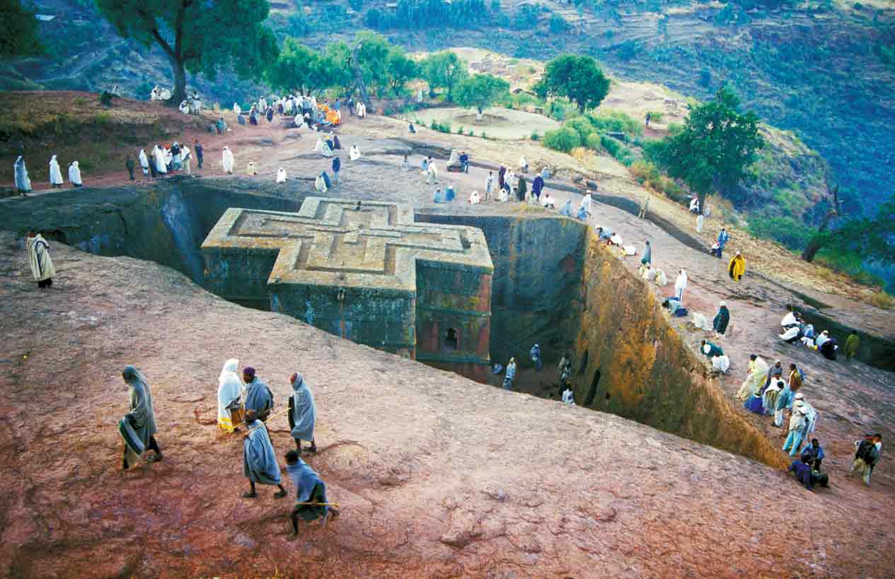 Gigantische Stelen und Obelisken in Axum – Legenden erzählen, die Bundeslade wurde von Jerusalem einst hierher gebracht. Labyrinthe aus unterirdischen Gängen und das Spiel von Licht und Schatten haben die Gewissheit entstehen lassen – Engel haben geholfen, diese Kirchen aus dem Felsen zu hauen.