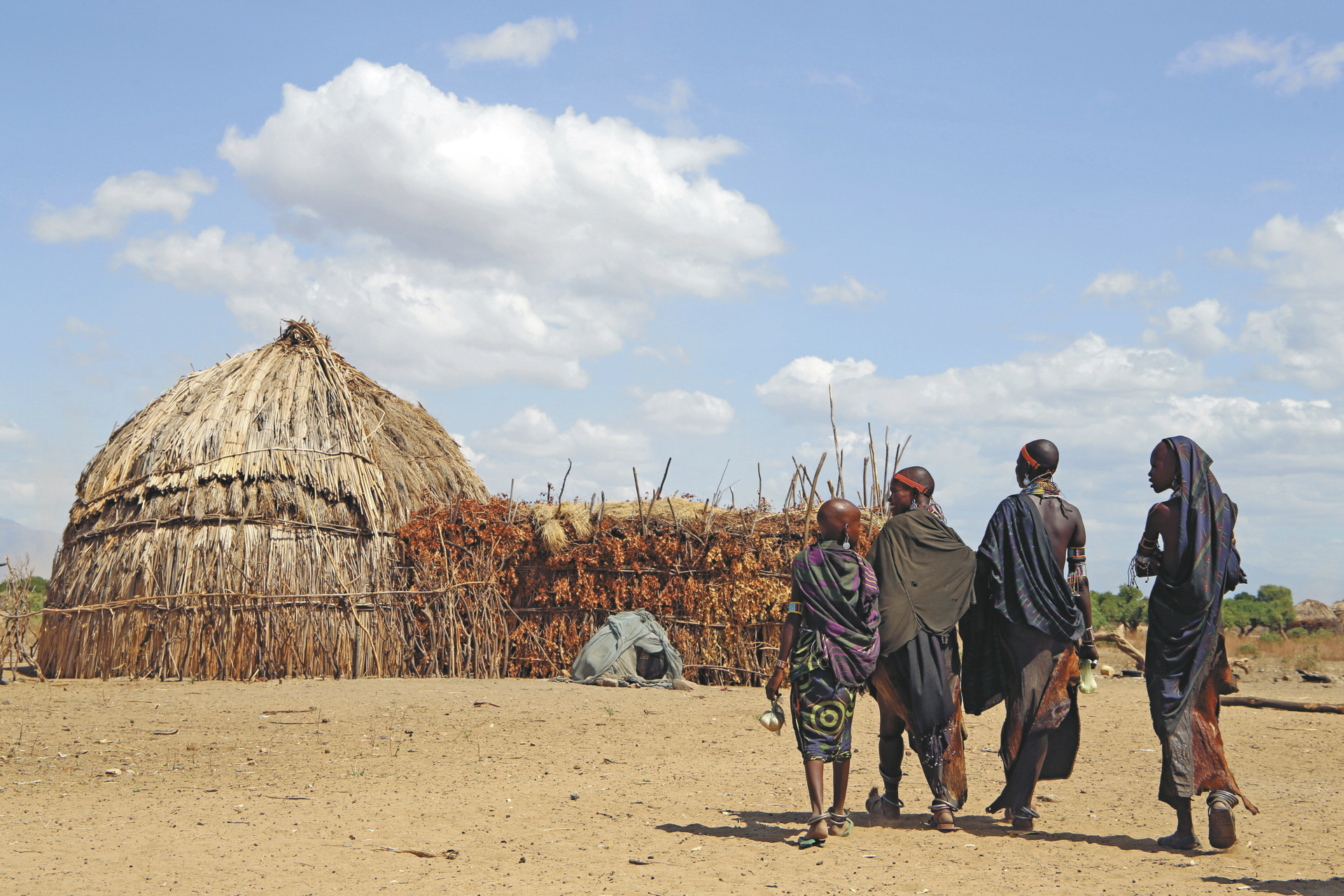 Besuch bei den Karo (F/A).Entlang von Trockenflussläufen, Termitenhügeln und Dornbuschsavannen fahren Sie in das abgelegene Gebiet der Karo, welche in drei Hauptsiedlungen direkt am Omo leben. Das Leben der Karo basiert auf Viehzucht, Imkerei, Schwemmlandfeldbau und Fischfang. Bei einem Rundgang durch ein Dorf gewinnen Sie Einblicke in den lokalen Alltag. Die Karo sind für ihre kreative Körperkunst bekannt. Während die Männer den Leib mit Mustern aus Erdfarben bemalen und oft eine dekorierte „Lehmhaube“ als Statussymbol tragen, schmücken sich die Frauen mit Lippennagel, knubbeliger Ockerfrisur und Perlenketten.