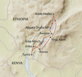 In Südäthiopien erwarten Sie die großartigen Landschaften des afrikanischen Grabenbruchs und eine weltweit einzigartige kulturelle Vielfalt. Von Addis Abeba folgen Sie einer Perlenschnur von großen Seen durch den Afrikanischen Grabenbruch nach Süden. Trockene Akaziensavanne, schroffe Gebirge und fruchtbare Kaffeeregionen wechseln sich ab. Auf quirligen Wochenmärkten, in Dörfern und bei vielfältigen Wegbegegnungen lernen Sie den Alltag und die Traditionen verschiedener ethnischer Gruppen kennen. Tauchen Sie ein in eine fremde Welt, die Sie nachhaltig beeindrucken wird!