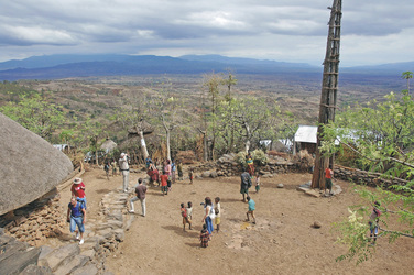 Königreich der Konso (F/A).Rituale, Architektur und der geniale Terrassenfeldbau des Konso-Königreichs zählen zum UNESCO-Weltkulturerbe. Am Vormittag begeben Sie sich in die schroffe Hügellandschaft und entdecken eines der Dörfer und die anliegenden Felder zu Fuß. Bestaunen Sie die massiven steinernen Ringmauern des Dorfes, seiner ‚Stadtviertel‘ (Kanta) und Gehöfte. Am zentralen Versammlungsplatz und im Haus der Jungmänner wird die Geschichte und Kultur lebendig. Tauchen Sie ein in die Geschlechterordnung, den Begräbniskult der Waka und das Weben bunter Stoffe. Nicht minder faszinierend ist der praktizierte Mischfeldbau, ein gern bemühtes Beispiel für ökologisch nachhaltige Landwirtschaft. Seit Jahrhunderten terrassieren die Konso ihre Berghänge und haben dabei eine einzigartige Kulturlandschaft geschaffen.
