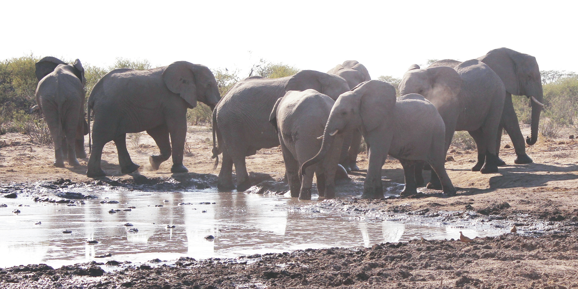 9/22©bonodoElefanten am Wasserloch im im Central Kalahari Game Reserve