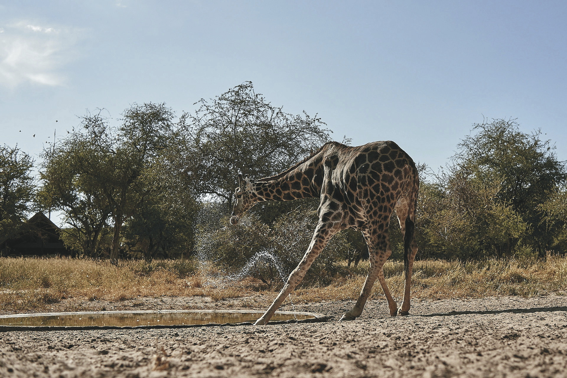 9/15©Bush Ways SafarisTrinkende Giraffe am Wasserloch