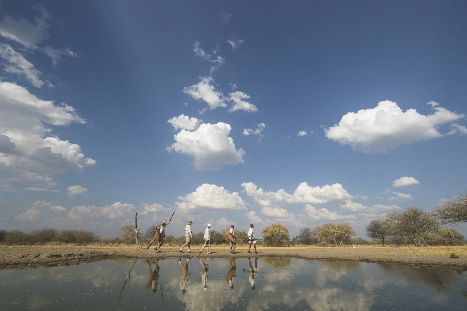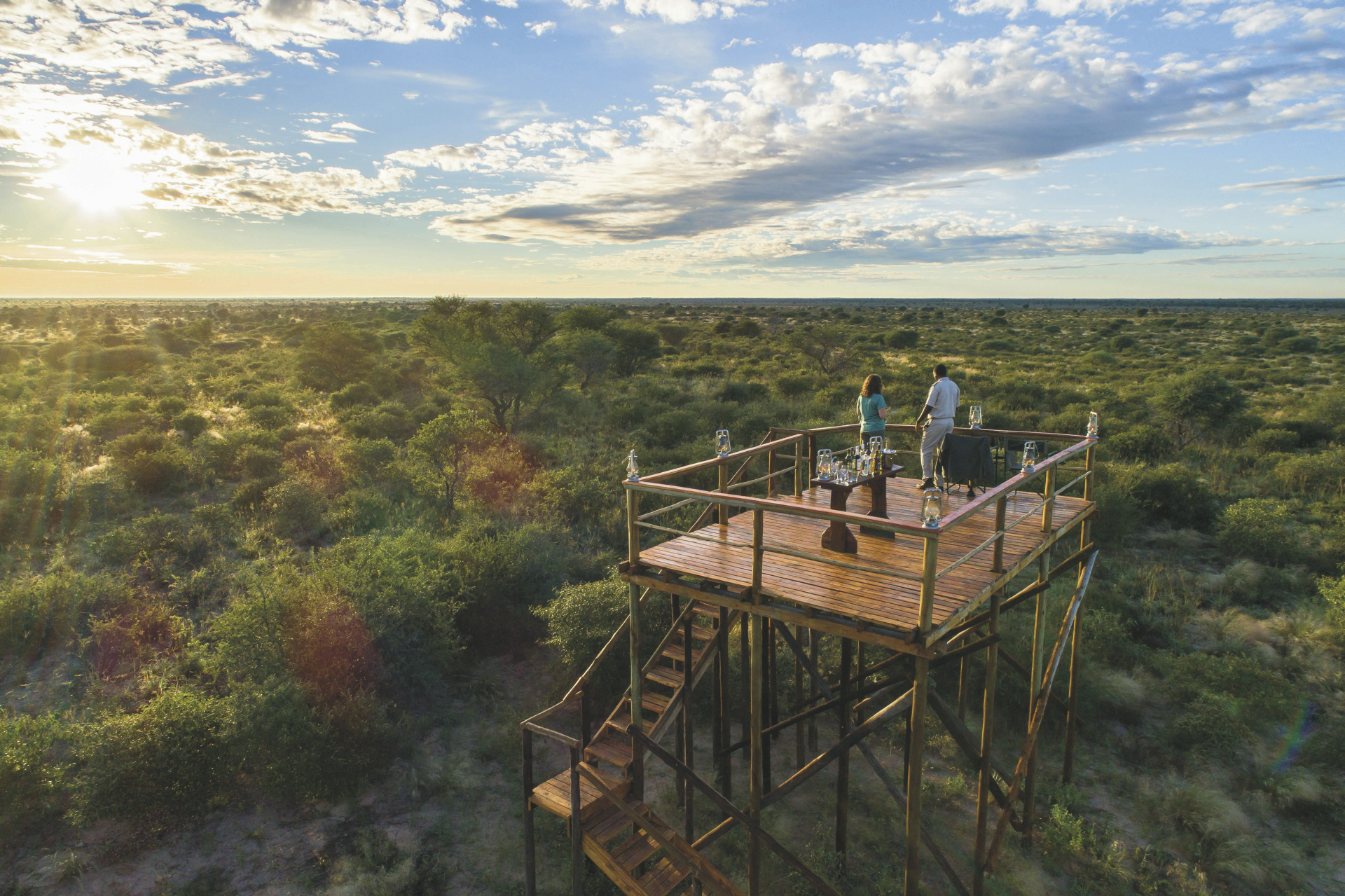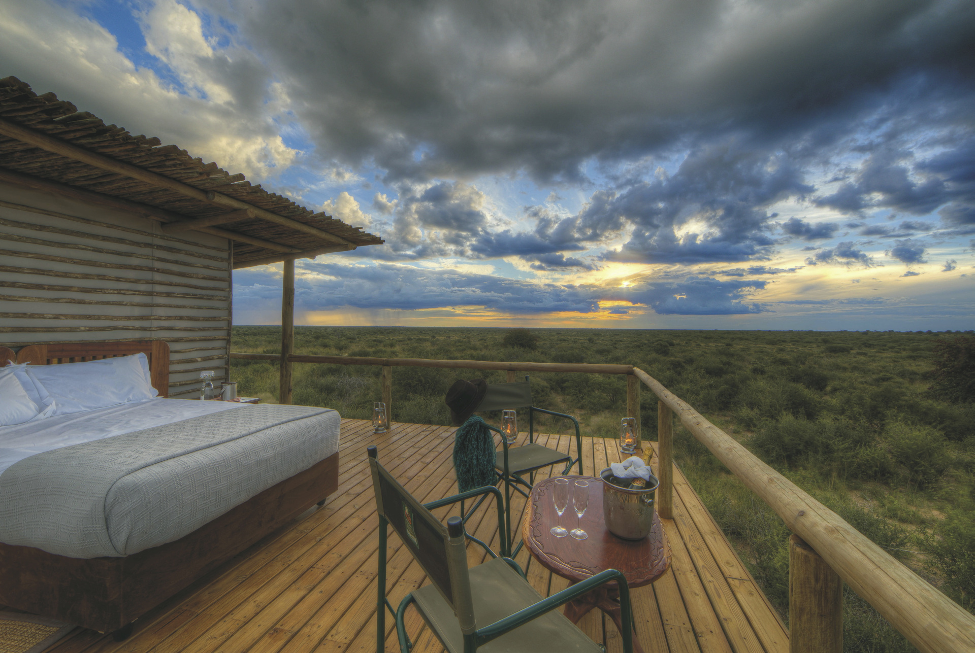 Der Hauptbereich von Dinaka erstreckt sich über erhöhte Plattformen und umfasst großzügige Sitz- und Essbereiche, eine gemütliche Bar sowie einen einladenden Pool – mit einem weiten Blick auf das nahegelegene Wasserloch, das regelmäßig Wildtiere anzieht. Im gesamten Reservat sorgen strategisch platzierte Verstecke und unterirdische Bunker an verschiedenen Wasserstellen für außergewöhnliche Möglichkeiten zur Wild- und Vogelbeobachtung – perfekt auch für Fotografen. Ein besonderes Highlight ist das Sleep Out Deck, das Gästen einen unvergesslichen Panoramablick und die einmalige Gelegenheit bietet, unter dem funkelnden afrikanischen Sternenhimmel zu übernachten.Eingeschlossene Aktivitäten: Wanderungen mit San-Buschmännern, Pirschfahrten.