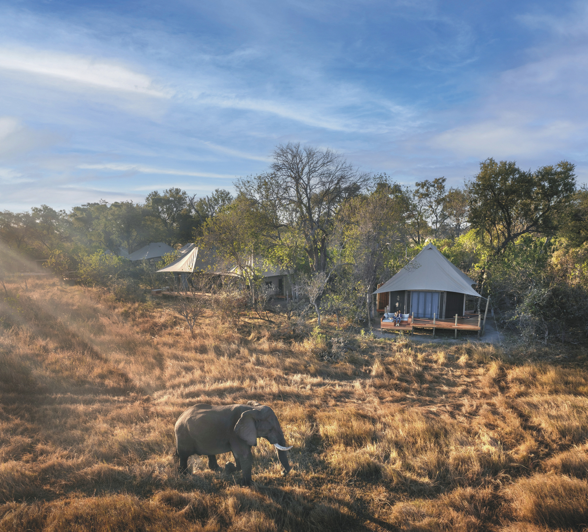 Das Camp bietet Platz für bis zu sechzehn Gäste und verfügt über umweltfreundliche Luxuszelt-Suiten mit einer modernen Einrichtung. Jede der sechs Luxuszelt-Suiten und eine Familienzelt-Suite besitzt ein eigenes Badezimmer mit Innen- und Außendusche, eine private Terrasse und luxuriöse Betten.