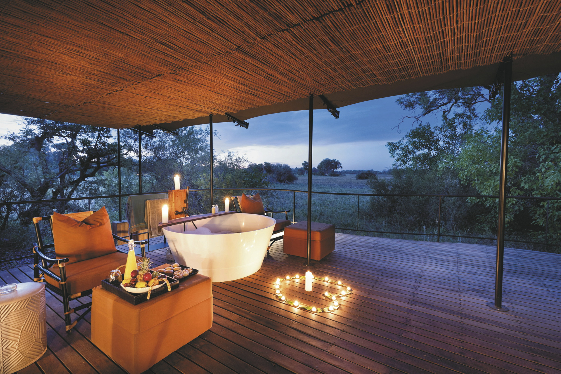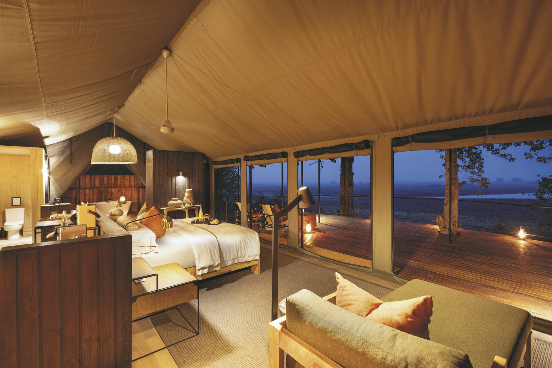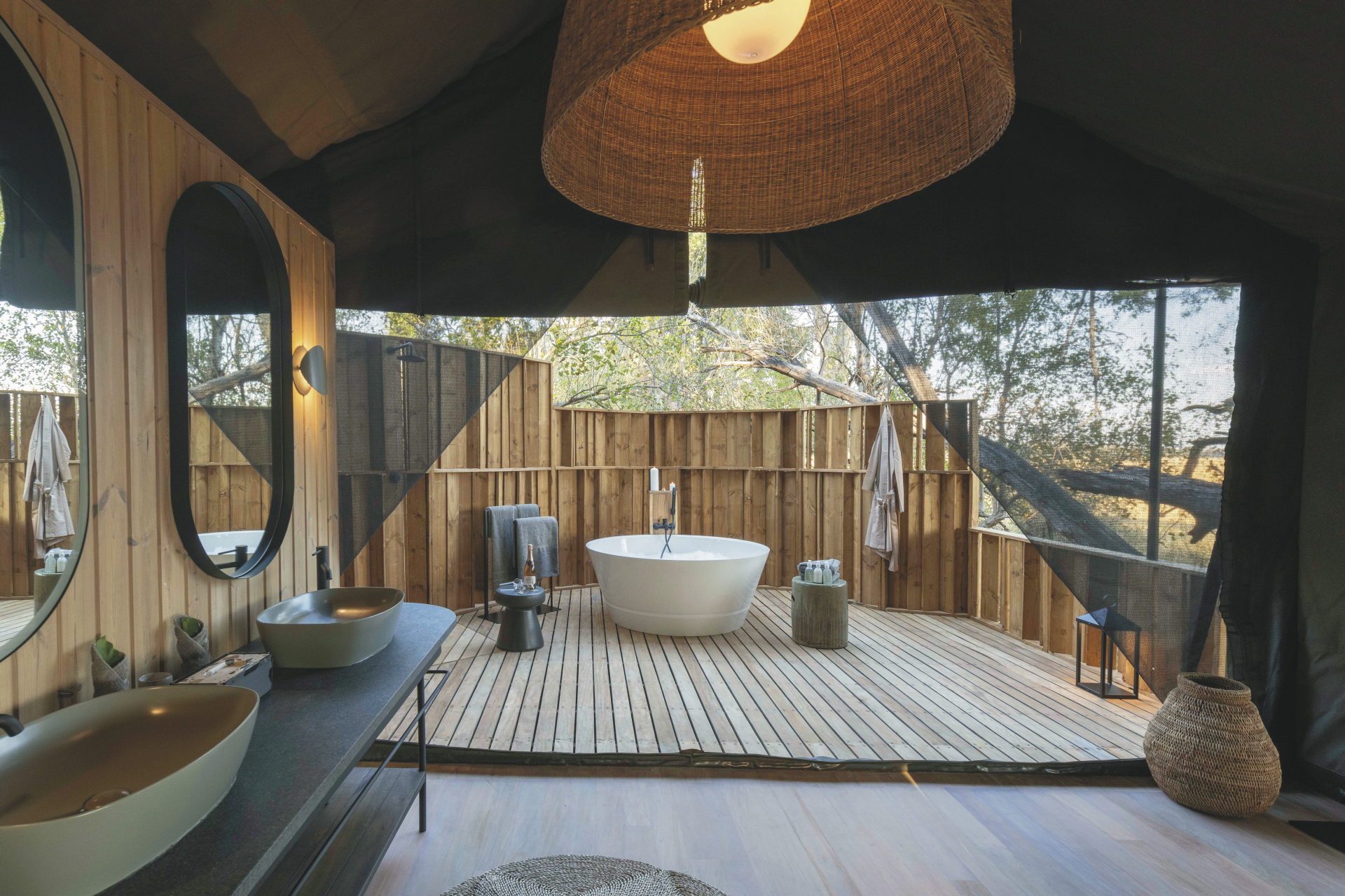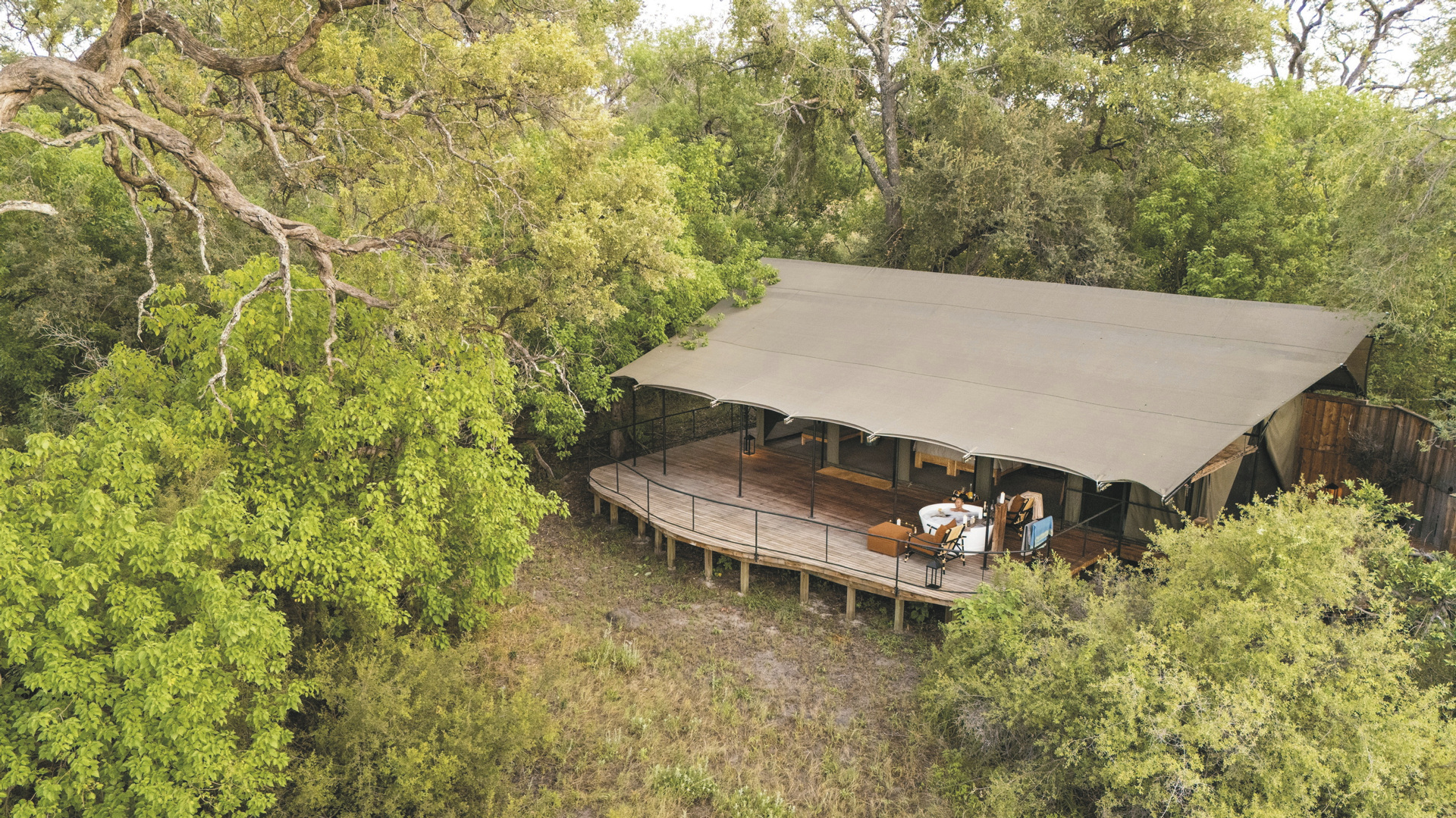 Die 8 Luxuszelte sind so konzipiert, dass sie nahtlos mit dem Ebenholzwald, in dessen Schatten das Camp liegt, zu verschmelzen scheinen. Jedes verfügt über ein eigenes Bad mit Außenwanne und -dusche; Ventilator und eine große überdachte Terrasse mit unglaublicher Aussicht. Für Familien gibt es zwei Familienzelte mit jeweils einer gemeinsamen Lounge.