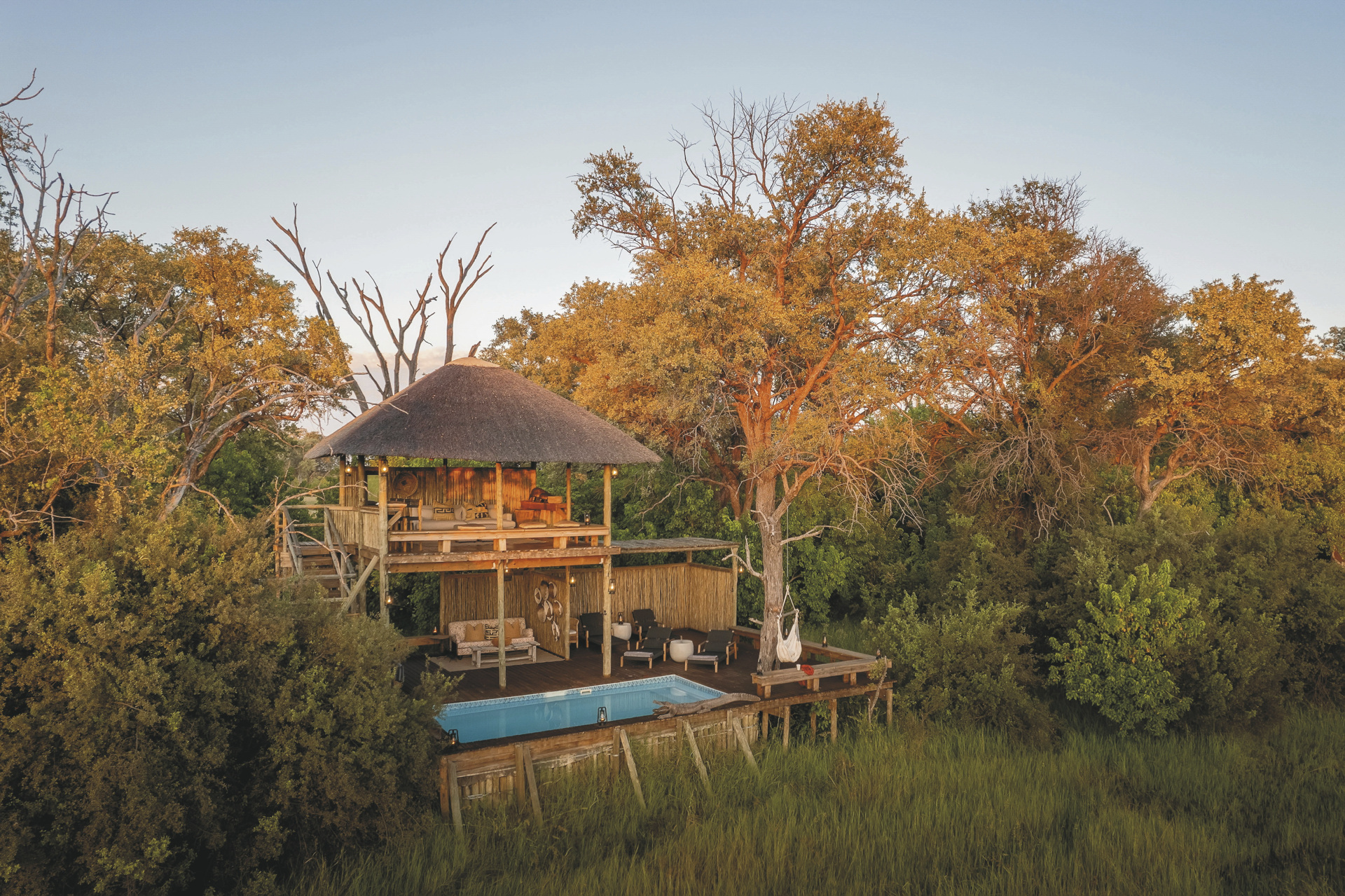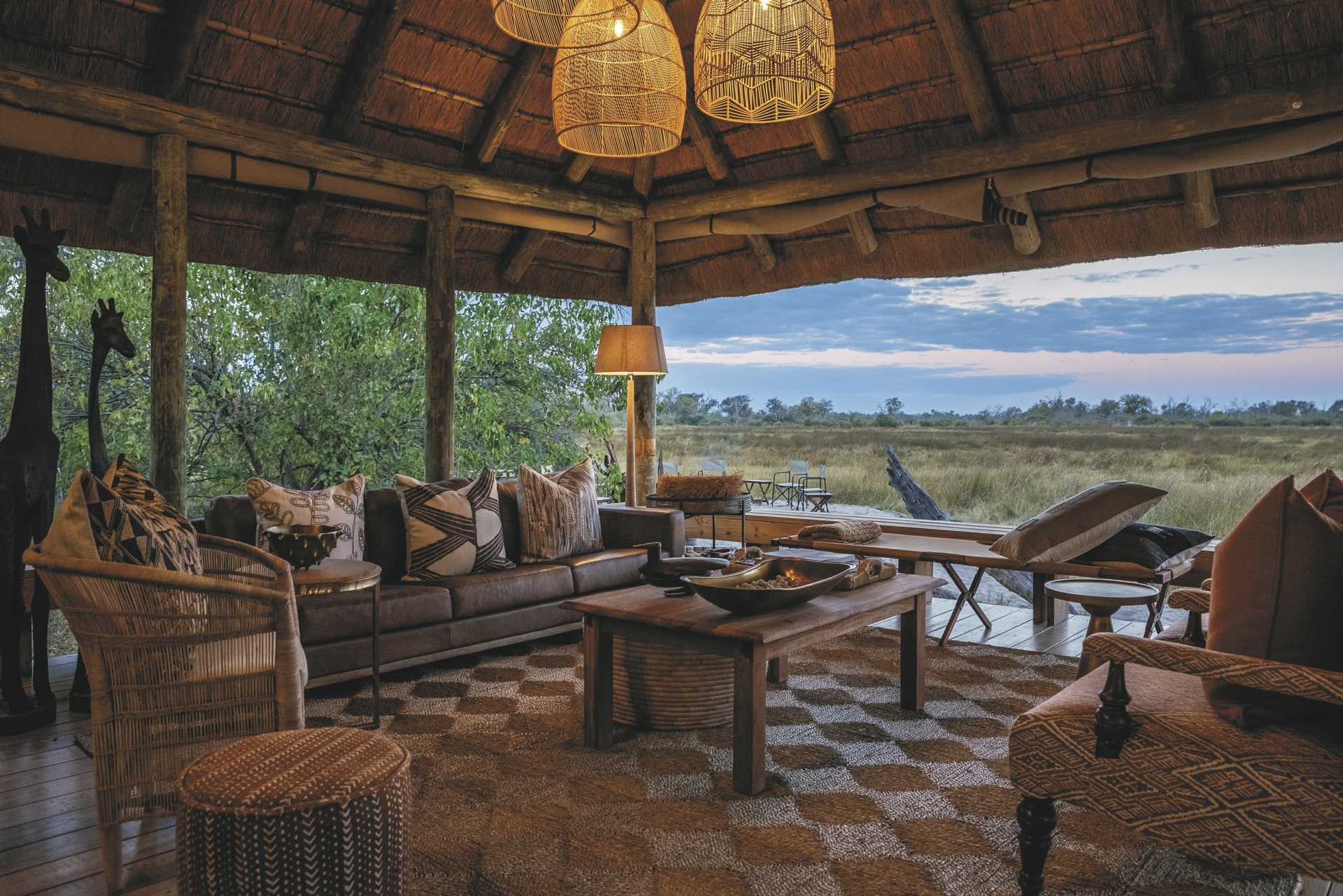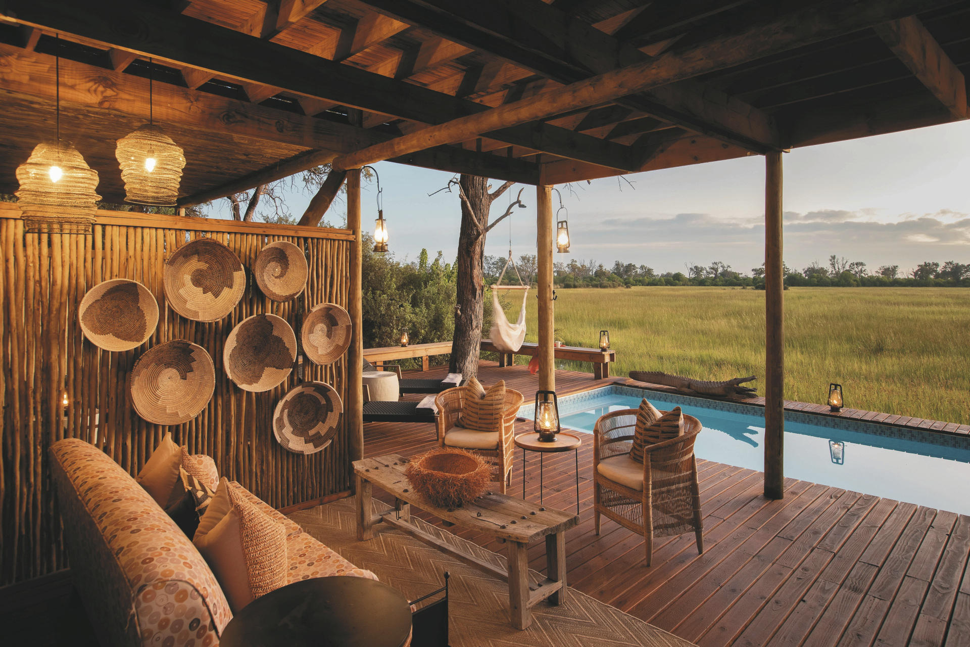 Die großzügige Außenterrasse mit einer großen Feuerstelle im Hauptbereich ist der perfekte Ort für den ersten Morgenkaffee oder einen frühen Abend-Gin-Tonic. Direkt vor einem beliebten Weideplatz für Zebras und Elefanten gelegen, ist es auch während der Siesta – oder zu jeder Tageszeit – eine fantastische Basis für Tierbeobachtungen. Ein kleiner Pool lädt zum Abkühlen ein. Als Besonderheit kann von April bis Oktober im Camp "Skybeds" übernachtet werden. Dieses besondere Erlebnis, unterm Sternenhimmel zu nächtigen, kann zusätzlich gegen einen Aufpreis gebucht werden. Die Himmelbetten verfügen ebenfalls über DU/WC.Eingeschlossene Aktivitäten: Pirschfahrten, Mokoro- und Bootsfahren (wasserstandsabhängig).