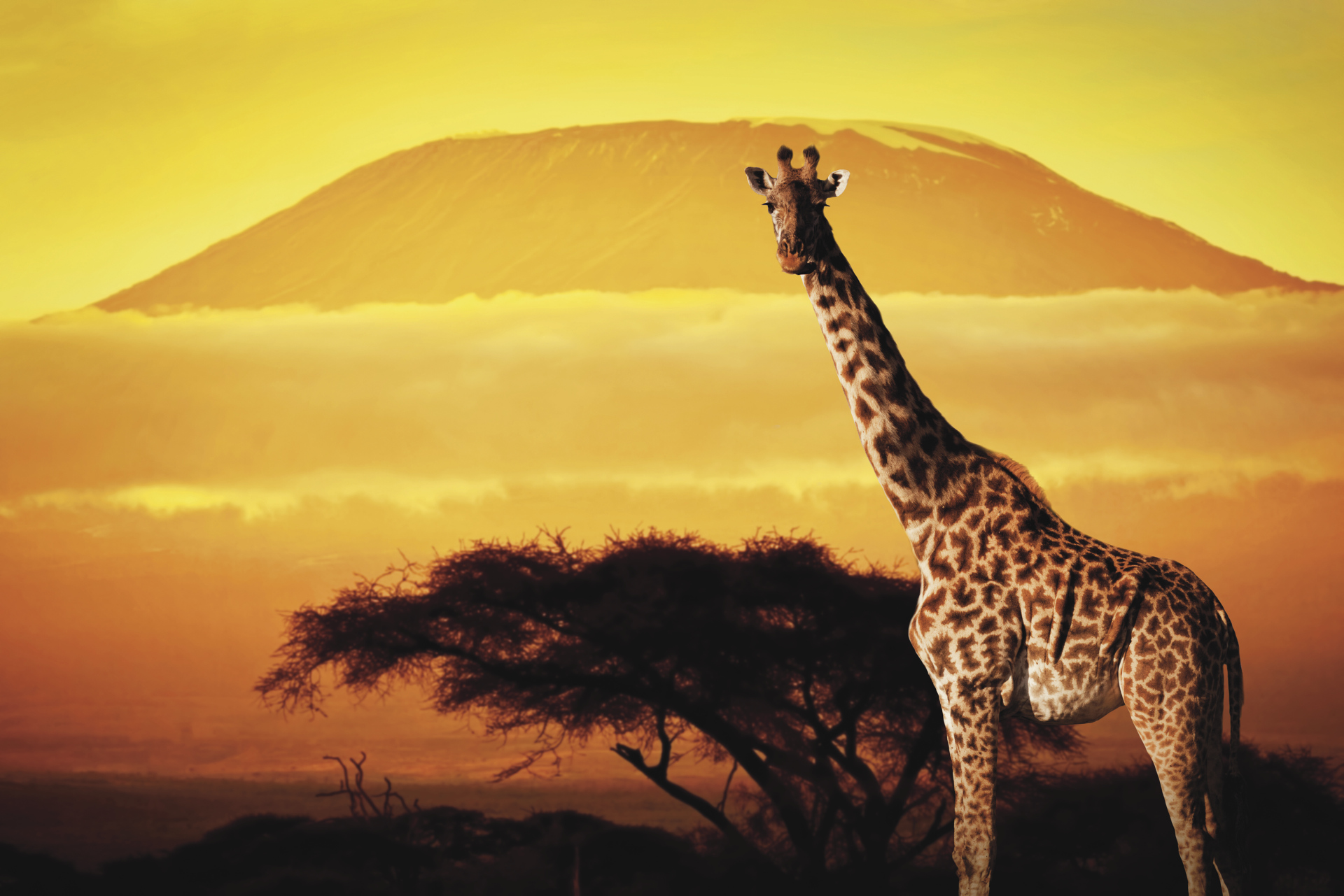 Amboseli Nationalpark (F/M/A).Vielleicht gelingt Ihnen das eine oder andere schöne Foto mit der Silhouette des Kilimanjaro und den weiten Schirmakazien mit Giraffen oder Elefanten davor. Eines der schönsten Fotomotive in Afrika.