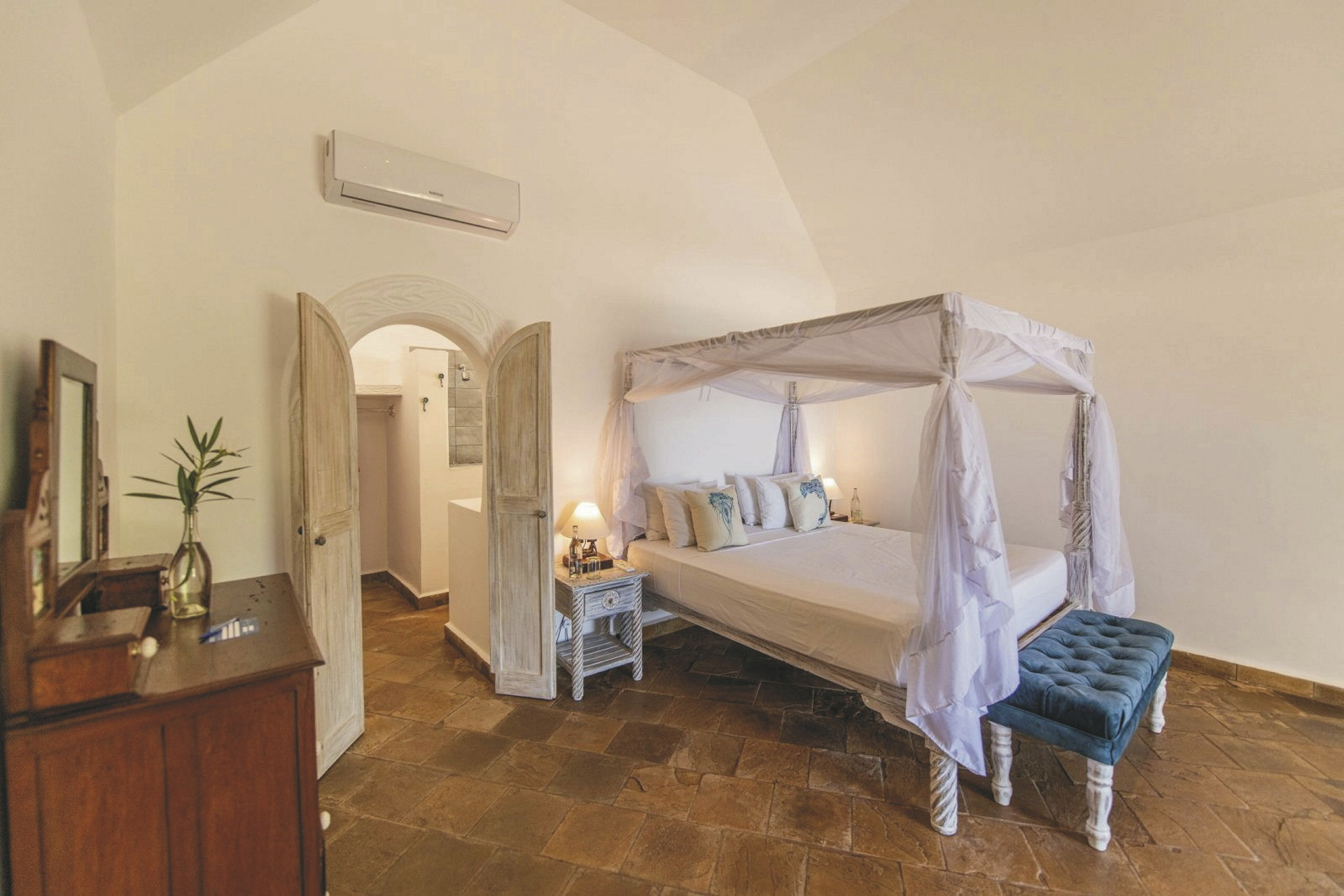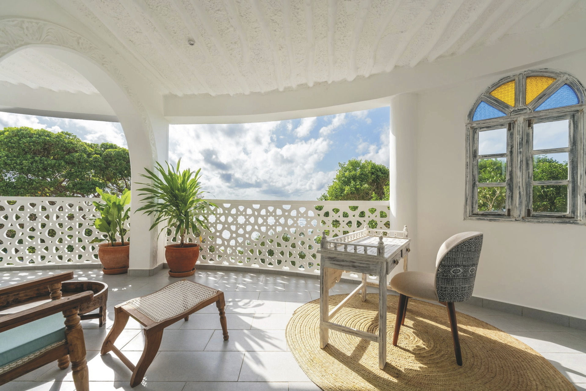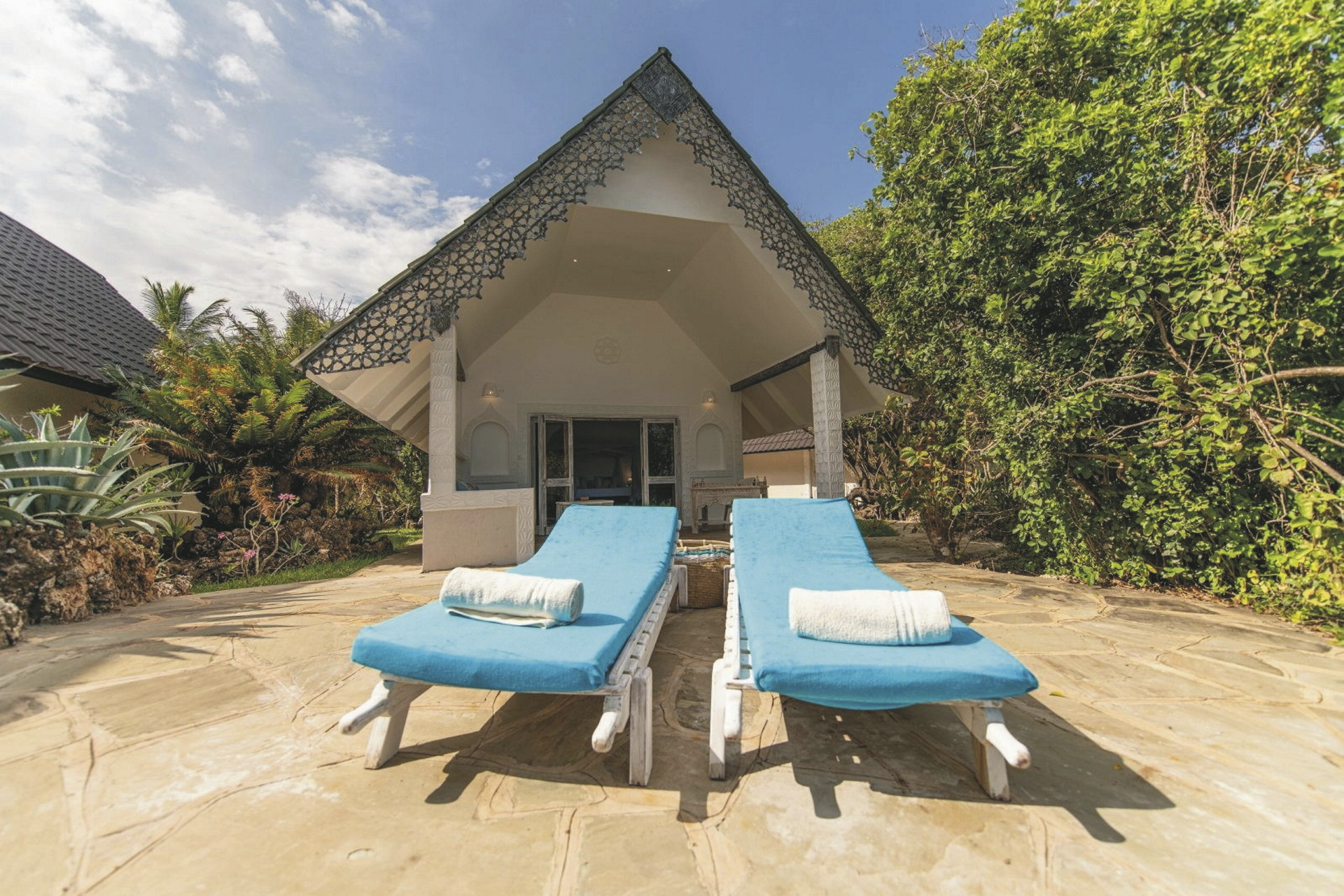 53 Zimmer, Bandas (Swahili: kleines Haus) und Suiten. Alle Wohneinheiten sind mit viel Liebe zum Detail eingerichtet. Die 10 halbrunden Tower Suites befinden sich in zwei Türmen. 12 Deluxe-Zimmer liegen in einem Hauptgebäude neben dem Galana-Pool. Die 29 Bandas sind palmengesäumte, individuelle Bungalows. Die großzügige Suite on the Rocks liegt auf einer kleinen separaten Insel, die durch eine Brücke mit der Hauptinsel verbunden ist. Einzigartig in Kenia ist die Overwater-Suite. Über eine Leiter gelangen Sie von der Terrasse direkt ins Meer. Chale Island nutzt Strom-Generatoren zur Energieversorgung. Alle Einheiten verfügen über ein Bad, Klimaanlage, Ventilator und einen Balkon oder eine Terrasse.