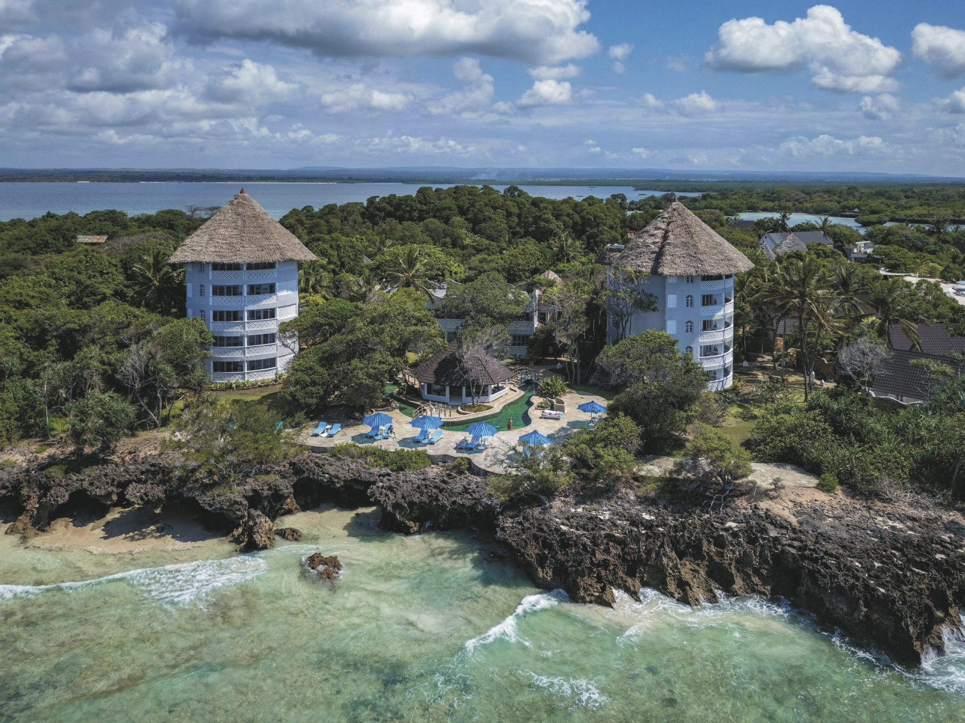 Das Chale Island Resort liegt auf der gleichnamigen Insel ca. 12 km südlich von Diani Beach. Es gibt keine Brücke auf die Insel. Je nach Ebbe oder Flut erfolgt der Transfer vom Festland mit dem Boot oder Traktor.