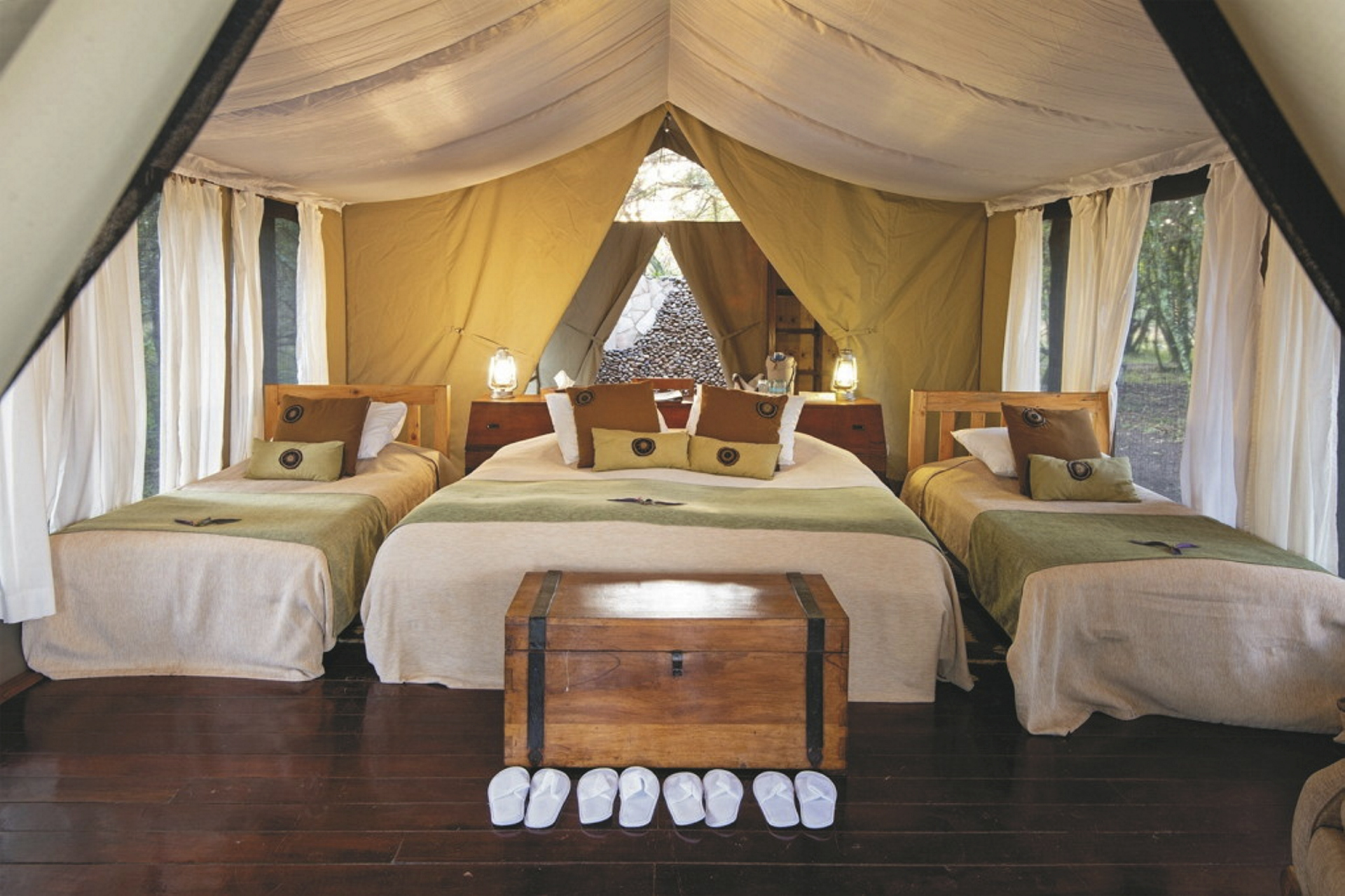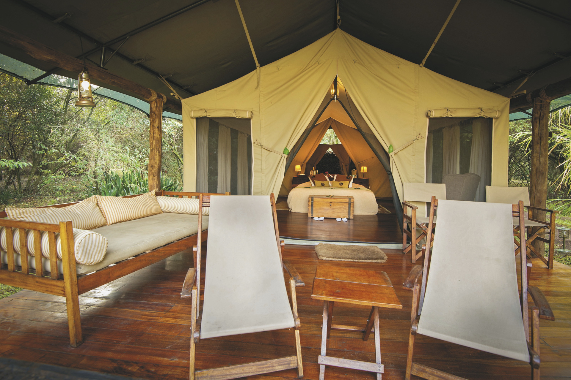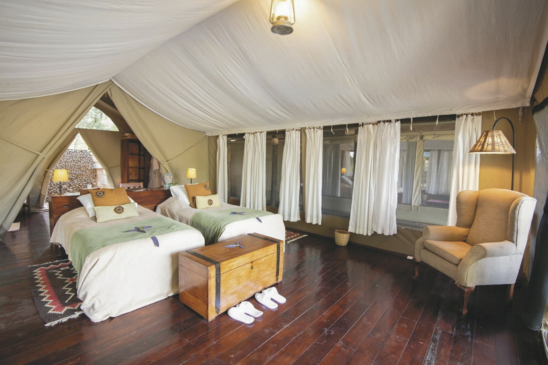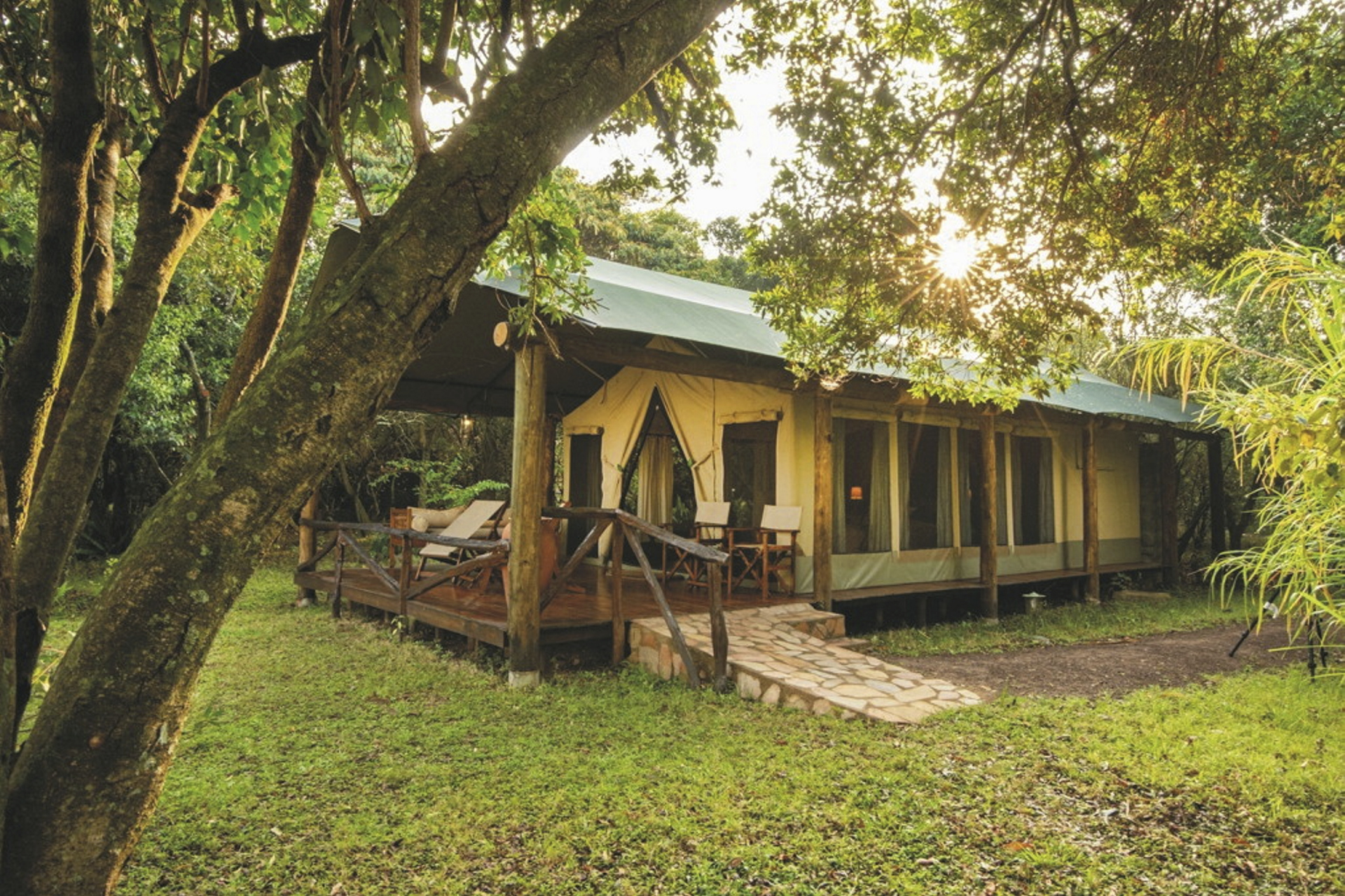 Alle 22 geräumigen Hauszelte reihen sich in gebührendem Abstand zueinander am Flussufer auf. Jedes Zelt verfügt über eine private Holzterrasse mit uneingeschränktem Blick auf den Mara, ein eigenes Bad sowie eine romantische Außendusche mit Blick zu den Sternen. Solarpanels versorgen die Gäste 24 Stunden am Tag mit Strom.