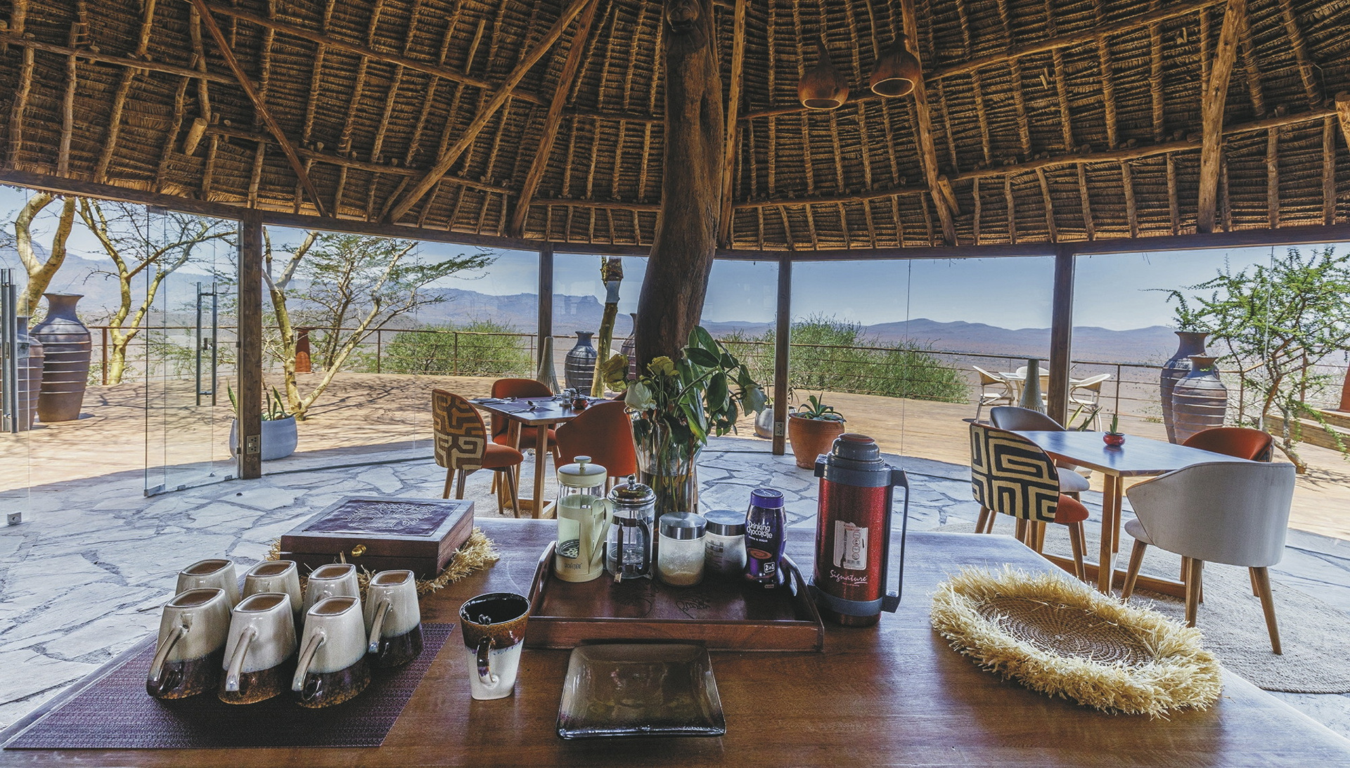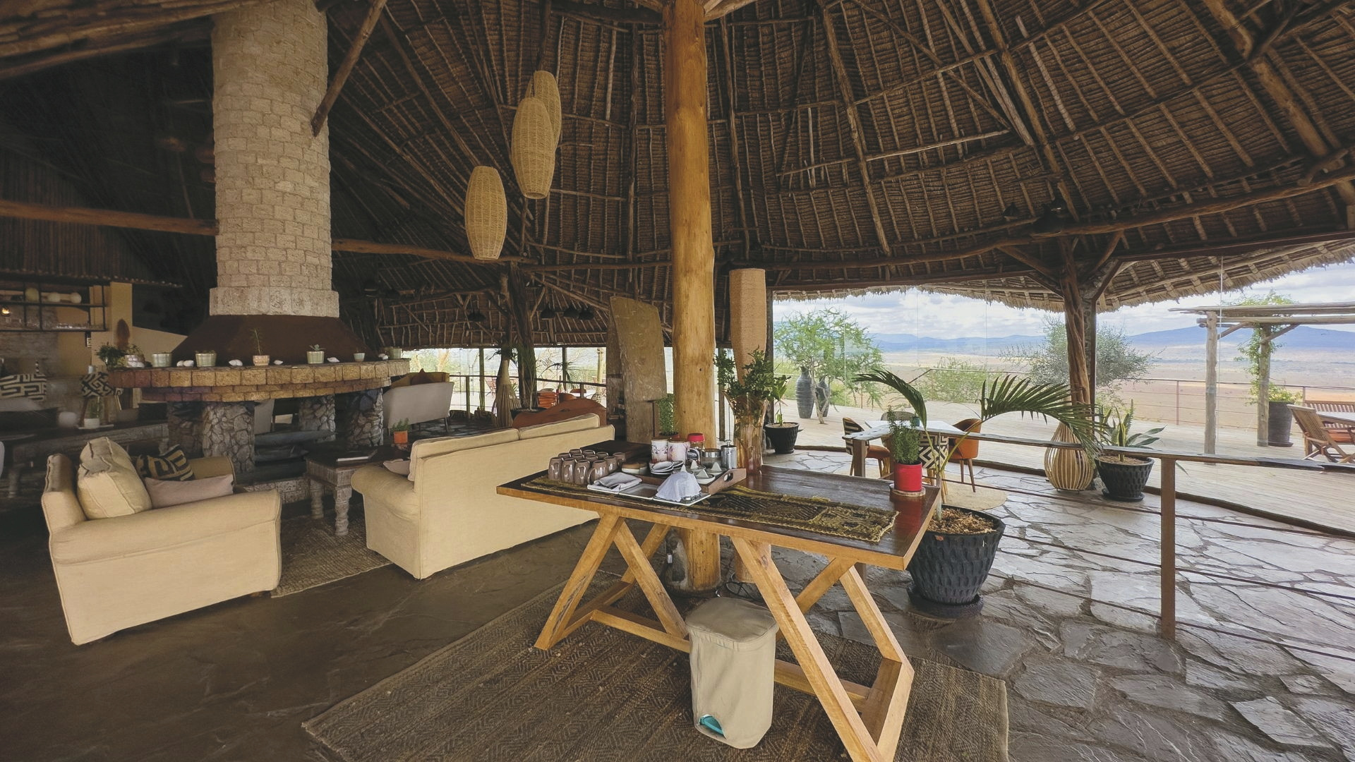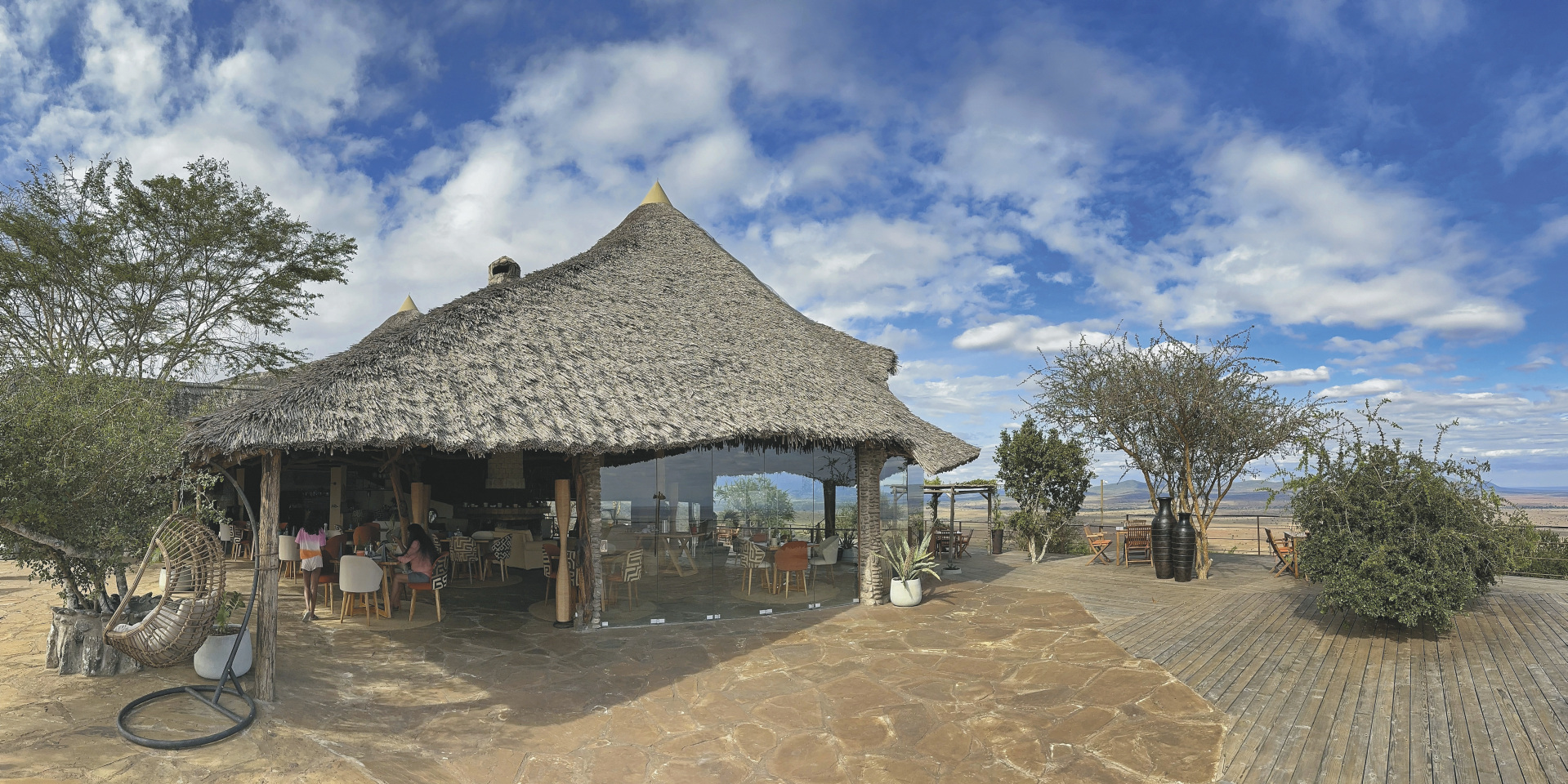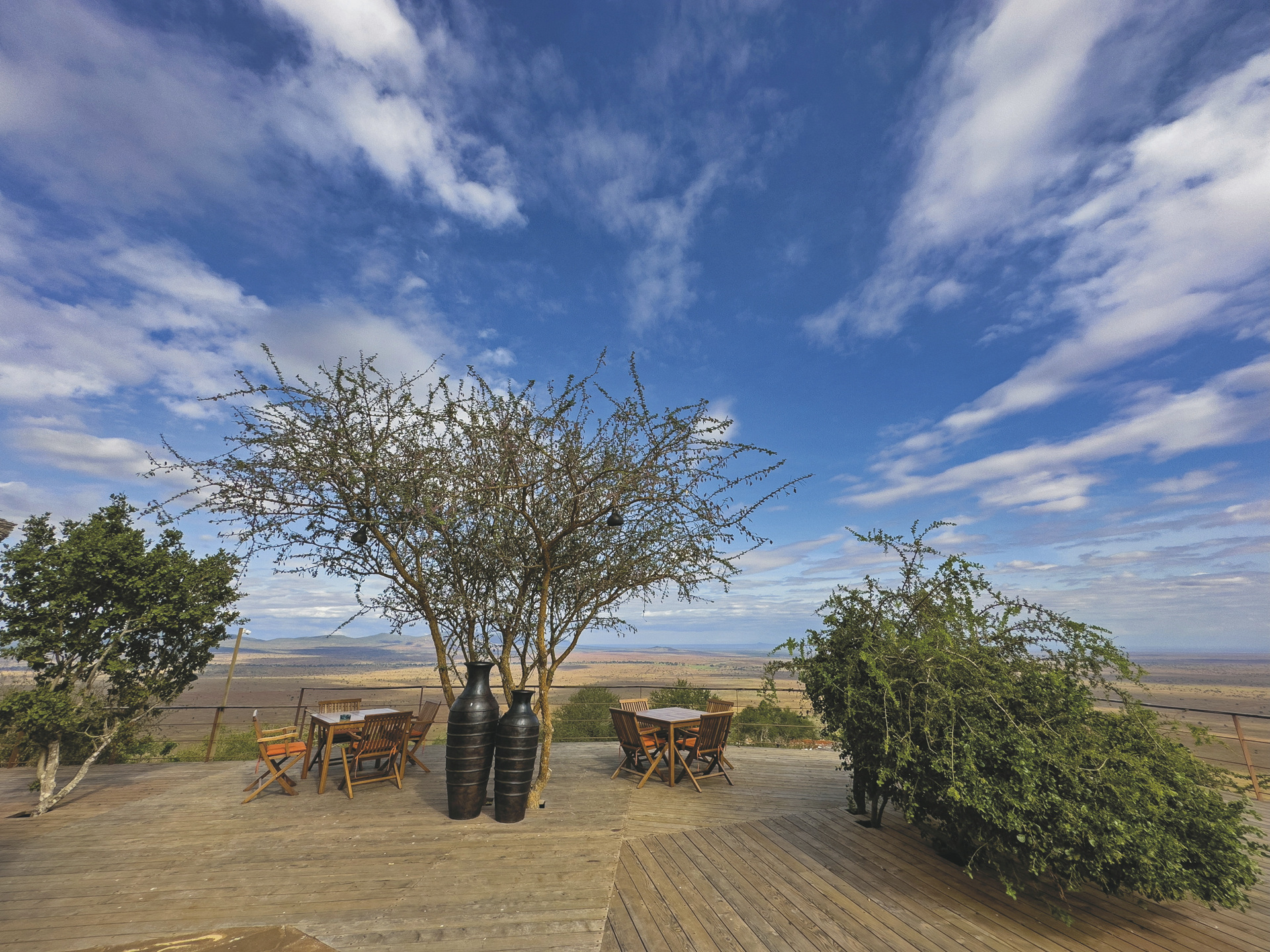 Ganz am Ende eines Hügels gelegene exklusive Lodge mit einem fantastischen Blick über die darunter liegenden Ebenen und dem Kilimanjaro als Kulisse.