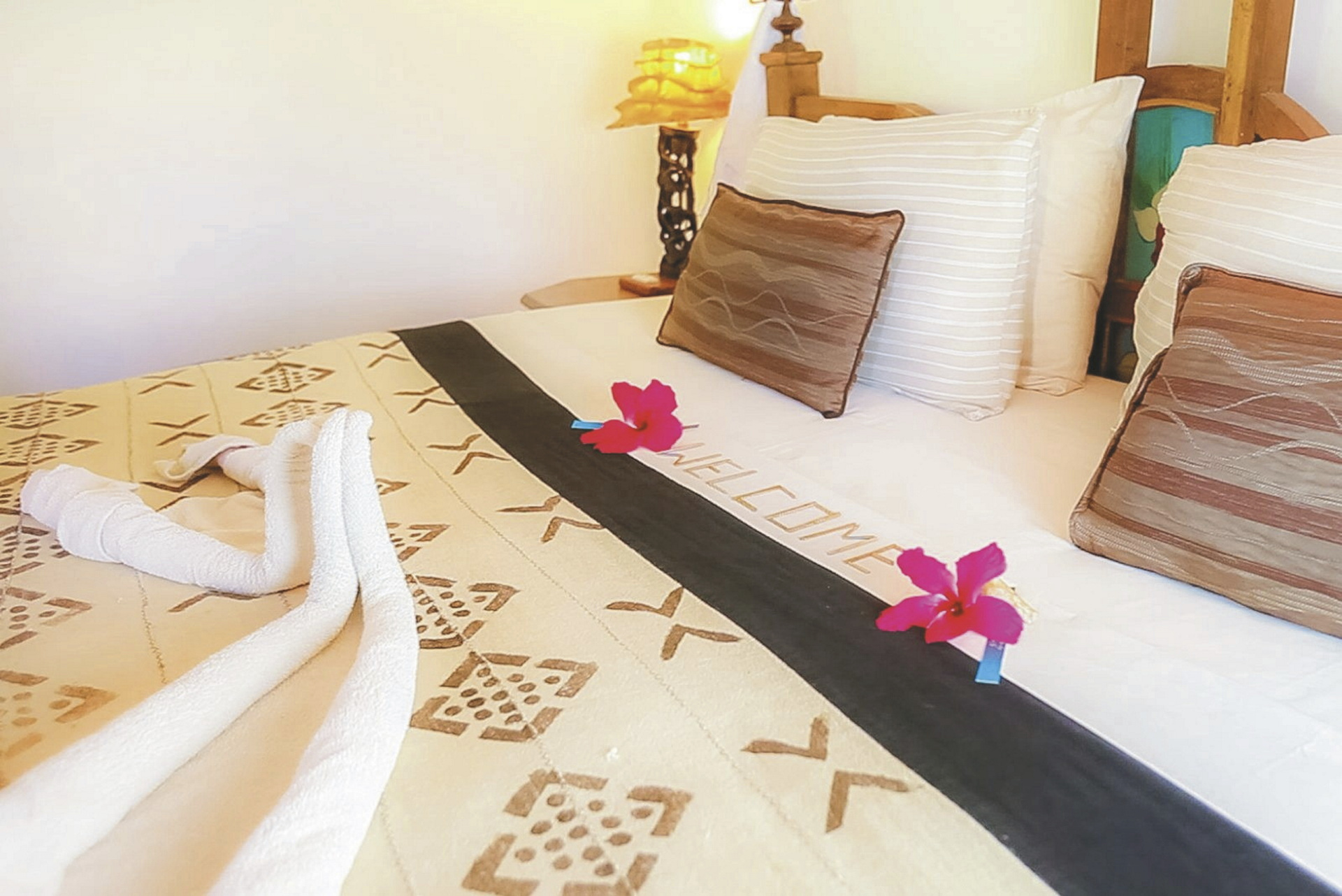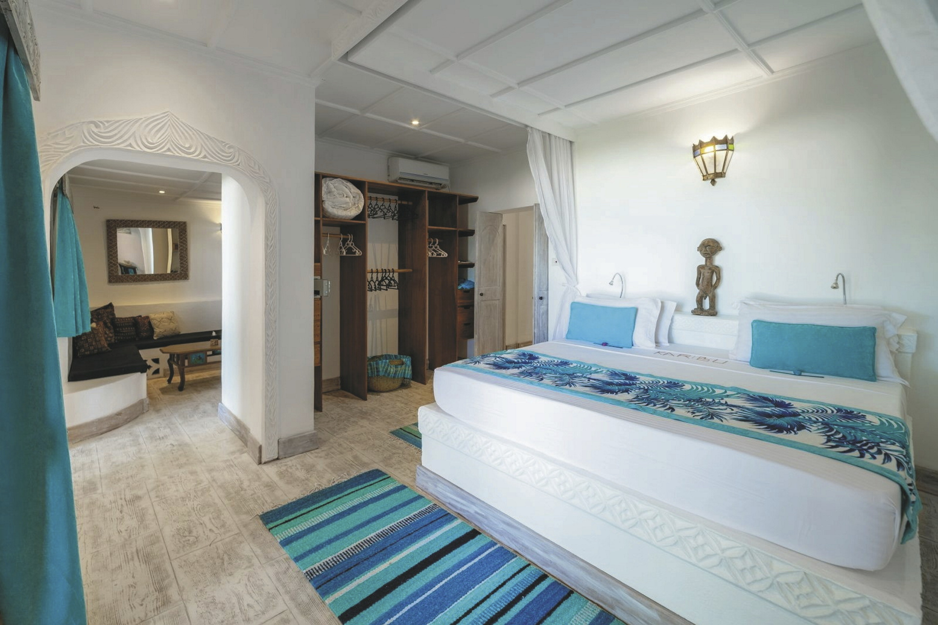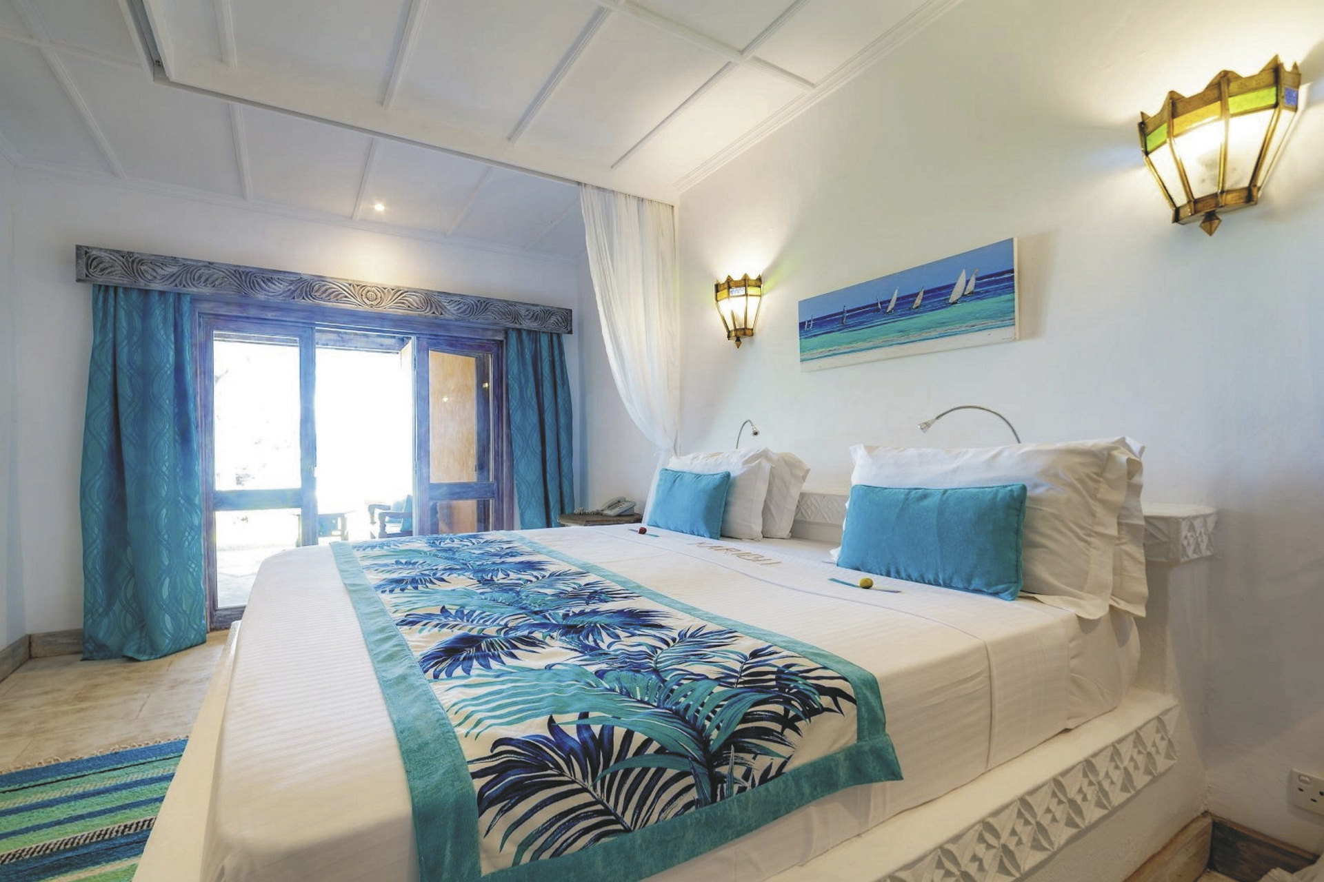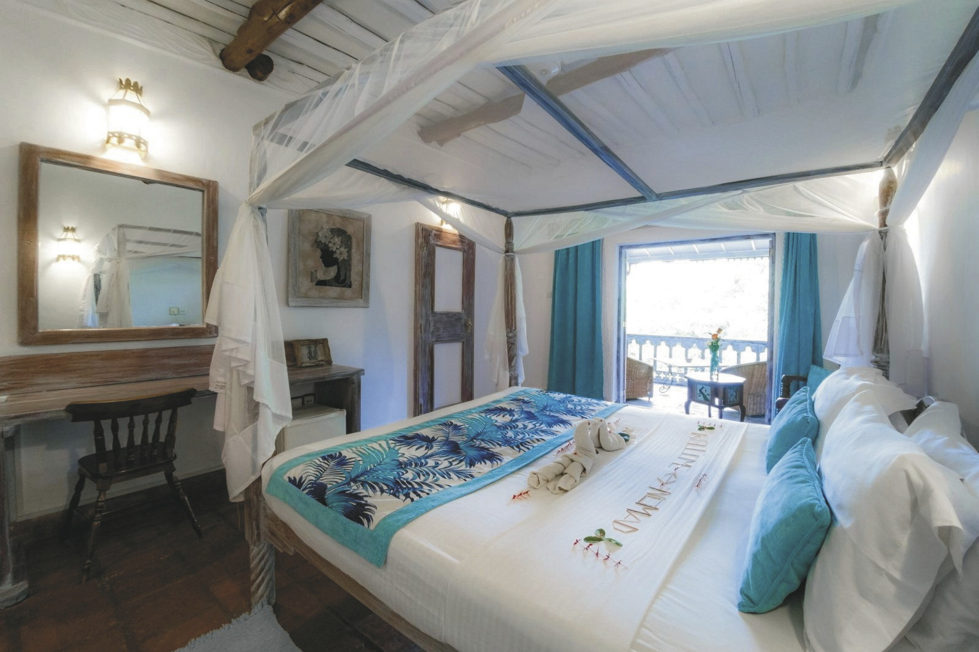29 Zimmer in einem einzigartigen Mix aus traditioneller Swahili-Architektur, venezianischem Stuck sowie hochmodernen Stilelementen. Alle Zimmer verfügen über Bad, Fön, Klimaanlage, Safe, Minibar, Tee-/Kaffeezubereiter und einen Balkon oder Terrasse. Einen Fernseher gibt es nur im Gemeinschaftsbereich der Unterkunft.