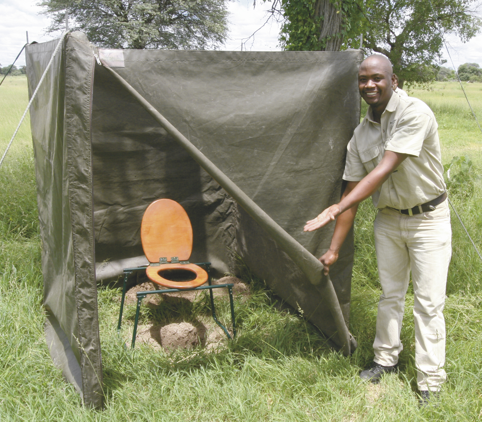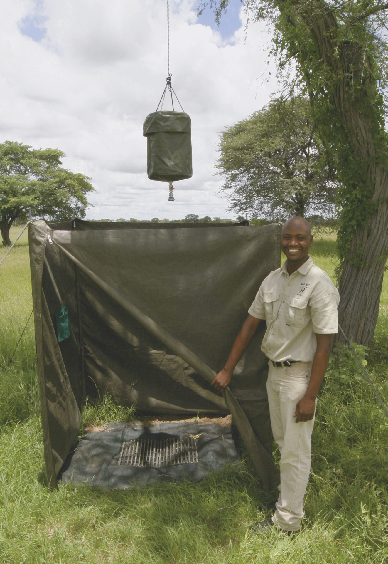 Bei Campingplätzen ohne sanitäre Einrichtungen werden eine Buschdusche und eine Buschtoilette aufgestellt.