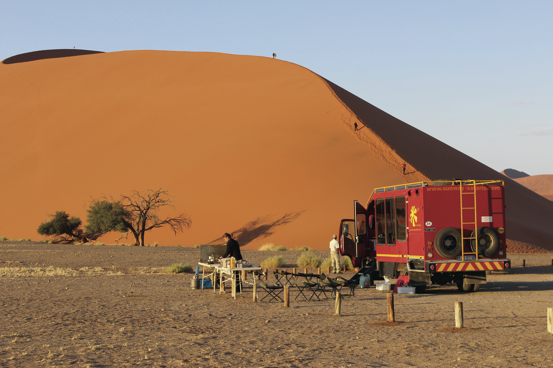 Namib Wüste (F/M/A).Heute begeben Sie sich ins Herz des Dünengebietes. Die letzten 3,5 km bis ins Zentrum des Sossusvleis legen Sie zu Fuß zurück. Erklimmen Sie die gewaltigen roten Dünen. Auf dem Rückweg entdecken Sie noch den Sesriem Canyon.