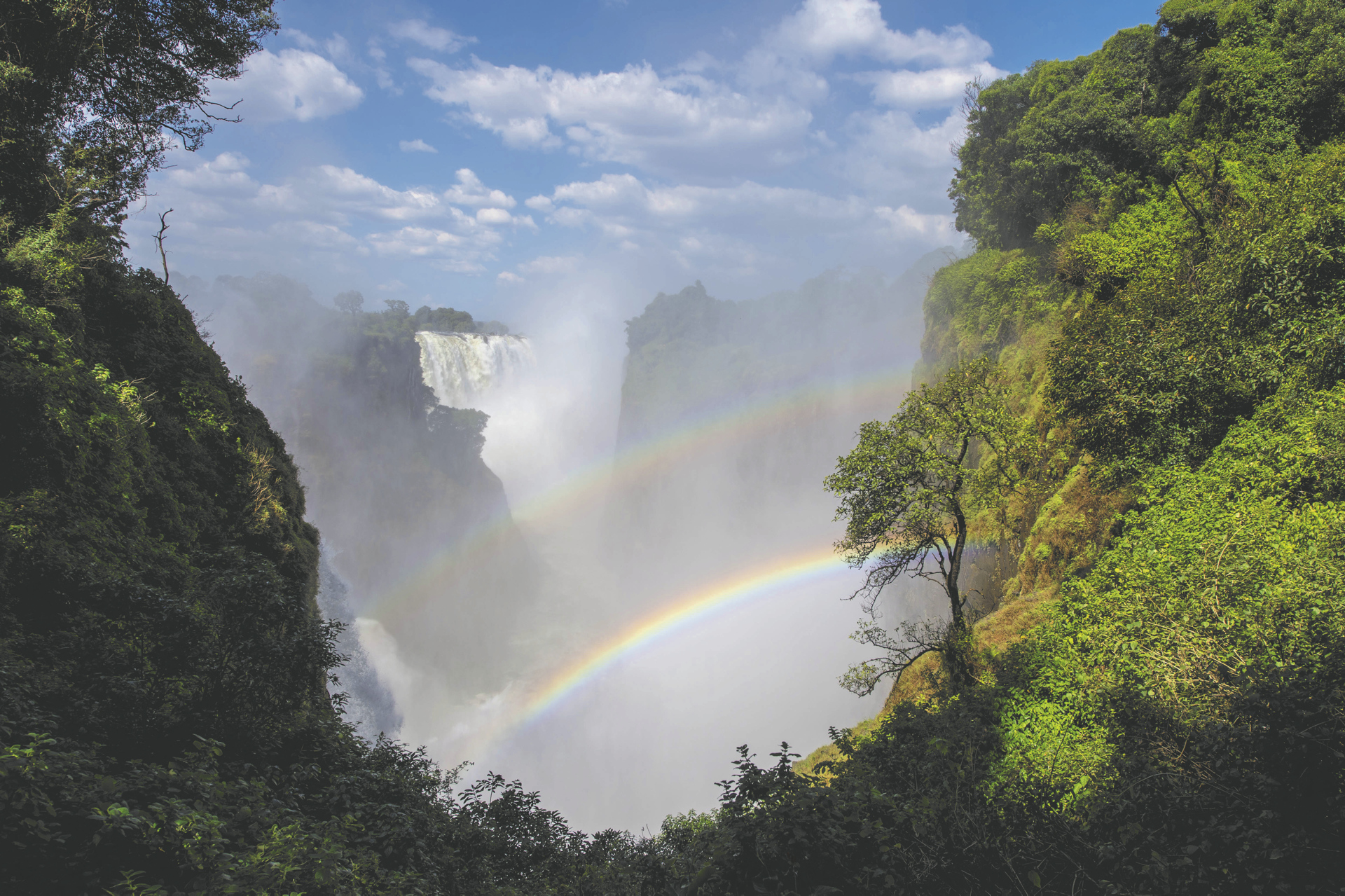 Hwange Nationalpark - Victoria Falls (F).Vormittags Fahrt nach Victoria Falls. Nachmittags Spaziergang entlang der berühmten Wasserfälle. Nehmen Sie sich Zeit die tropische Vegetation, die im "Rauch" der Fälle wächst, genau anzuschauen. An heißen Sommertagen ist das kühle Nass der Fälle eine willkommene Abwechslung.