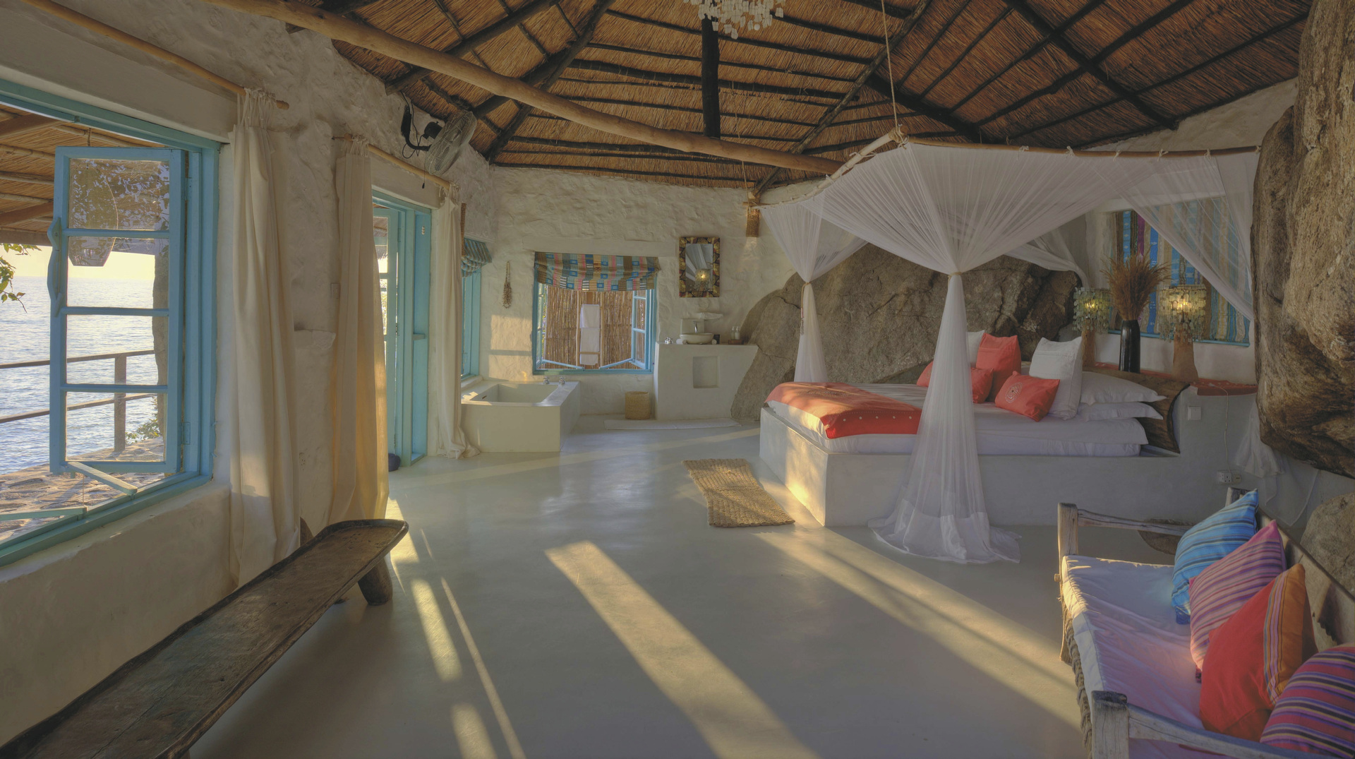 Eingebettet zwischen Granitfelsen liegt der zentrale Bereich der Lodge. Hier finden Sie das Restaurant, die Lounge und auch den Barbereich und immer einen Blick auf das azurblaue Wasser des großen afrikanischen Süßwassersees. Genießen Sie erstklassige Mahlzeiten, die entspannte Atmosphäre und lassen Sie sich im Spa verwöhnen. Ein Ort zum Seele baumeln lassen! Eingeschlossene Aktivitäten: Segeln, Kajaken, Schnorcheln, SUP, E-Bike Touren, geführte Tour durch den Gemüsegarten. Optionale Aktivitäten: Tauchen, Wasserski fahren, Bootsausflüge, Besuch der Katundu Handwerksstätte und der St. Peters´s Kathedrale.