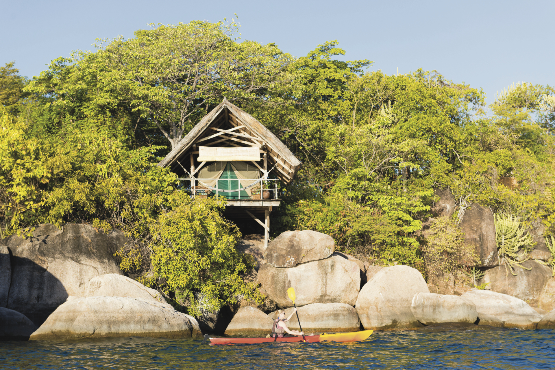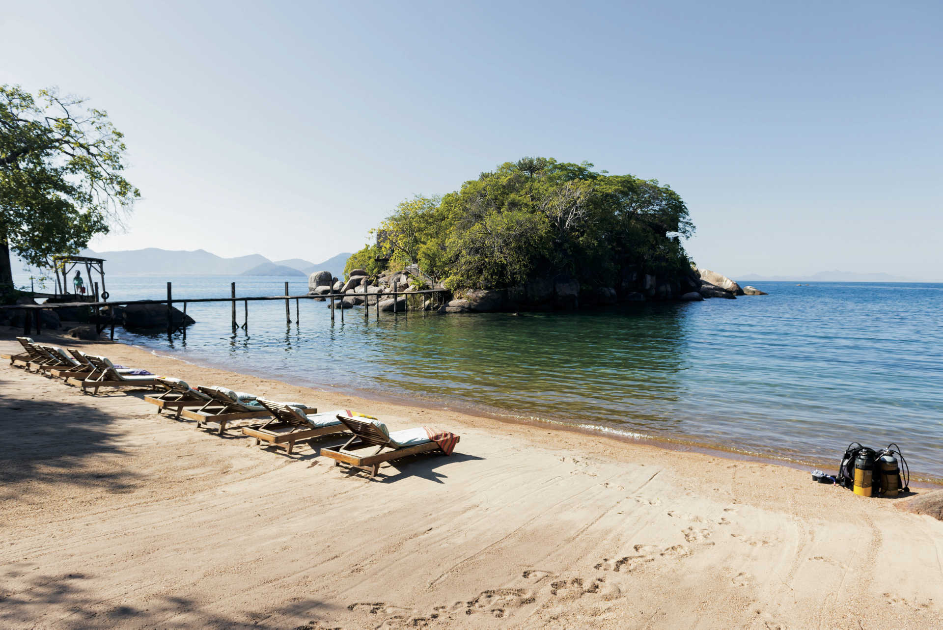 Einzigartig und spektakulär, Robinson-Crusoe Atmosphäre im Malawisee.