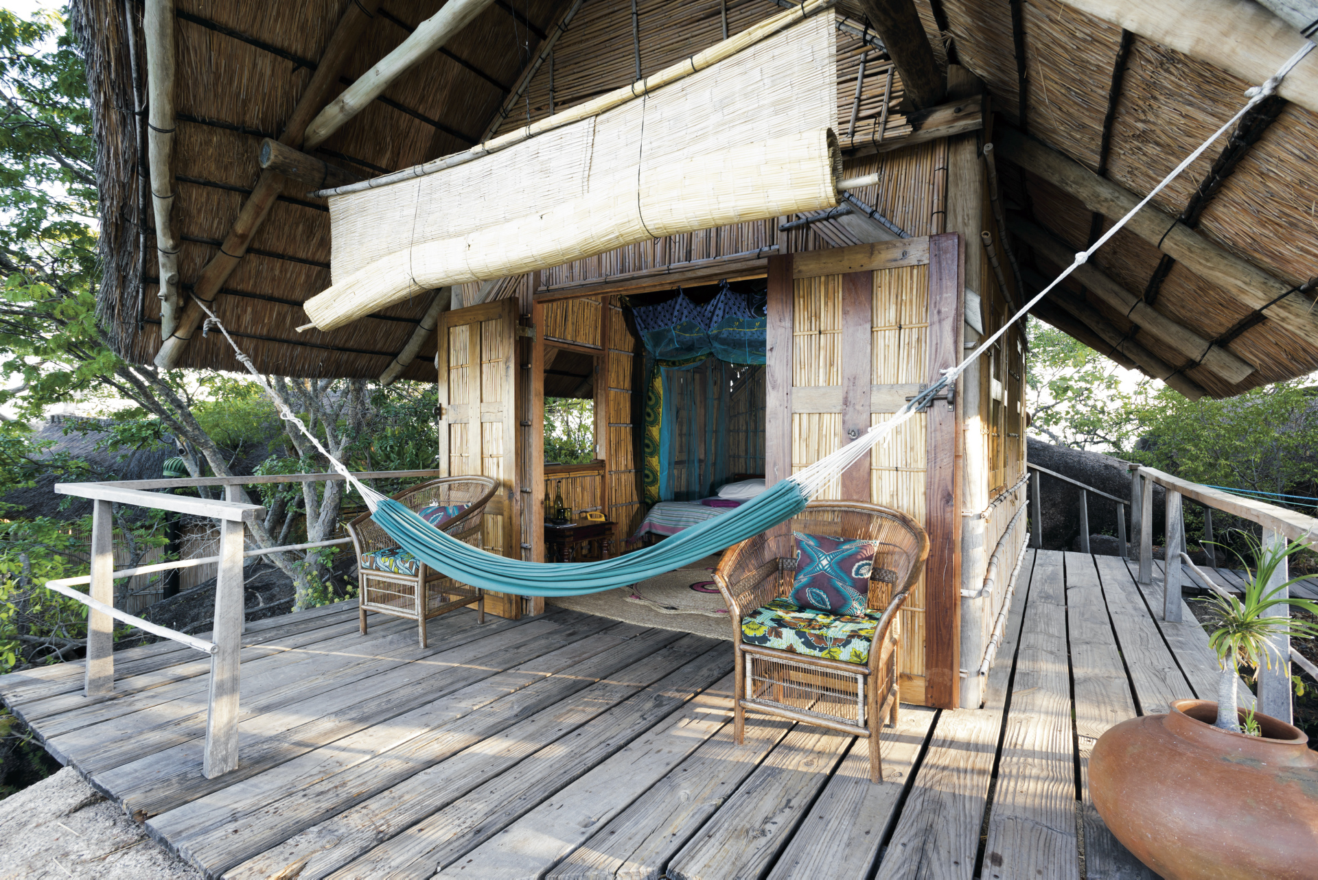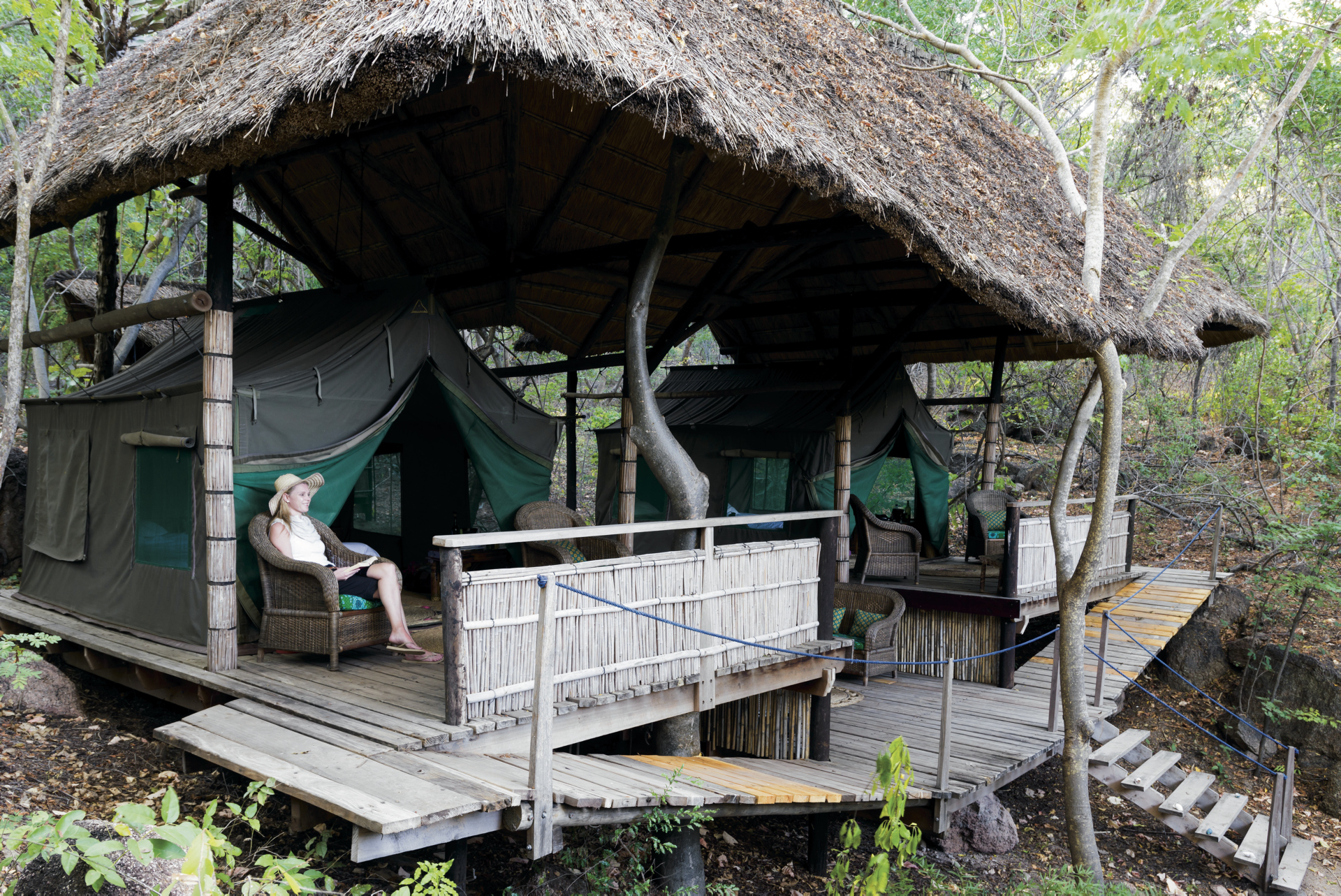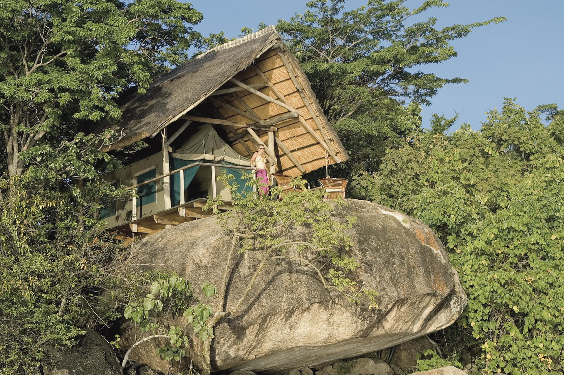 Das Camp zählt zu den Top 50 Ecolodges in Afrika und wurde perfekt in die Natur integriert. Im Hauptbereich befinden sich das offene Restaurant, die Bar und das Wassersportcenter. Es gibt keinen Strom. Eingeschlossene Aktivitäten: Wandern, Kajaken, Schnorcheln. Optional: Tauchen.