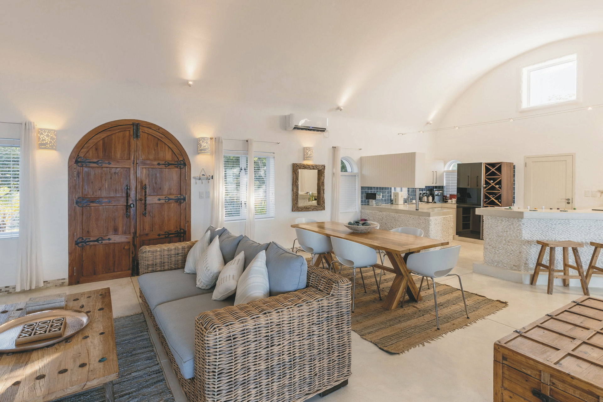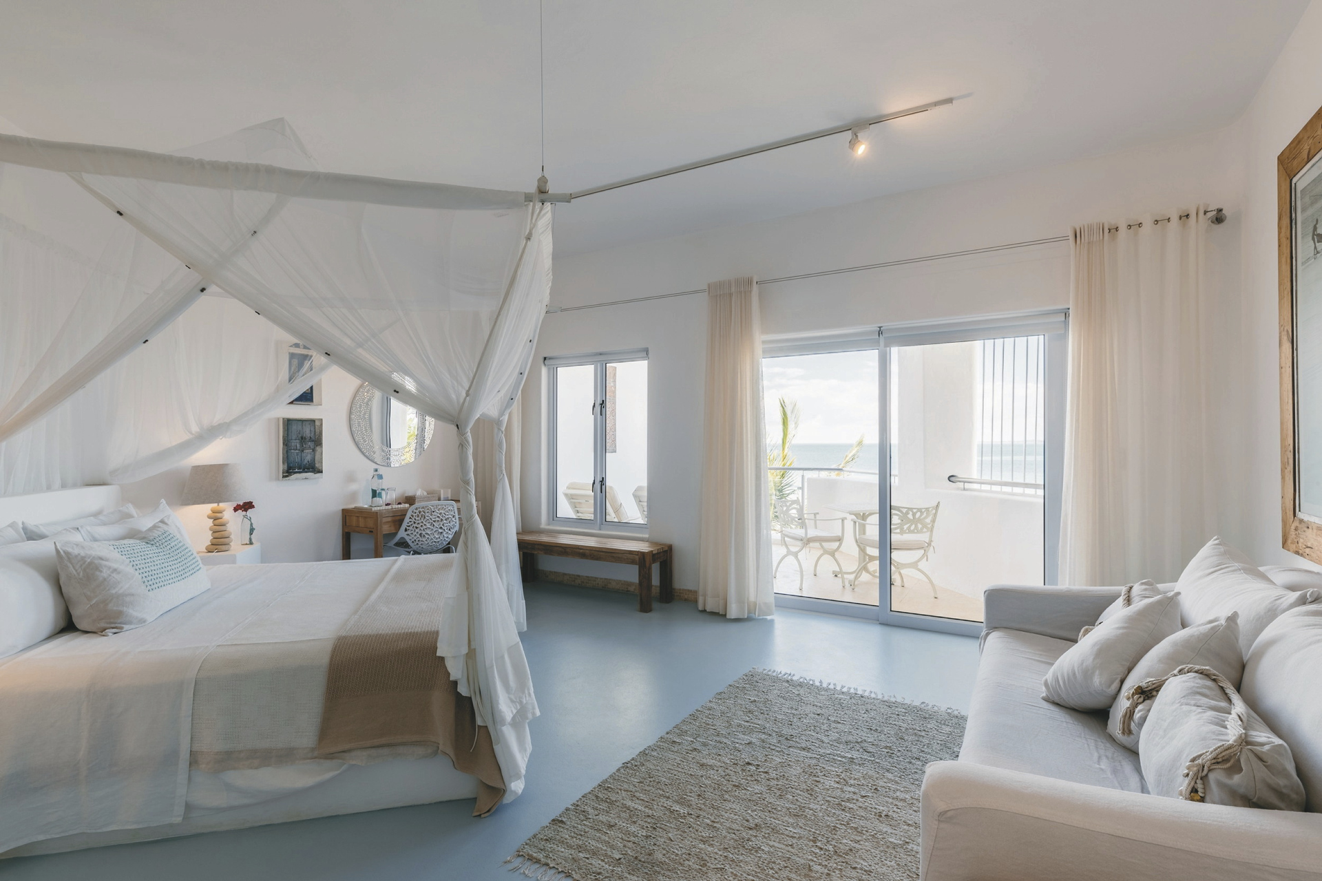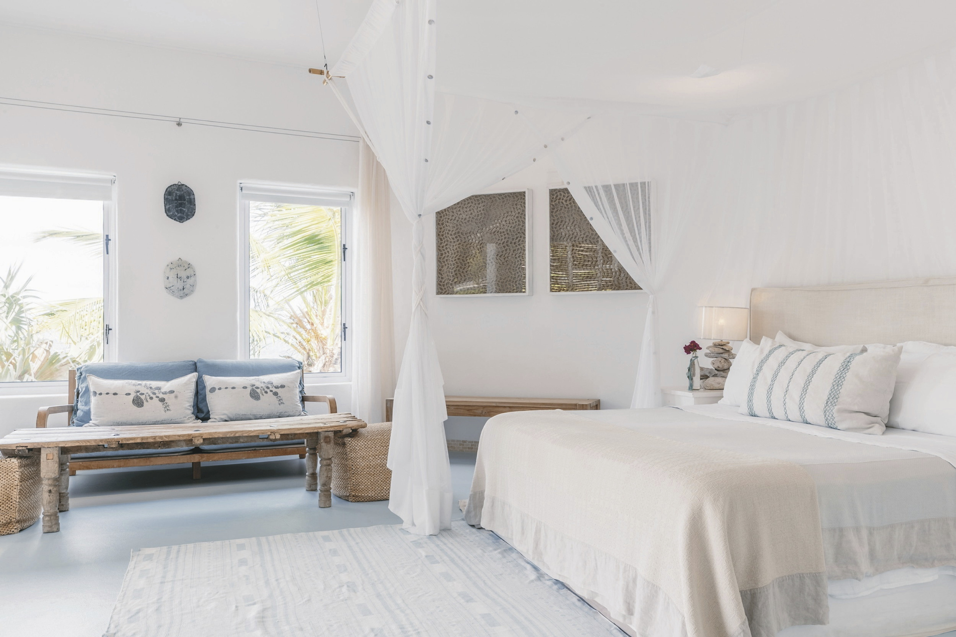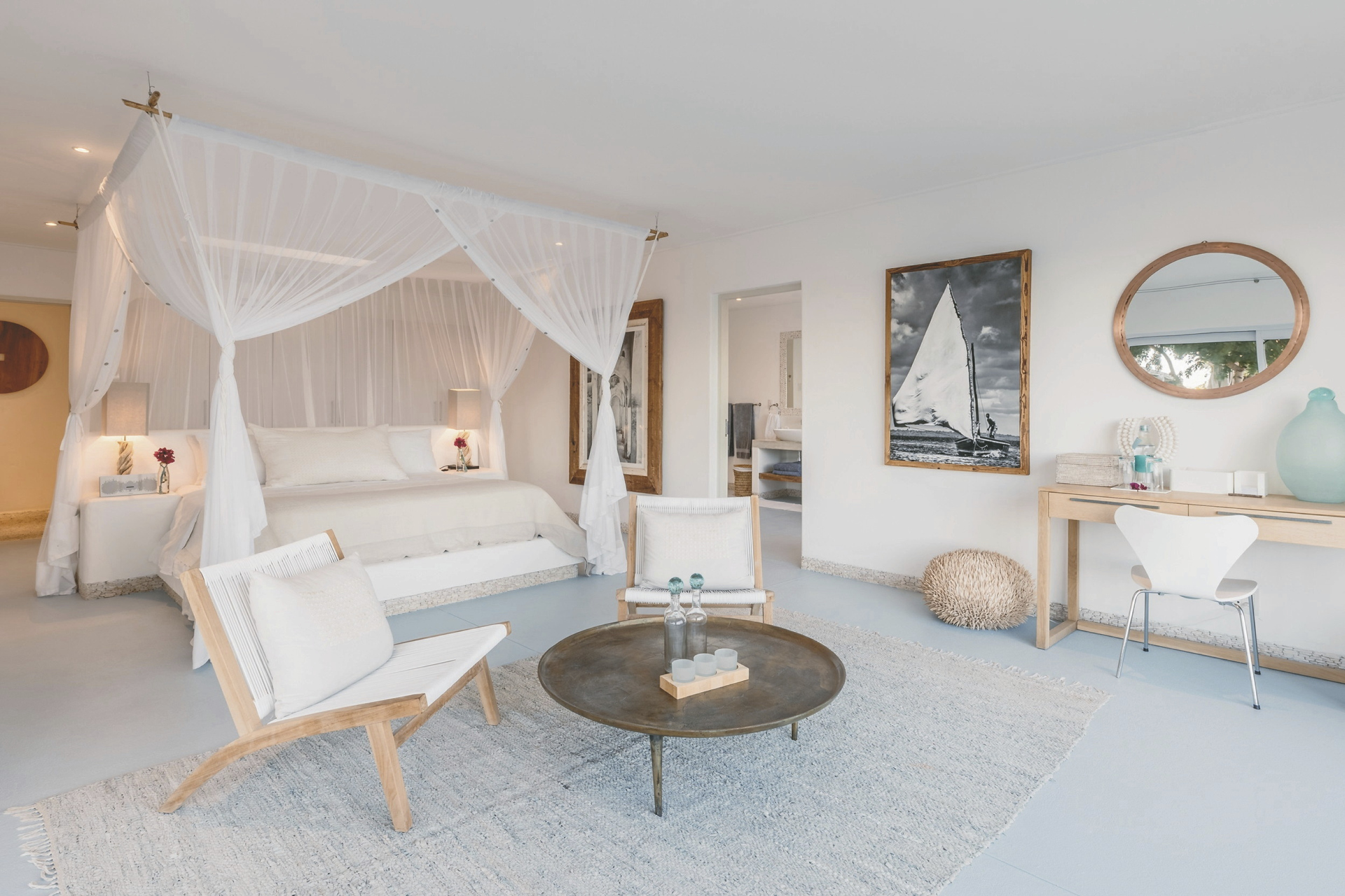 Die 5 großzügigen Suiten mit Meerblick sind im Hauptgebäude untergebracht. Die 3 Villen mit jeweils eigenem Pool liegen verstreut in der Gartenanlage. Alle versprechen sie höchsten Komfort und Luxus. Helles Holz, weiße Polster und viel Tageslicht, sowie moderne Badezimmer passen perfekt ins Gesamtkonzept. Alle Unterkünfte sind ausgestattet mit Klimaanlage, Deckenventilator, Moskitonetz, Safe, Fön, kostenfreiem WLAN, einer gefüllten Strandtasche und natürlich Balkon oder Terrasse. Die Suiten 2-4 verfügen zusätzlich noch über einen gemütlichen Wohnbereich, Suite 5 außerdem noch über ein Außenbadezimmer. Zu den Villen mit 2 oder 3 Schlafzimmern gehört neben einer voll ausgestatteten Küche und einem Wohn- und Essbereich auch ein privater Koch und Butlerservice.