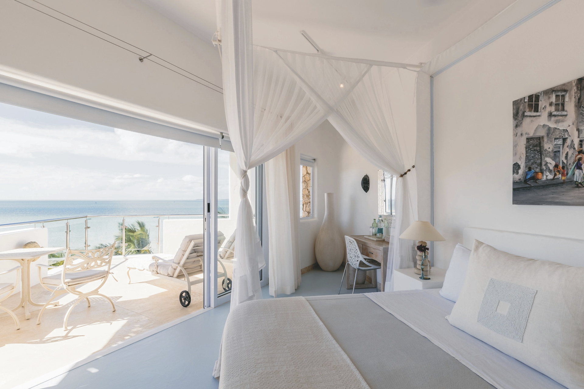 Santorini, der Name des Boutique-Hotel hält was er verspricht. Angelehnt an die griechische Bauweise auf der gleichnamigen Insel entstand eine exklusive und weitläufige Unterkunft mit herrlichem Meerblick.