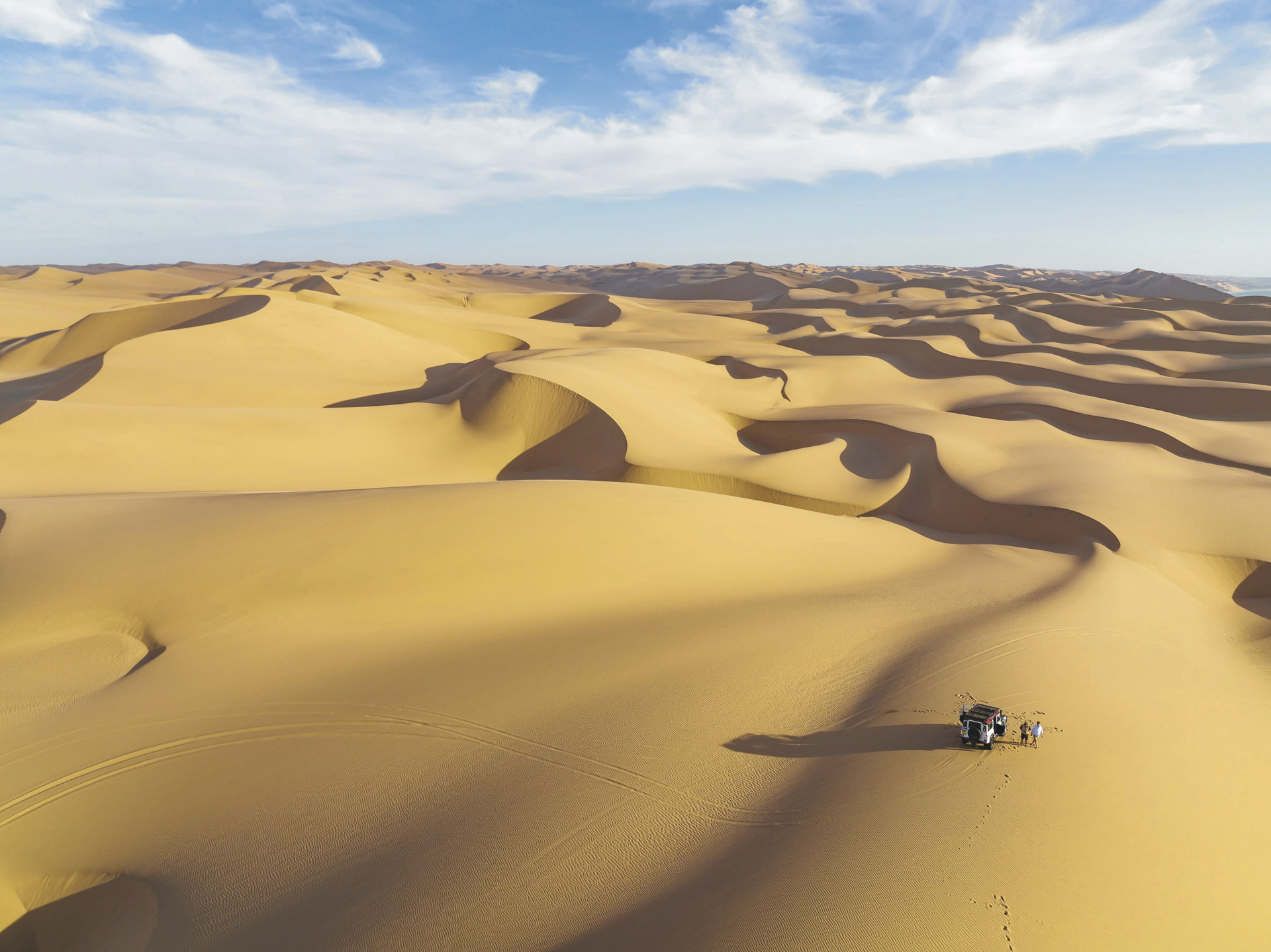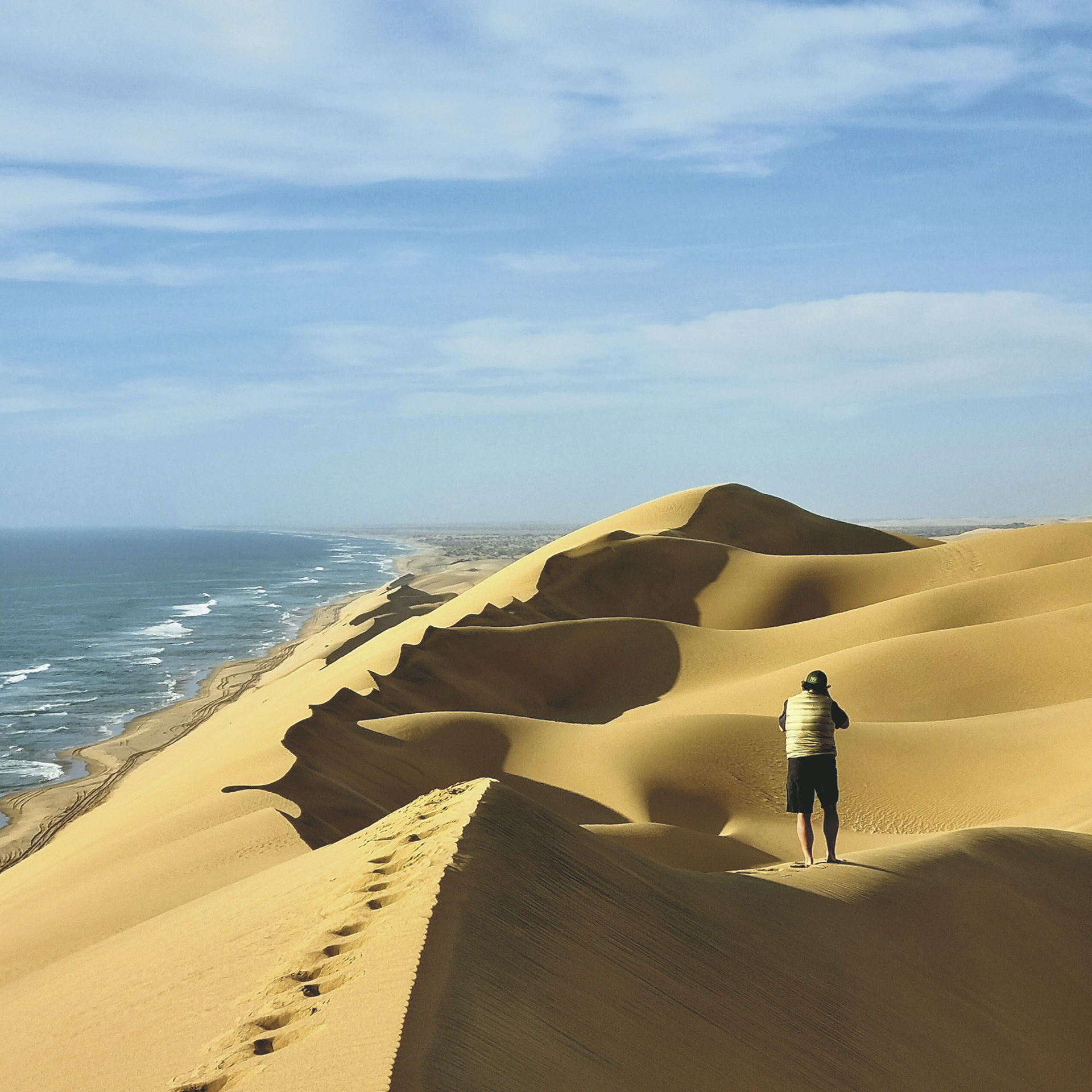 Wenn Sie einen ganzen Tag zur Verfügung haben nutzen Sie die Möglichkeit nach dem Mittagessen mit dem Allrad-Fahrzeug das Dünengebiet von Sandwich Harbour und Namib Sand Sea, einem Unesco Weltkulturerbe, zu erkunden. Die Tour führt u.a. zur Lagune, den Salzpfannen, und - wenn Gezeiten und Wetter es erlauben - zur Sandwich Harbour Lagune. Unterwegs gibt es viele Möglichkeiten die einmalige Kulisse einzufangen, den Ausblick zu genießen oder die Dünen zu erklimmen. Die Roaring Dunes sind sehr geräuschvoll und laden zum Runterrutschen ein. Sie und die hohen Aussichtsdünen sind weitere Höhepunkte des Tages. Rückkehr nach Walvis Bay gegen 18.00 Uhr.