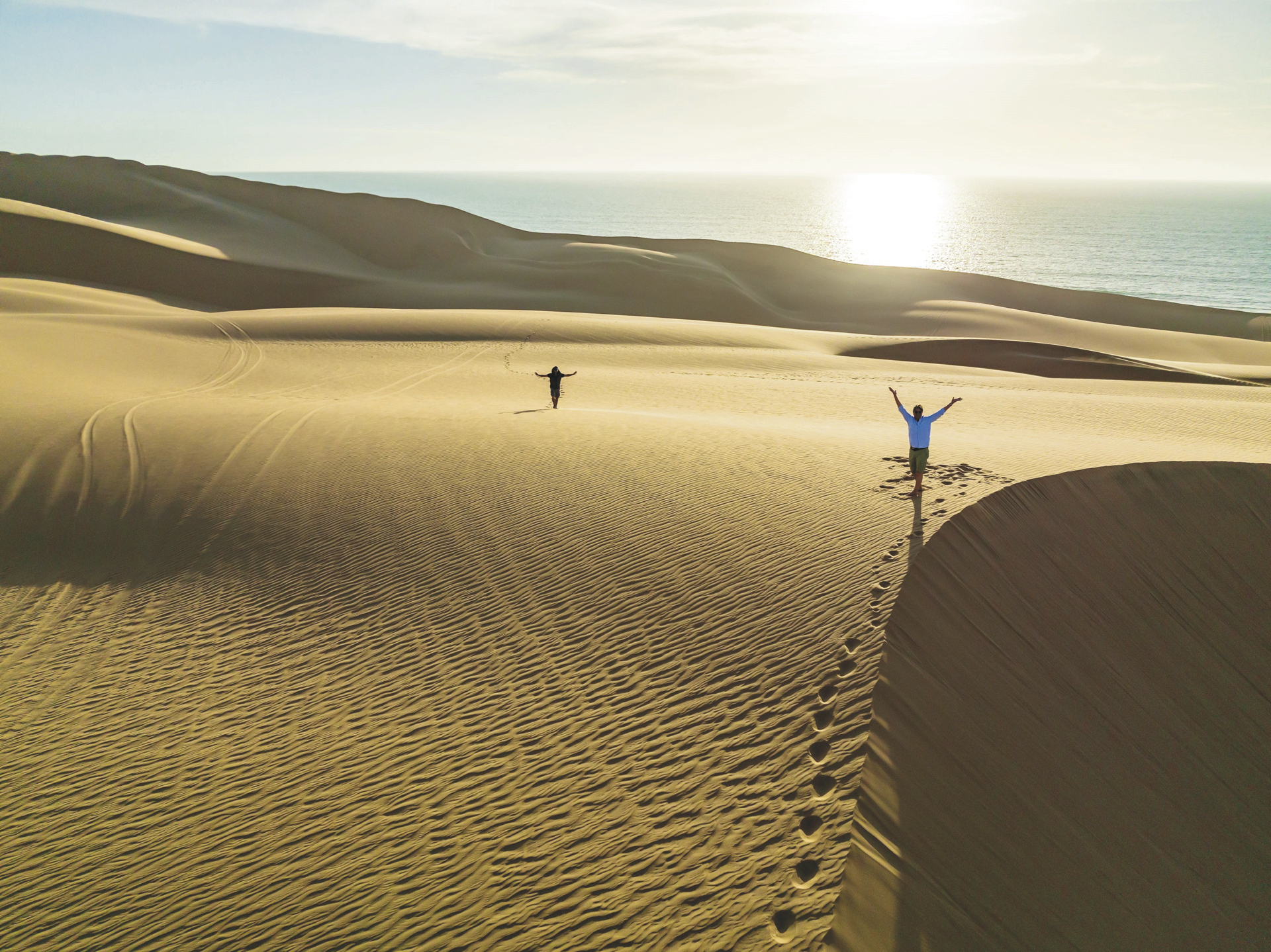 Die Tour führt u.a. zur Lagune, den Salzpfannen, und - wenn Gezeiten und Wetter es erlauben - zur Sandwich Harbour Lagune. Unterwegs gibt es viele Möglichkeiten die einmalige Kulisse einzufangen, den Ausblick zu genießen oder die Dünen zu erklimmen. Die Roaring Dunes sind sehr geräuschvoll und laden zum Runterrutschen ein. Sie und die hohen Aussichtsdünen sind Höhepunkt der Tour. Ein leichter Snack, Sekt und weitere Getränken werden stilvoll in den Dünen serviert. Diese Option kann auch von 12.30 Uhr - 17.00 Uhr gebucht werden