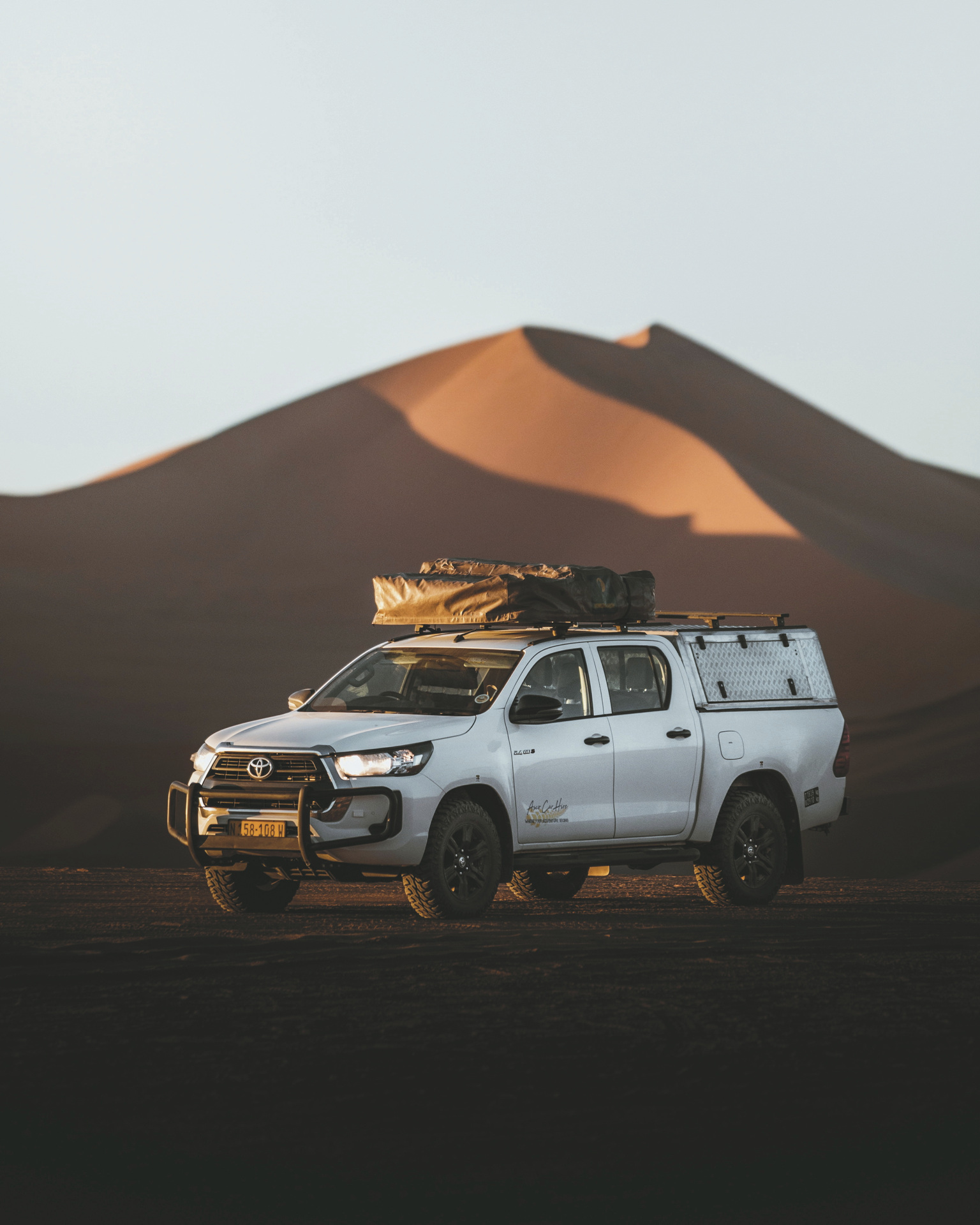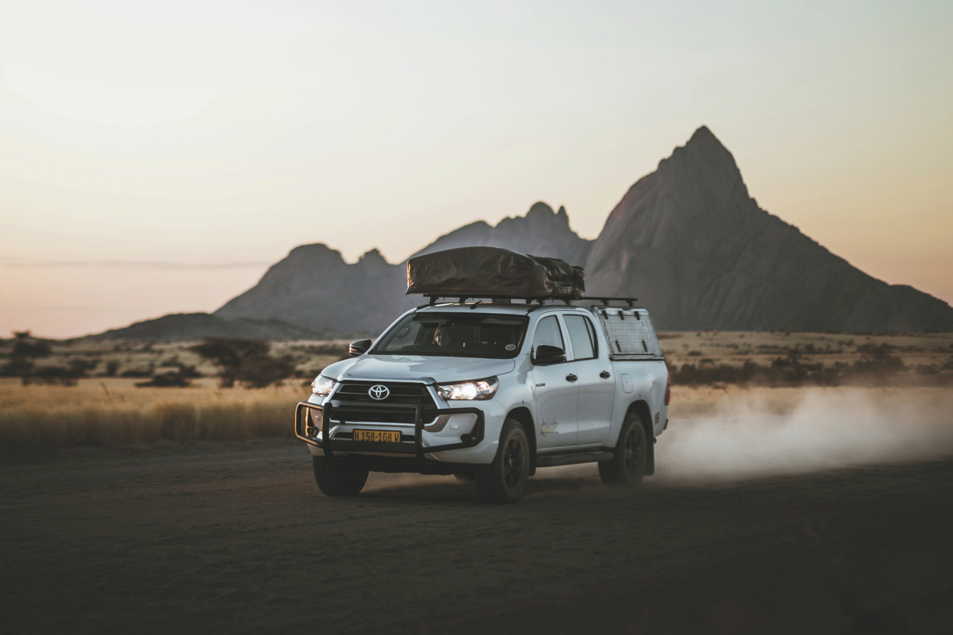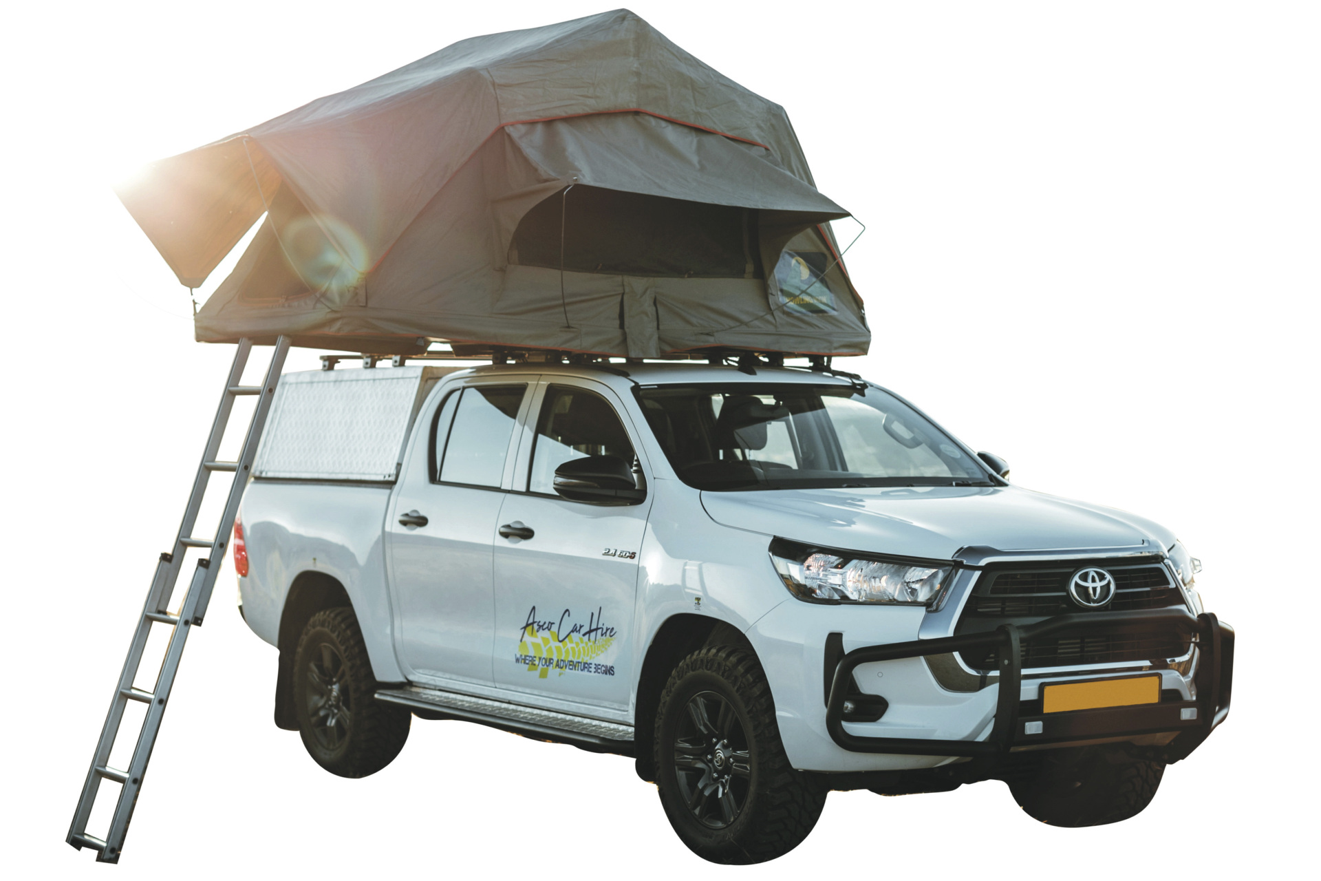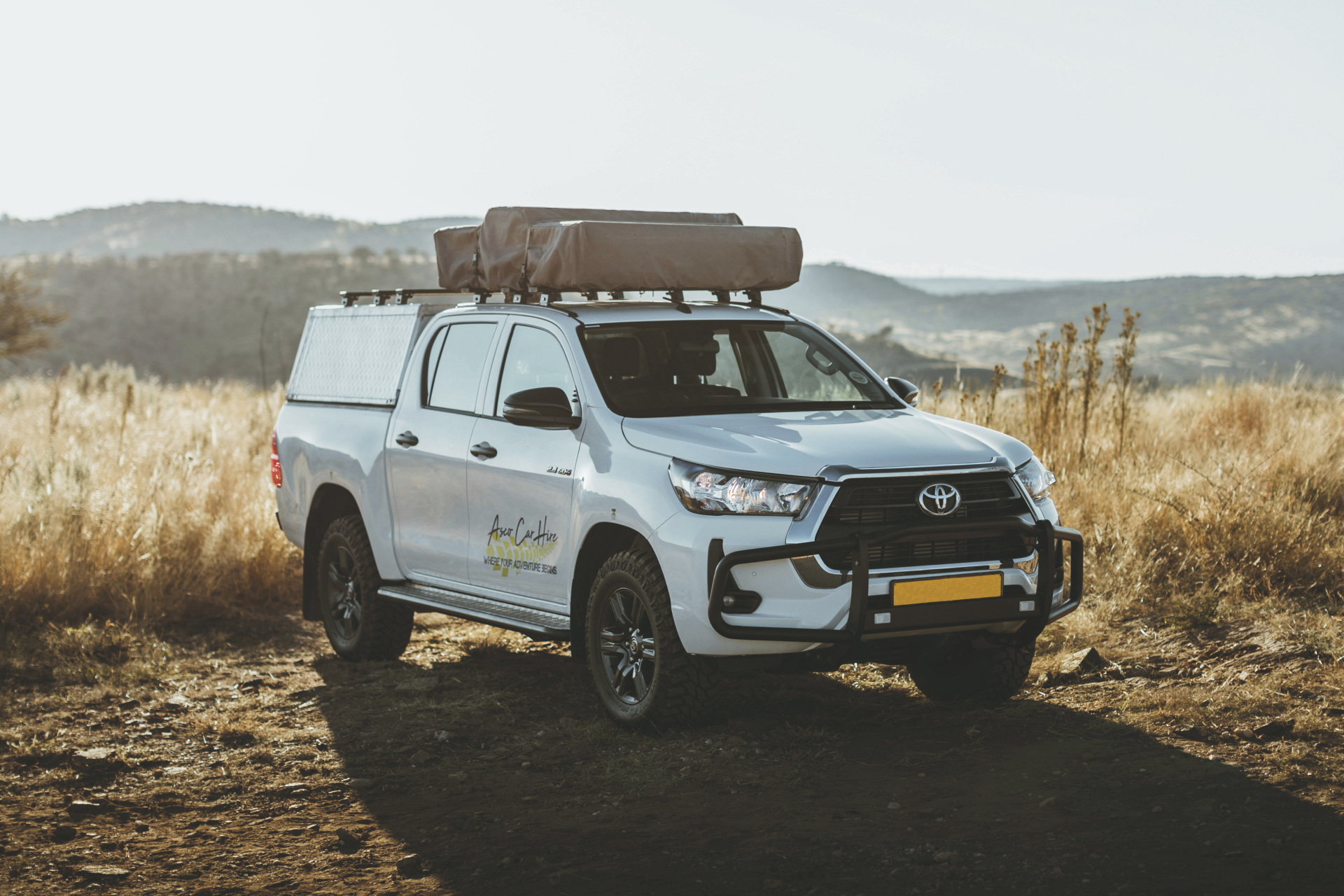 Der zuverlässige Toyota Hilux mit Automatikgetriebe verfügt über ein Dachzelt und einen 140 l Treibstofftank für große Reichweite. Ein 4x4-Camper für maximal 2 Personen.