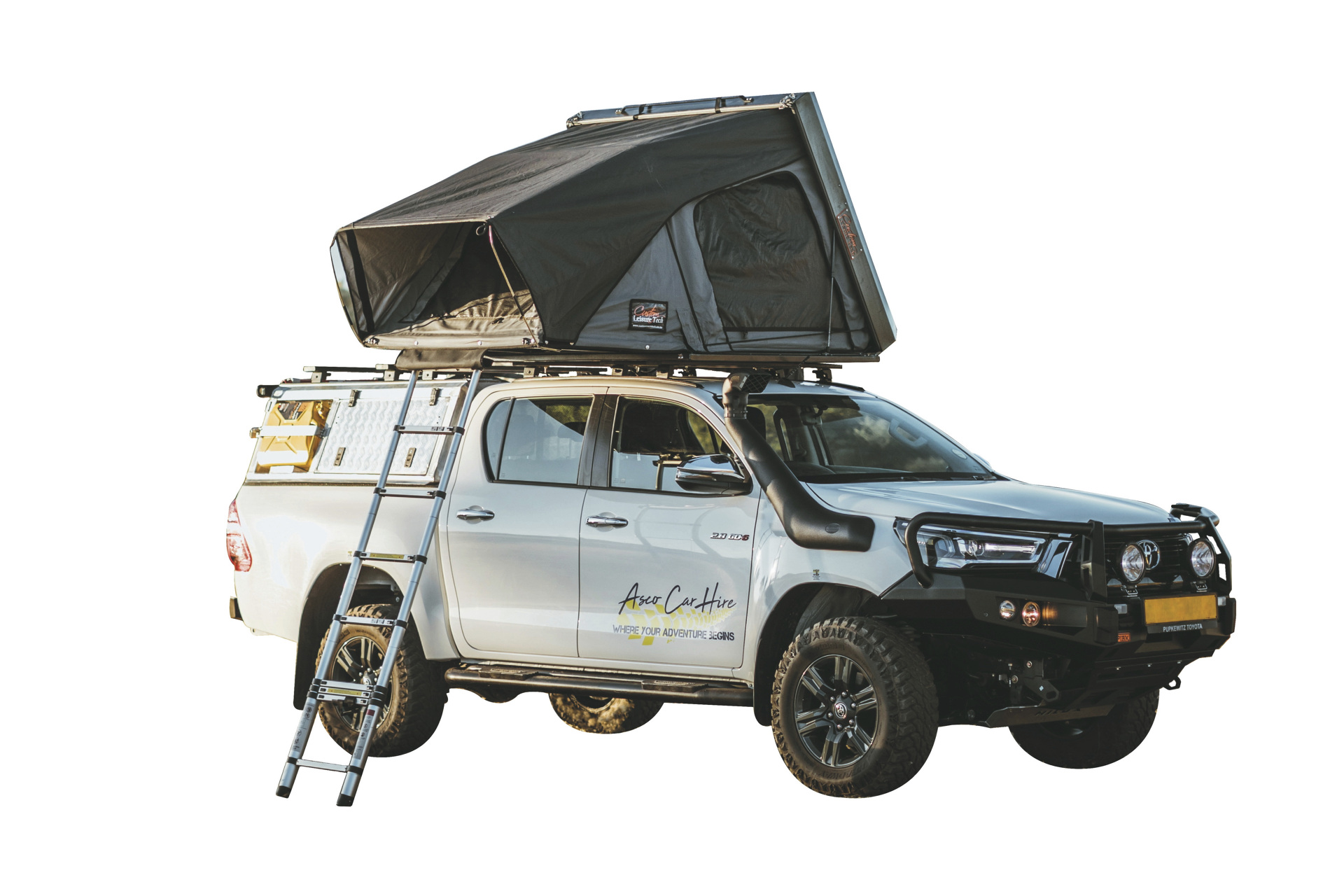 Die Toyota Hilux-Modelle der Safari-Baureihe verfügen über einen stärkeren Motor, ein spezielles Offroad-Fahrwerk sowie ein größeres und einfacher zu bedienendes Dachzelt. Ein 4x4-Camper für maximal 2 Personen.