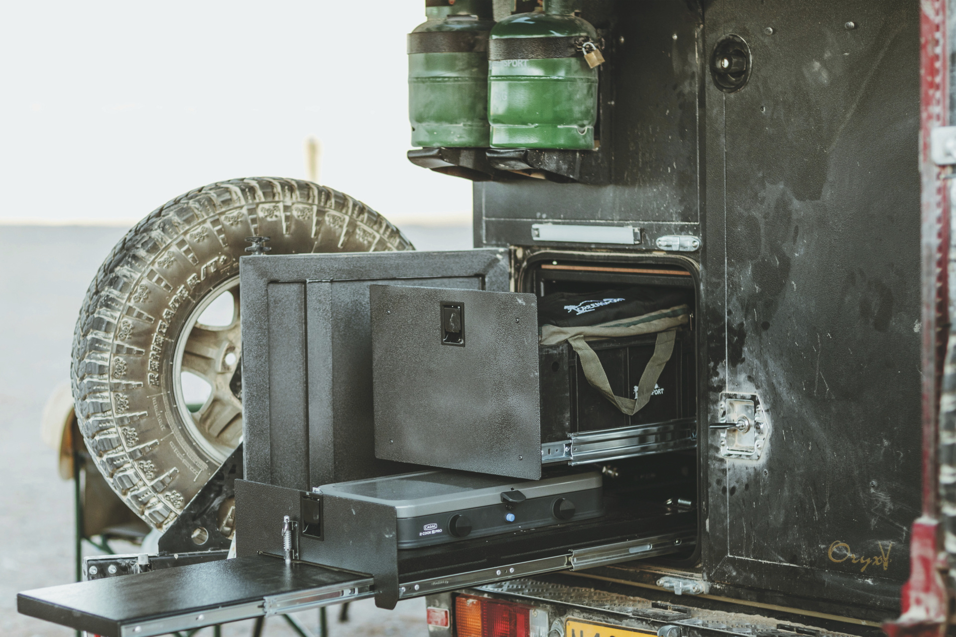 Zur Grundausstattung aller ASCO Allrad-Fahrzeuge zählen u.a. 2 Ersatzreifen, Luftkompressor und Bordwerkzeug.