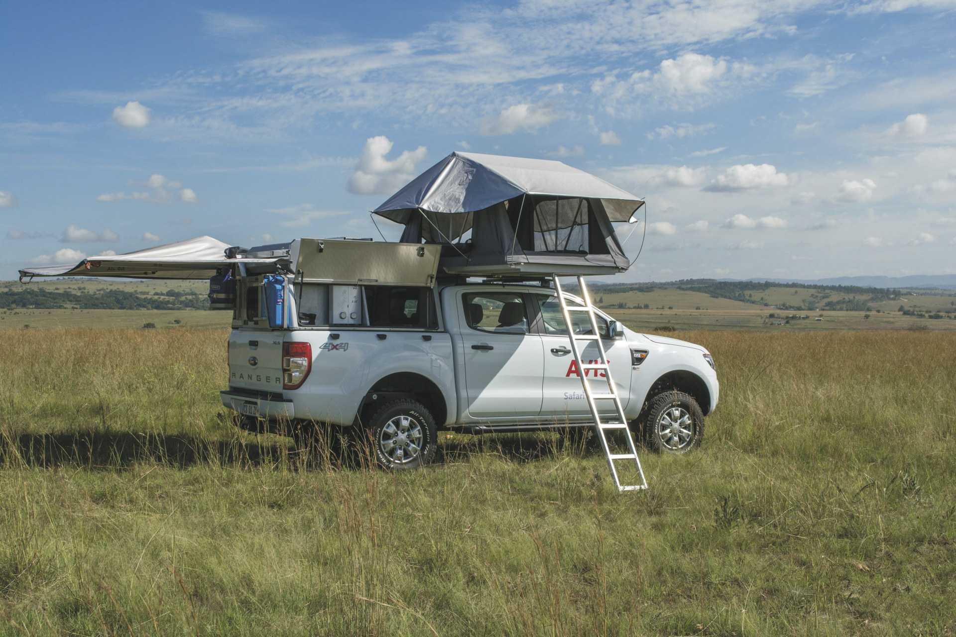 Beliebtes Modell mit geräumiger Doppelkabine und umfangreicher Ausstattung inklusive zwei großen Dachzelten. Für maximal 4 Personen.