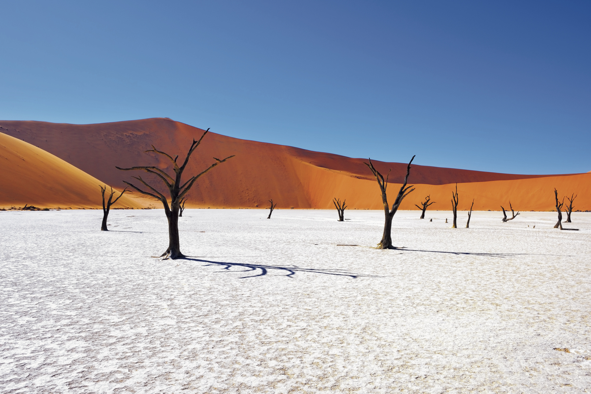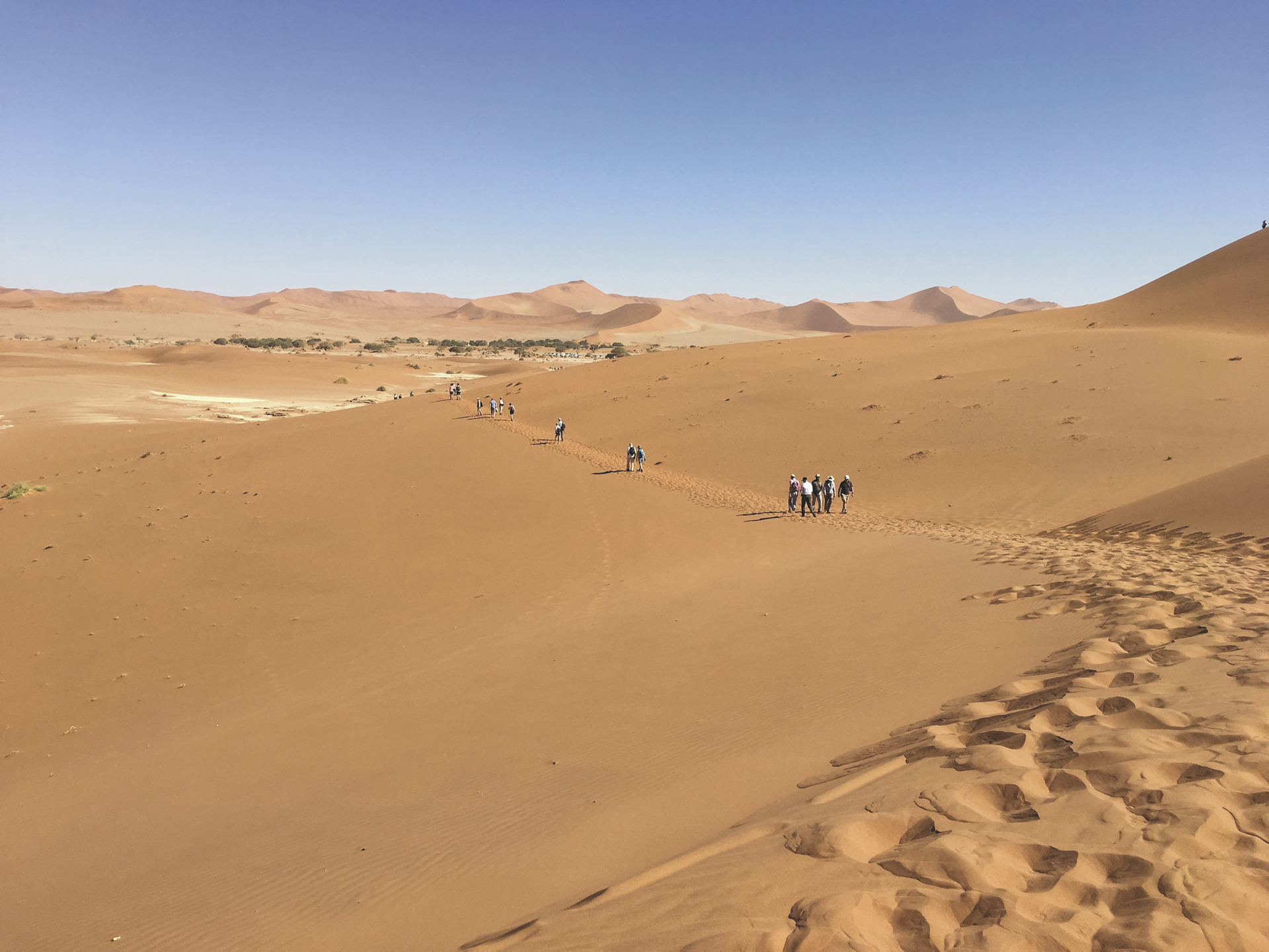 Sossusvlei (F/A).Geführter Ganztagesausflug ins Dünengebiet. Der frühe Morgen ist die schönste Zeit, um das Sossusvlei zu besuchen. Das Farbenspiel ist um diese Tageszeit unglaublich, ein Paradies für Hobbyfotografen und Entschädigung für das frühe Aufstehen. Erklimmen Sie die roten Dünen und genießen Sie den Weitblick. Die hohen Dünen sind eine Herausforderung, immer am Grad entlang durch den weichen Sand geht es hinauf bis auf die Spitze. Auch der Besuch des kleinen Sesriem Canyons ist sehr interessant. Am Grund, im Schatten ist es angenehm kühl und eine unwirkliche Stille empfängt Sie.