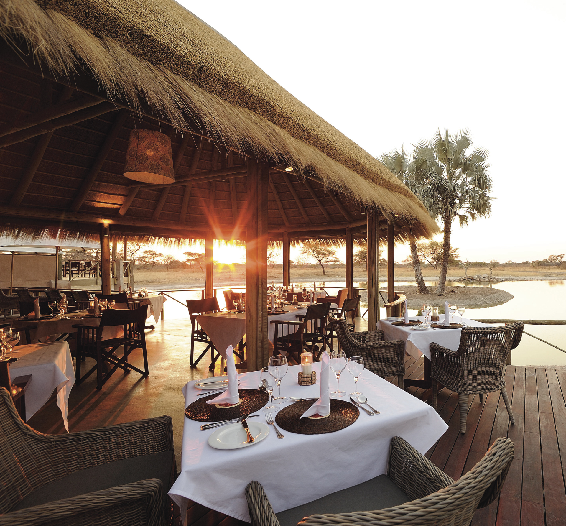Etosha Nationalpark (ca. 75 km; F/A).Eine ganz besondere Aktivität können Sie am heutigen Morgen optional unternehmen. Noch vor Sonnenaufgang werden Sie zu einem 3-stündigen Aufenthalt zu einem Beobachtungsversteck an einem Wasserloch gebracht. Aus ungewöhnlicher Perspektive können Sie die Tiere bei ihrem ersten morgendlichen Trunk oder Bad beobachten. Nach dem Frühstück fahren Sie am östlichen Rand der großen Salzpfanne entlang zum wildreiche Onguma Private Game Reserve, unweit des Etosha Nationalparks. Optional können Sie am späten Nachmittag ein einer geführte Pirschfahrt teilnehmen. Am Camp befindet sich ein von Tieren gern besuchtes Wasserloch, bestellen Sie sich Ihr Lieblingsgetränk und bestaunen Sie das Kommen und Gehen im Schein der untergehenden Sonne.
