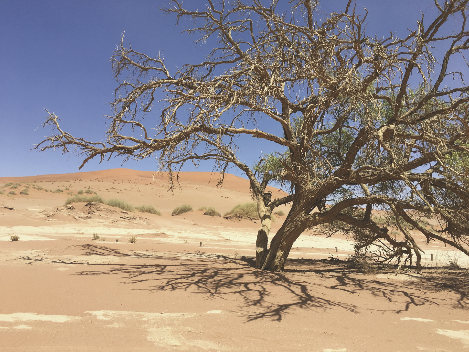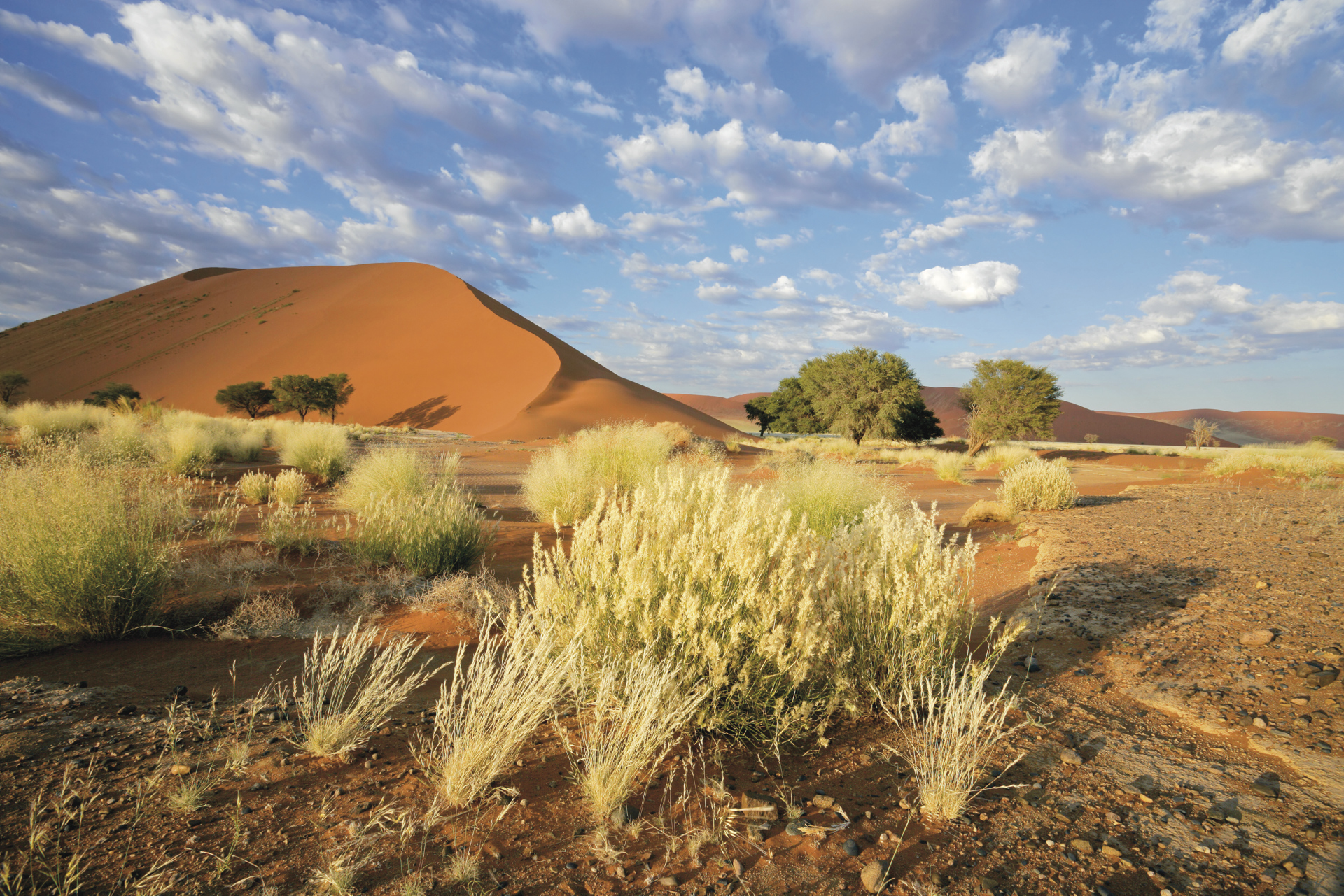 Swakopmund - Sossusvlei (F/A).Die Fahrt führt durch den Kuiseb- und den Gaub Pass über Solitaire, wo Sie den legendären Apfelkuchen probieren können, zum Desert Hills Glamping Camp, das nicht weit vom Eingang zum Sossusvlei gelegen ist und ausgezeichnete Möglichkeiten bietet, die älteste Wüste der Welt, die Namib zu erkunden. Genießen Sie einmalige Ausblicke auf die berühmten roten Sanddünen von Sossusvlei, wie auch auf die prächtige Berglandschaft und das Flachland.