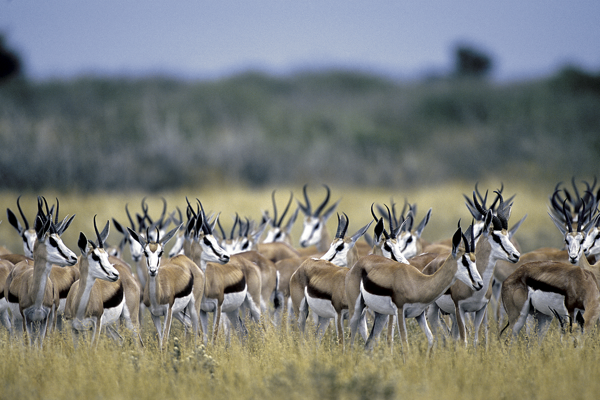 22/31Springböcke in der Kalahari