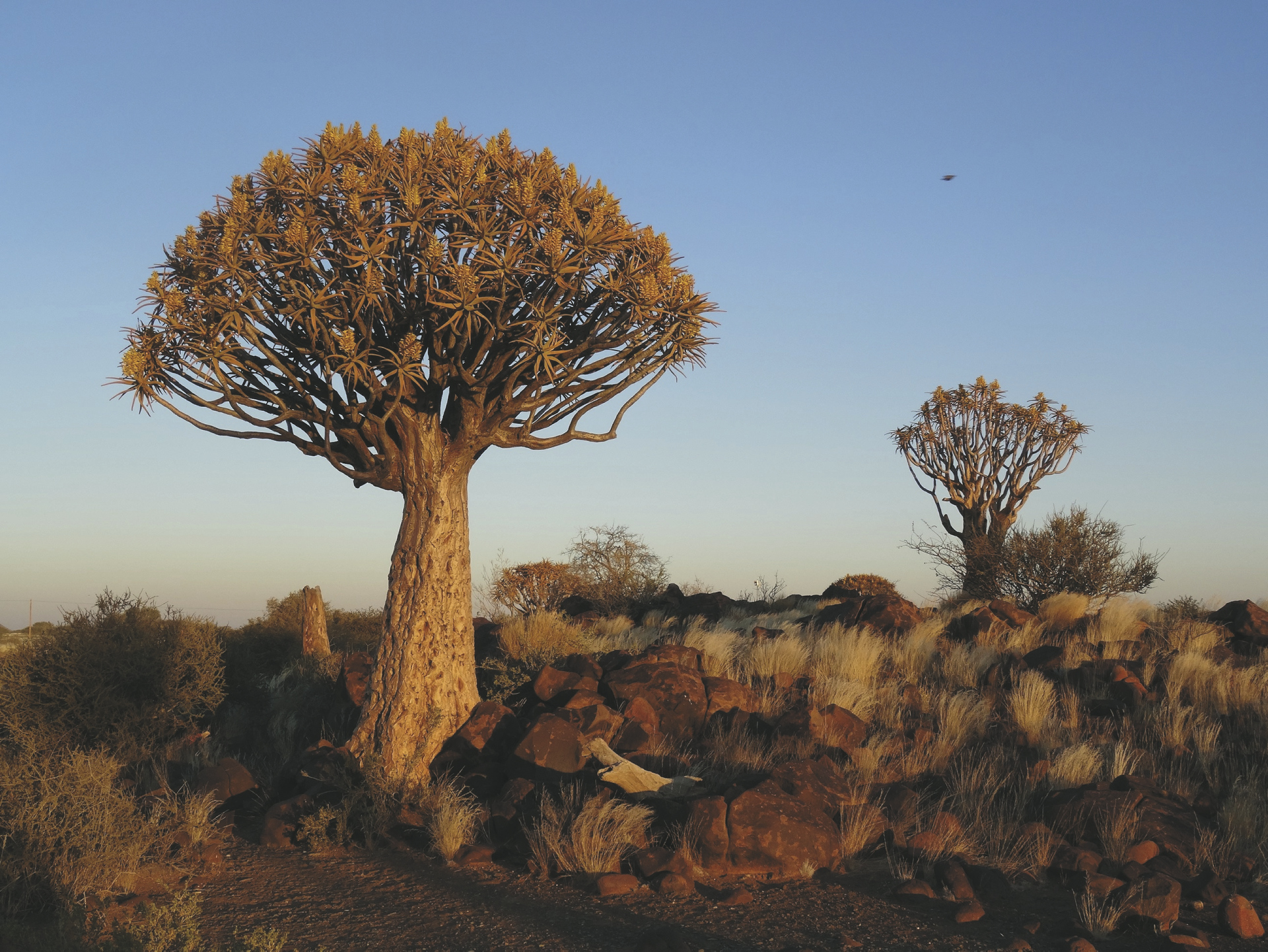 Kalahari - Keetmanshoop (F).Vormittag zur freien Verfügung, nachmittags Besuch des Spielplatzes der Giganten sowie dem Köcherbaumwald. Die über 3.000 Exemplare der prähistorischen Köcherbäume mit ihrer goldfarbenen Rinde und den gelben Blüten lassen im Licht der untergehenden Sonne das Herz jedes Naturliebhabers höherschlagen.