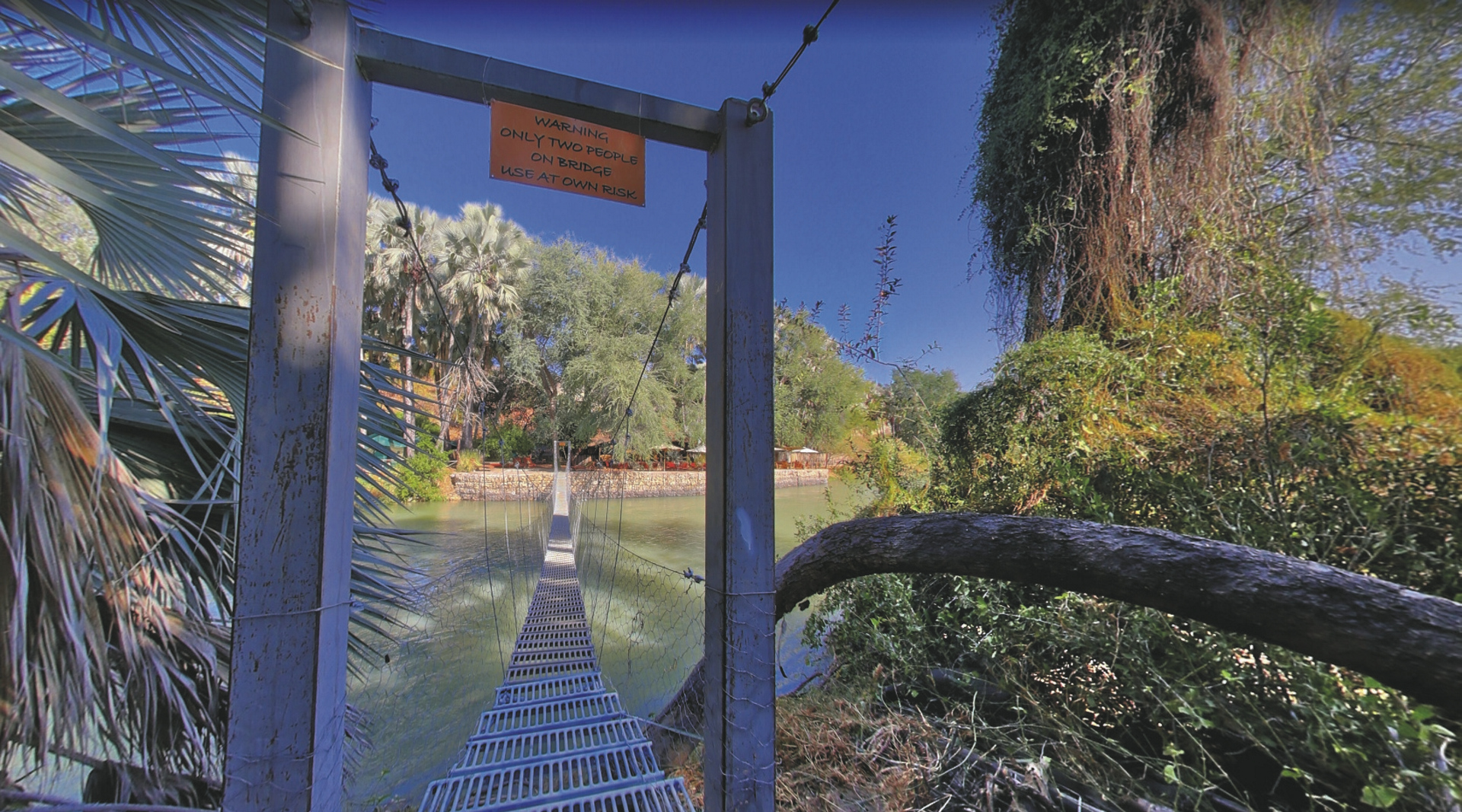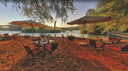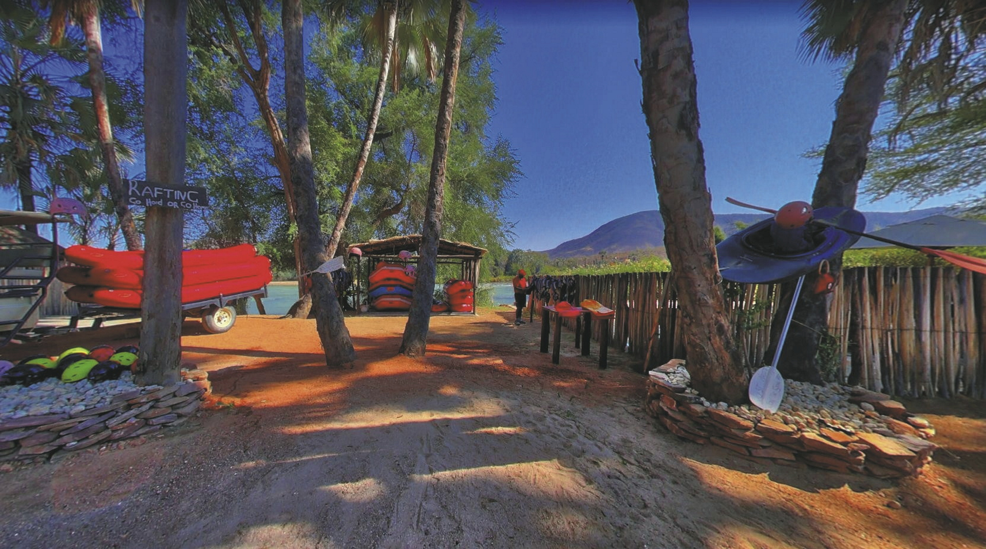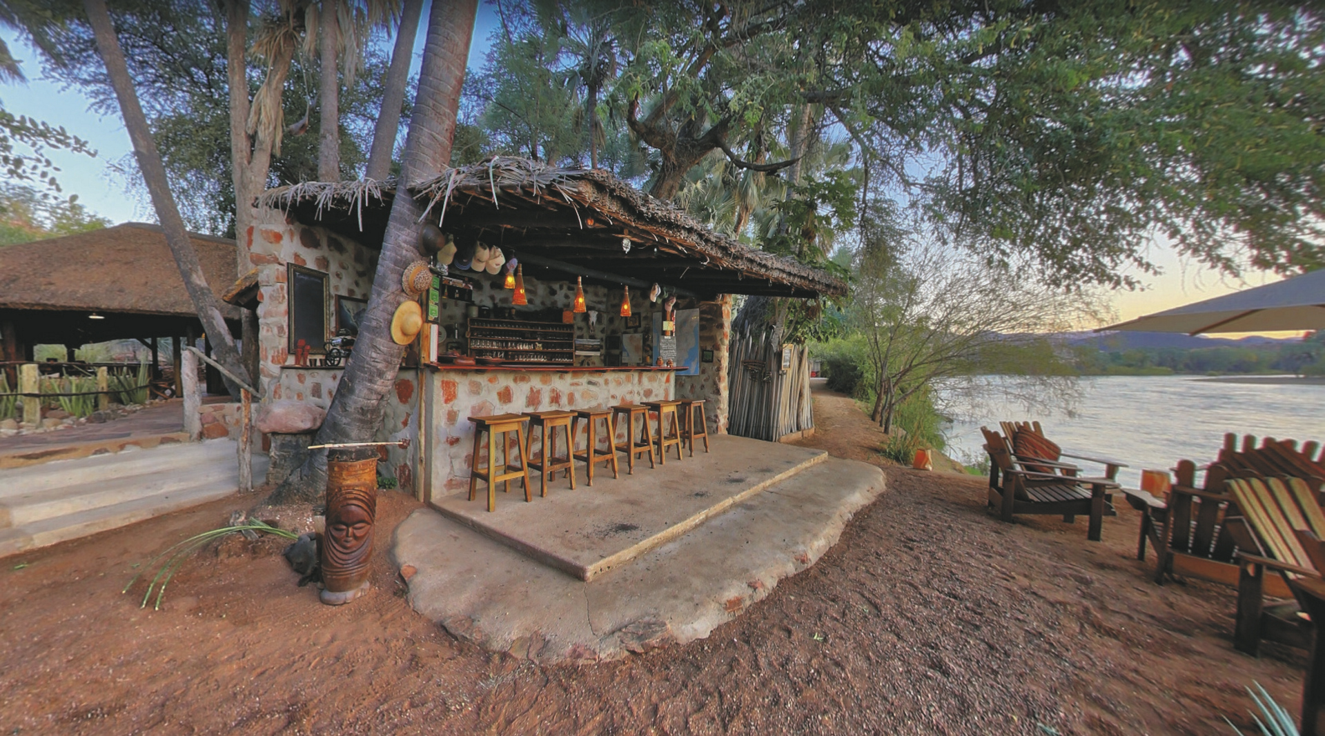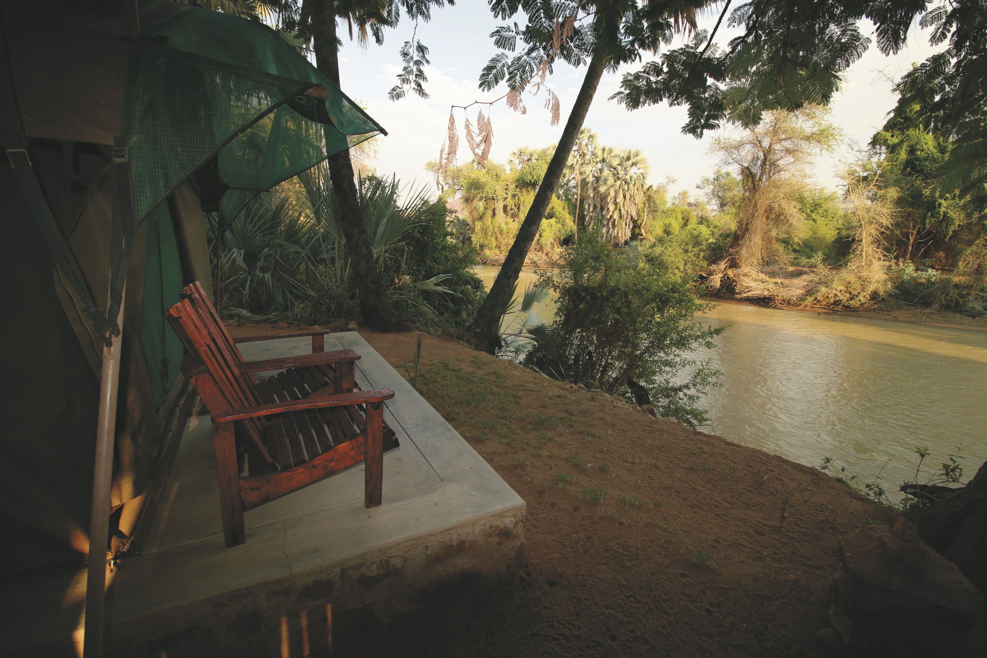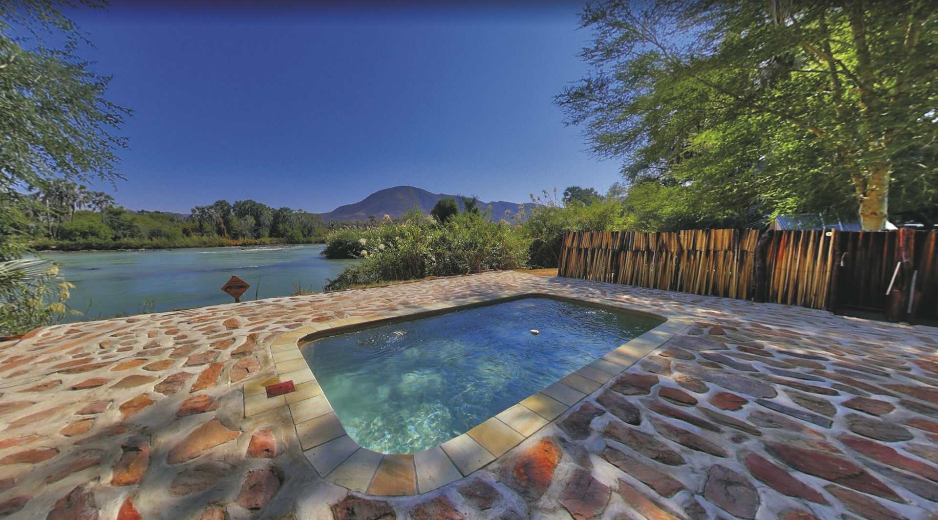 Das Leben spielt sich überwiegend draußen ab und der Blick in die Natur und auf den Fluss ist nahezu allgegenwärtig. Wer braucht schon Wände, Türen oder Fenster, wenn der Ausblick so einmalig ist? Im zentralen Bereich befinden sich das offene Restaurant, eine urige Freiluft-Bar - hier finden Sie auch WLAN, sowie eine gemütliche Lounge und der Pool mit Blick auf den leise dahin fließenden Fluss. Die Zusammenarbeit mit den Himba ist eng, eine Begegnung mit dem Naturvolk sollten Sie nicht missen. Über eine abenteuerliche Hängebrücke erreichen Sie die hauseigene Insel. Ein friedliches Plätzchen an dem man ein wenig Spazieren gehen, hervorragend auf der Schaukel entspannen oder Vögel beobachten kann. Optionale Aktivitäten: authentischer Besuch in einem Himbadorf, geführte Wanderung, Sonnenuntergangsfahrt, Rafting und Bootstouren auf dem Kunene Fluss.