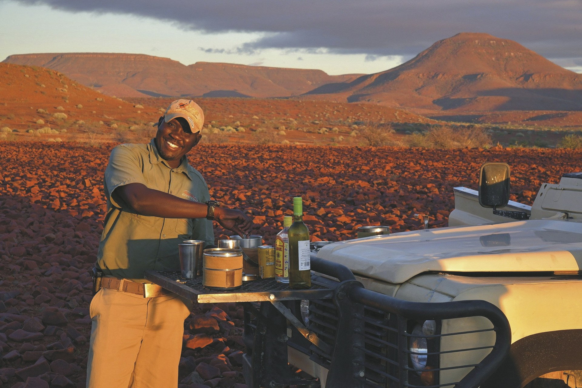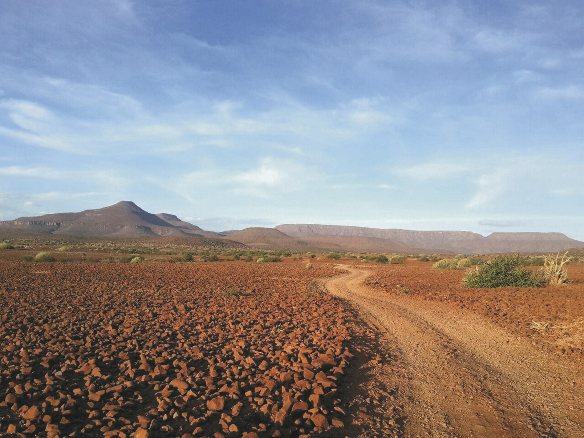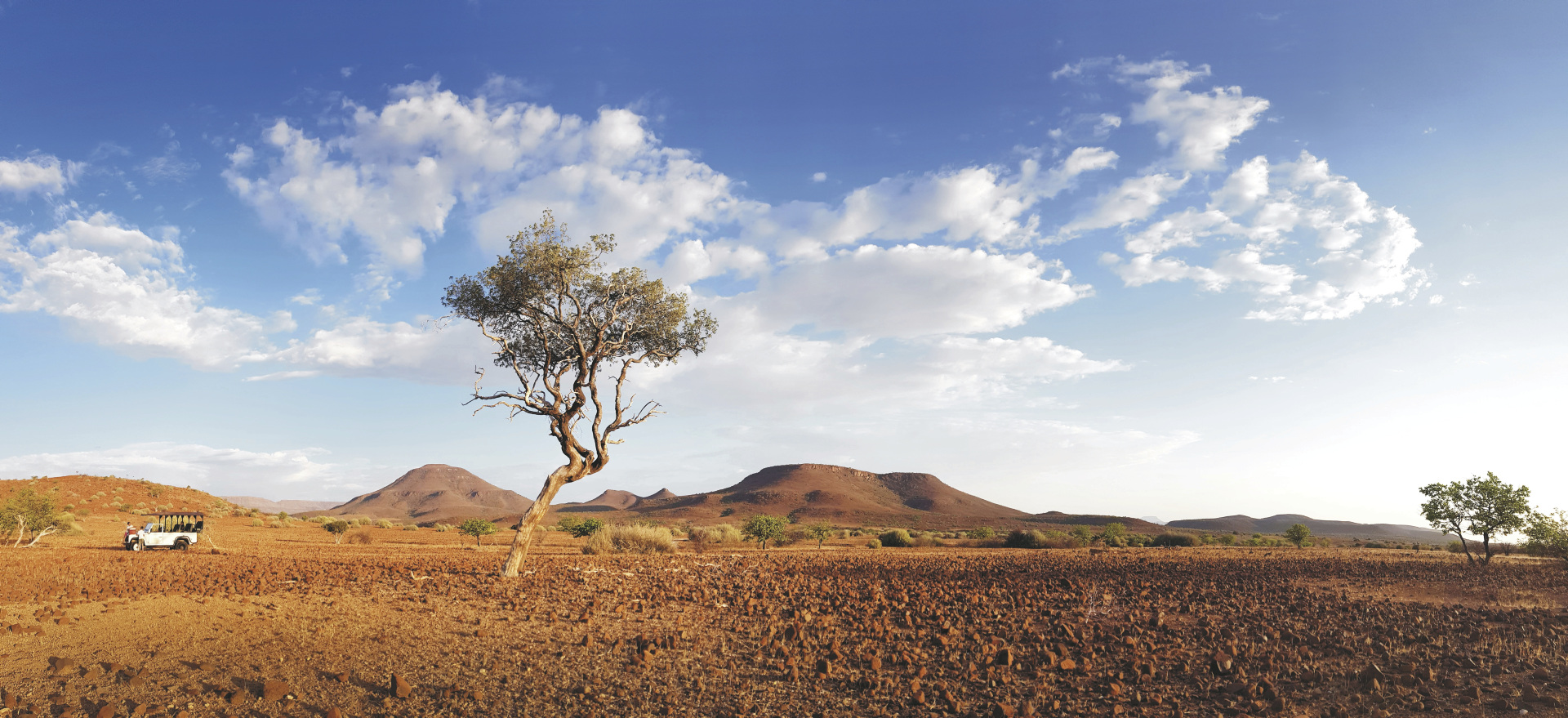 In den Ausläufern des Grootberg Massivs, inmitten einer herrlichen Landschaft und der uralten Etendeka Lava des nördlichen Damaralandes angrenzend an die Palmwag Konzession, ca. 660 km bis Windhoek. Ihr Fahrzeug parken Sie sicher auf dem Gelände der Palmwag Lodge, von dort erfolgt ein 1,5-stündiger Transfer mit dem Allradfahrzeug zur Lodge.