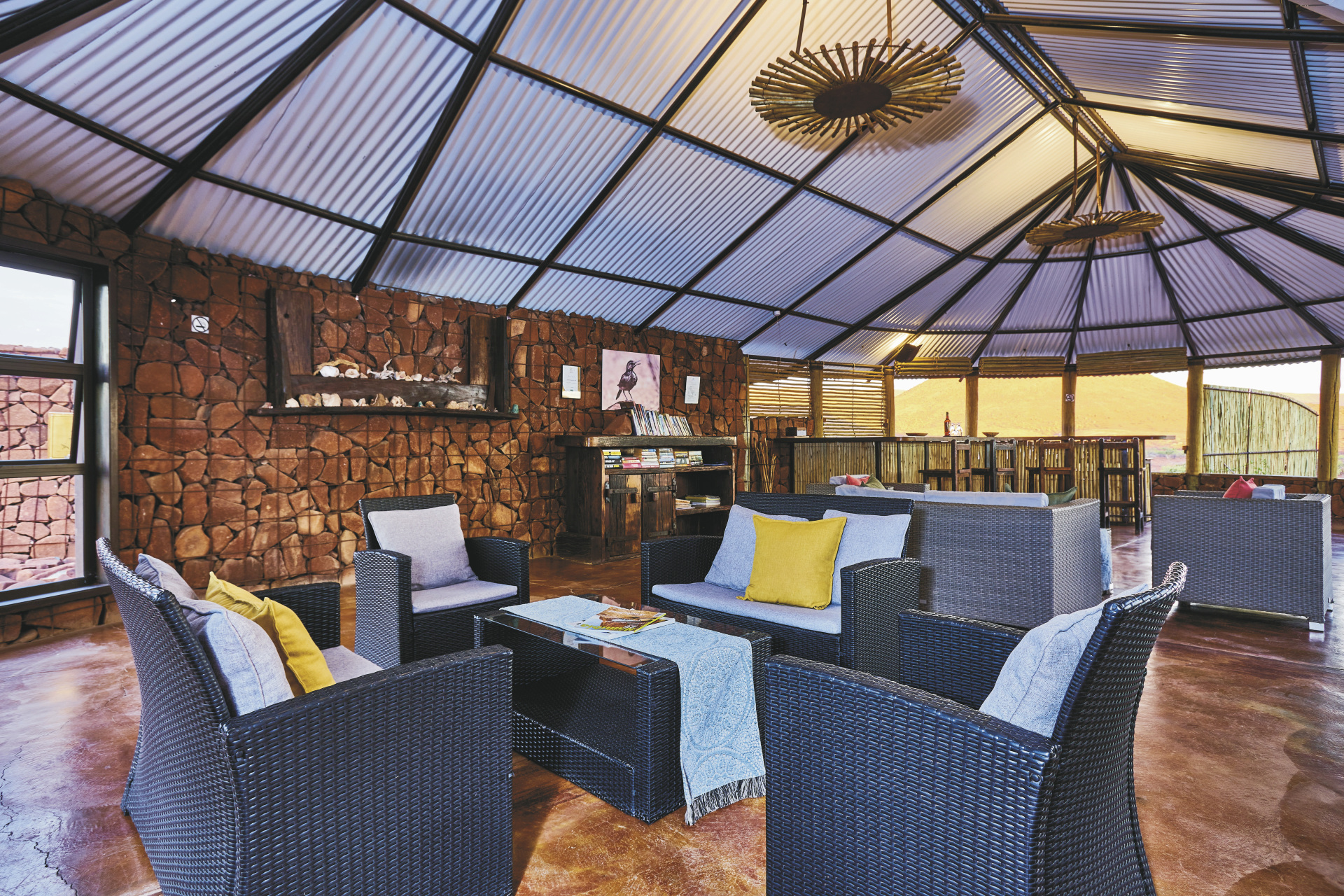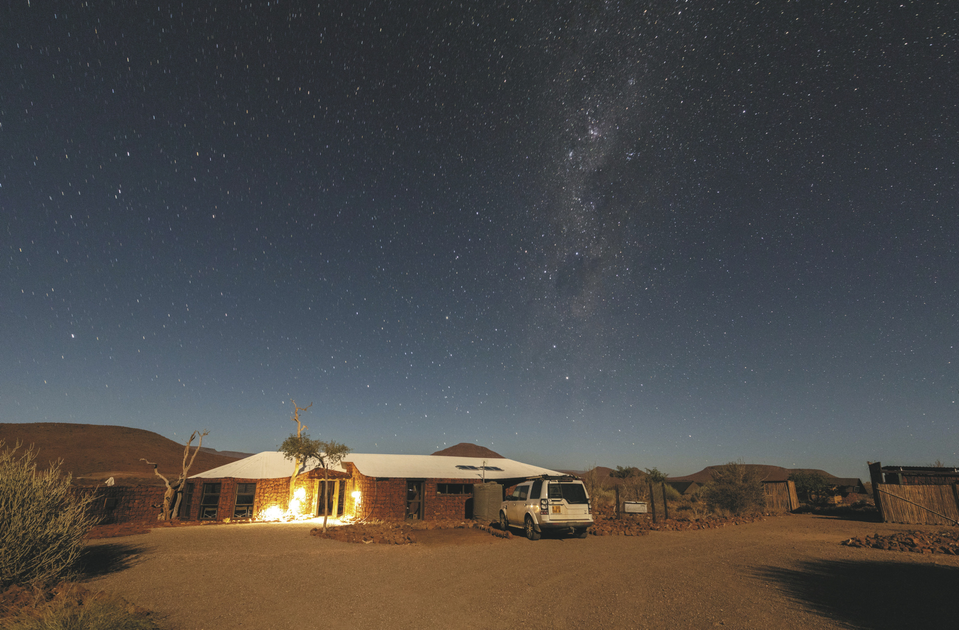 Das Etendeka Mountain Camp ist sicherlich eines der ursprünglichsten Naturcamps des Kaokovelds, großartige Wildtierbeobachtungen und wilde Landschaften unterstreichen den Charme des Camps. Der zentrale Bereich ist offen gestaltet und verfügt über einen Loungebereich, einen Speisesaal mit anschließender Terrasse und eine kleine Open-Air Bar. Für Erfrischung an heißen Tagen sorgt ein Plunge Pool. Einfache, frische und gesunde Mahlzeiten werden entweder in Solaröfen oder auf dem offenen Feuer zubereitet und meist unter afrikanischem Himmel genossen. Die lauen Sommernächten genießt man am Abend rund um die Feuerstelle. Da hier absolut keine Lichtverschmutzung herrscht zeigen sich die Sternen fast jeden Abend in ihrer vollen Pracht und ersetzen ohne Frage jegliches fehlende (elektronische) Entertainment. Ihr Gastgeber Dennis erklärt Ihnen nur zu gerne die verschiedenen Sternenkonstellationen, die sich neben der Milchstraße deutlich am Himmel abzeichnen. Da das Camp zu 100% über Solarstrom betrieben wird finden Sie Lademöglichkeiten, WLAN und einen Safe lediglich an der Rezeption. Eingeschlossene Aktivitäten: geführte Wanderungen und Panoramafahrten. Optional können Sie in 3 Tagen mit Übernachtungen auf Open-Air Plattenformen in kleiner Gruppe von 2-10 Personen den Etendeka Mountain Trail erwandern.
