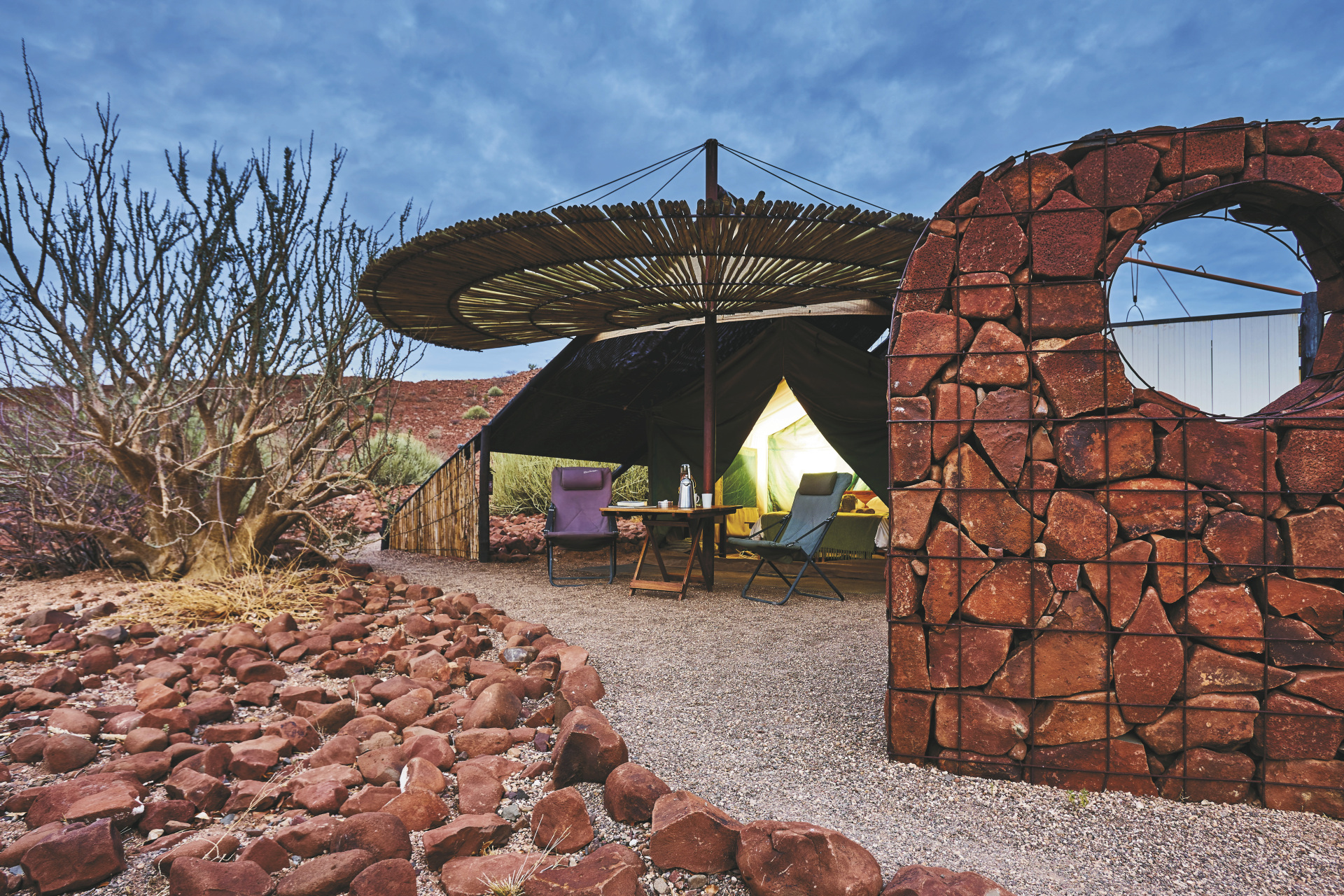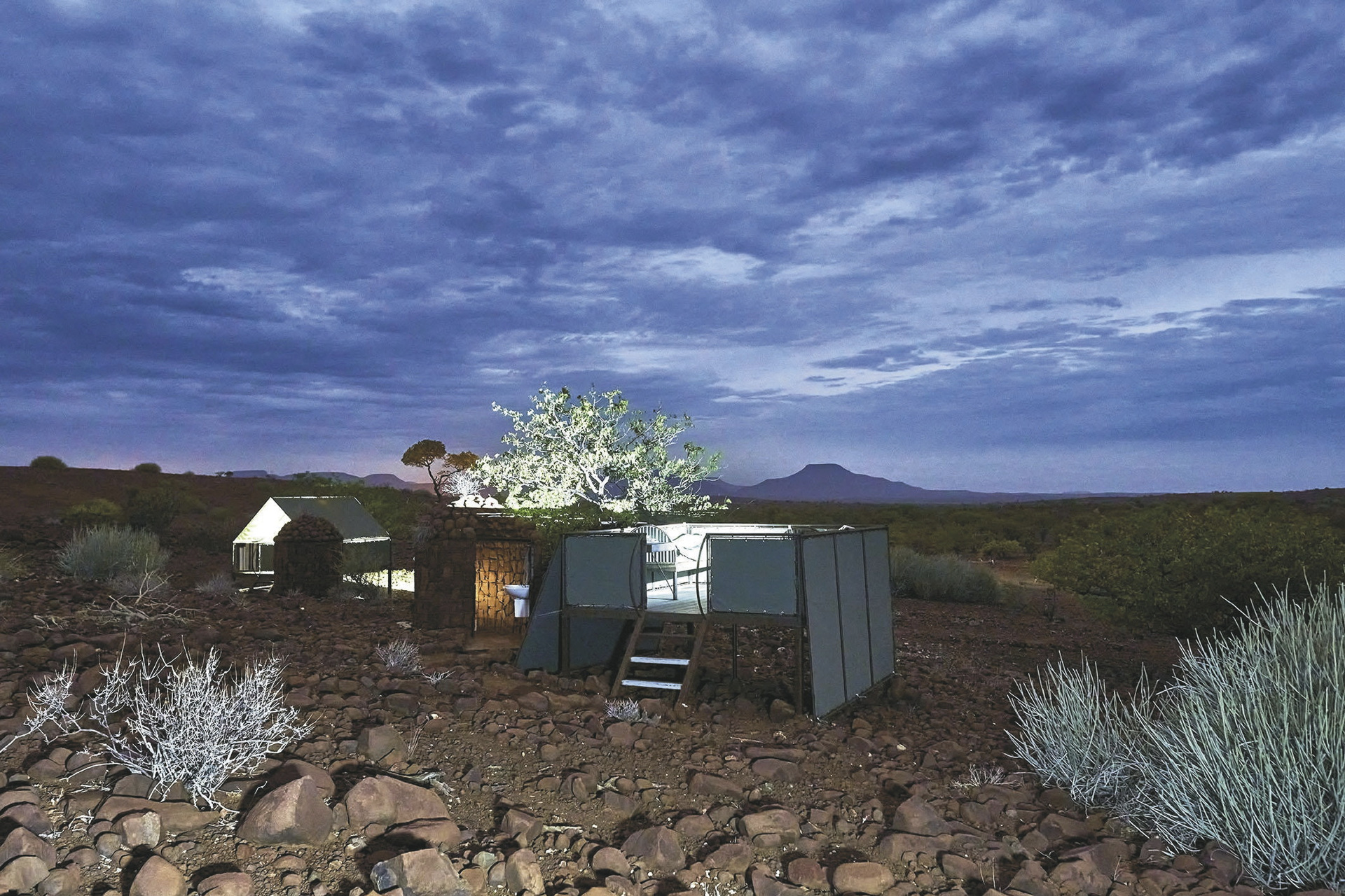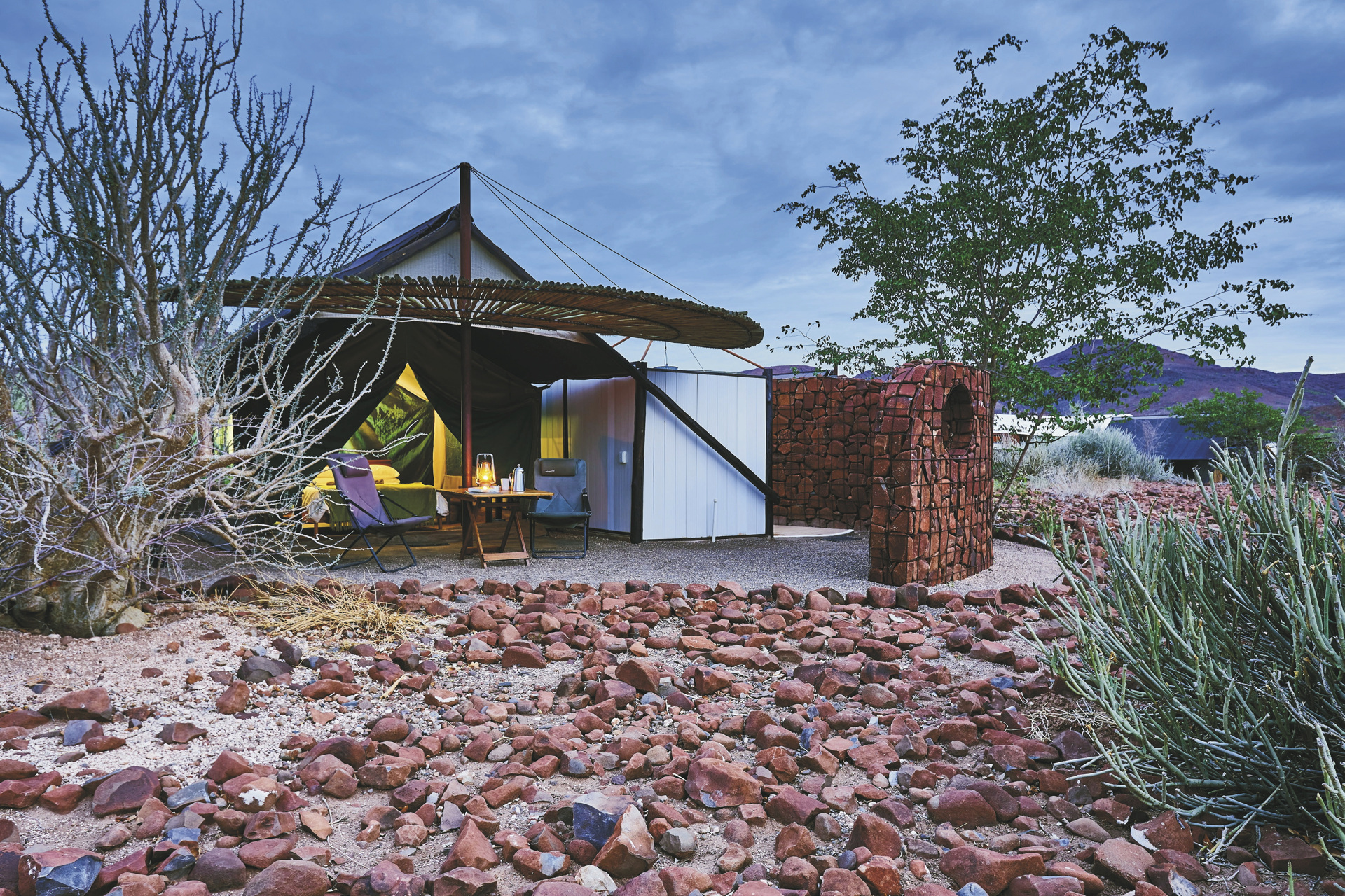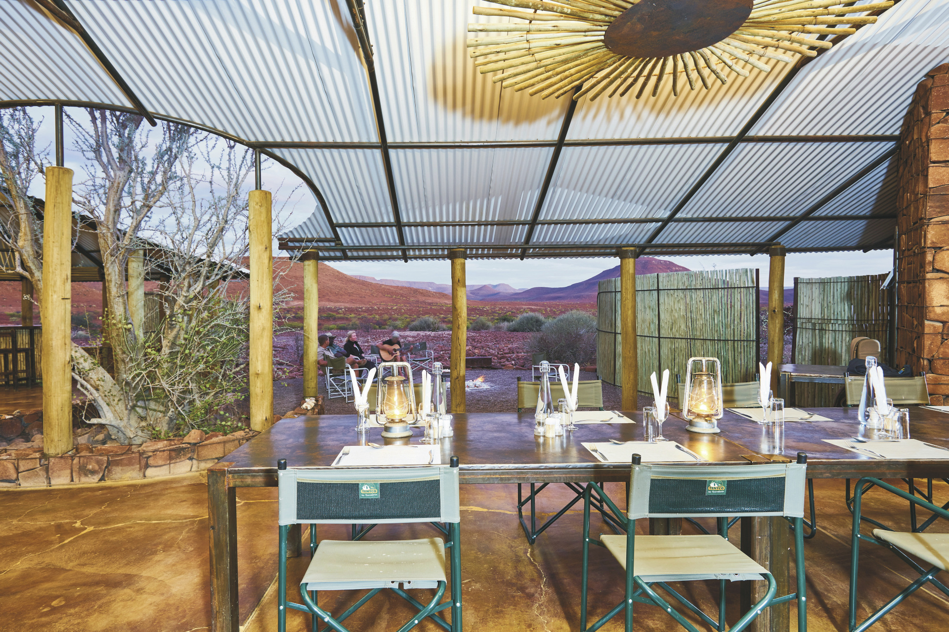 „Die Atmosphäre in Etendeka ist rustikal; wir wollten das raue Element des traditionellen Zeltlagers zurückbringen, das die meisten Camps in Nambia leider verloren haben“, so beschreibt der Campbetreiber Etendeka. Ein echtes Wildnis-Erlebnis. Die Landschaft ist rau, unberührt und atemberaubend. Das Hauptaugenmerk liegt auf den Wanderaktivitäten.