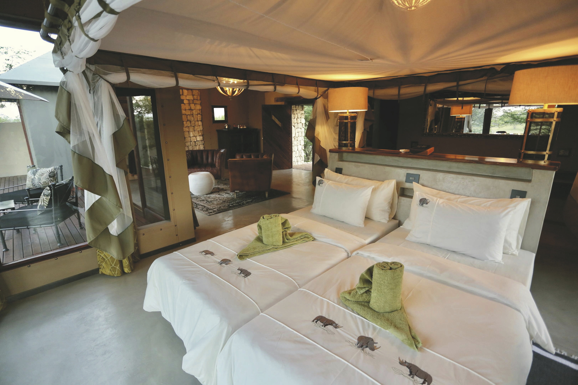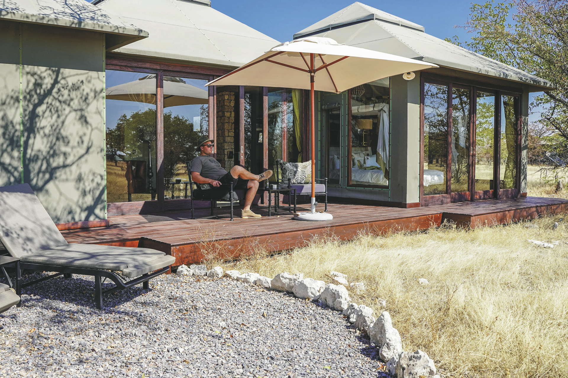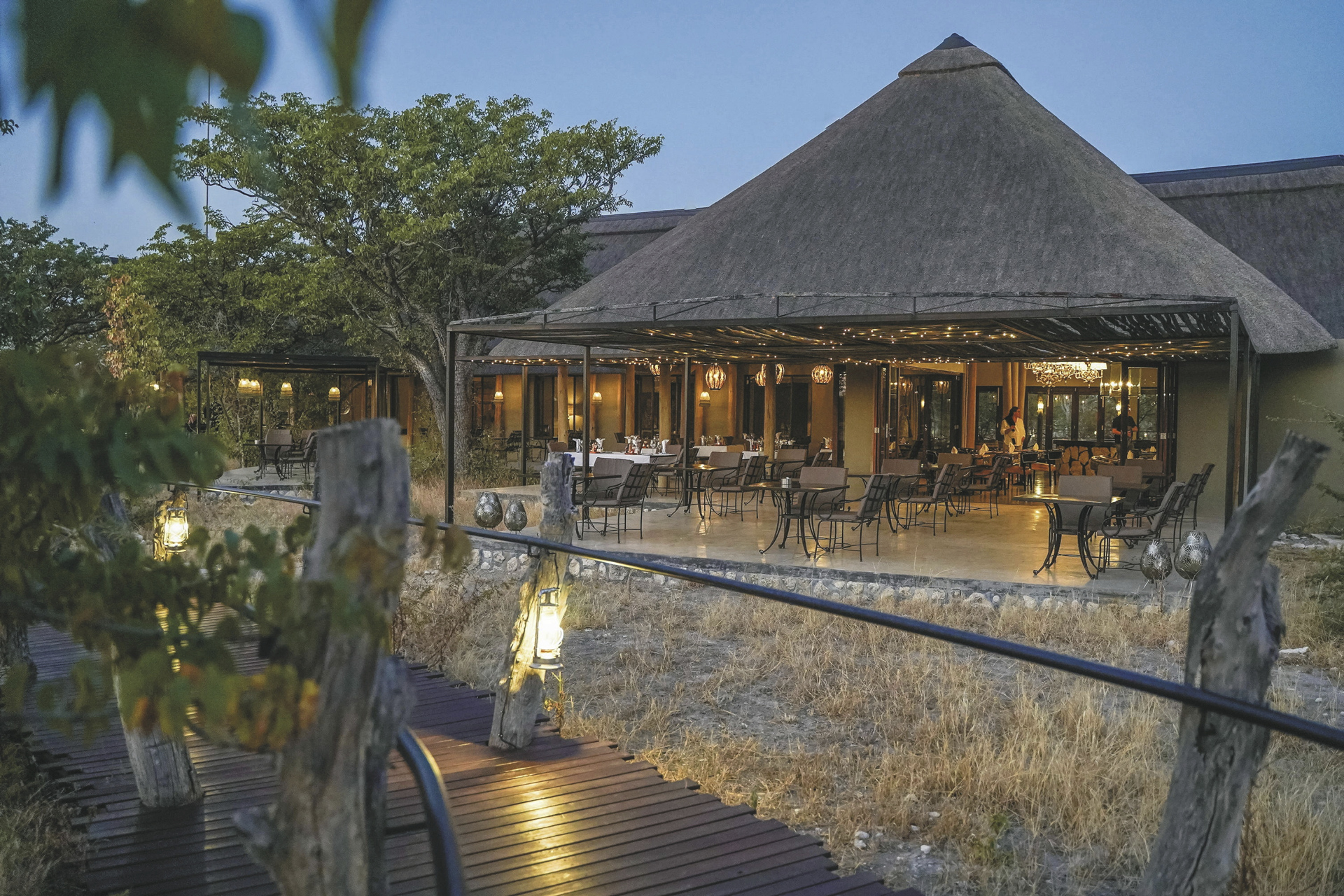 Die Etosha Oberland Lodge liegt in einem ca. 5.500 Hektar großen, privatem Schutzgebiet nur wenige Kilometer vom berühmten Etosha Nationalpark. Die Lodge vereint Luxus mit jeder Menge Privatsphäre. Das Hauptgebäude, welches Sie über einen langen Holzsteg erreichen, verfügt über Lounge mit Kamin für kühle Winterabende, Restaurant, Terrasse und Bar und ist umgeben von großen, uralten Mopanebäumen. Vom großen Pool bietet sich ein toller Blick in die offene Grasebene vor der Lodge und zu den beiden Wasserlöchern. Mit etwas Glück schauen hier auch gerne die Gnus, Antilopen oder weitere Wildtiere vorbei. Während sich die Sonne langsam dem Horizont nähert und sich alle Farben verändern lässt sich dieses Schauspiel wunderbar mit einem Getränk von den kleinen privaten Sitzinseln beobachten. Den Safaritag lassen Sie am besten am Lagerfeuer ausklingen. Optionale Aktivitäten: ganztägige Pirschfahrt im Etosha Nationalpark, geführte Wanderungen.