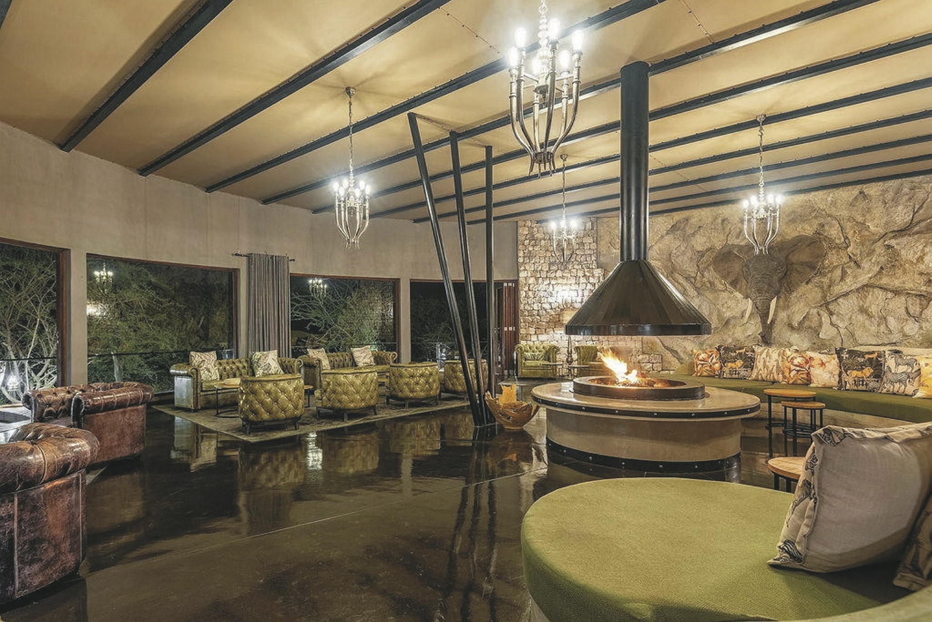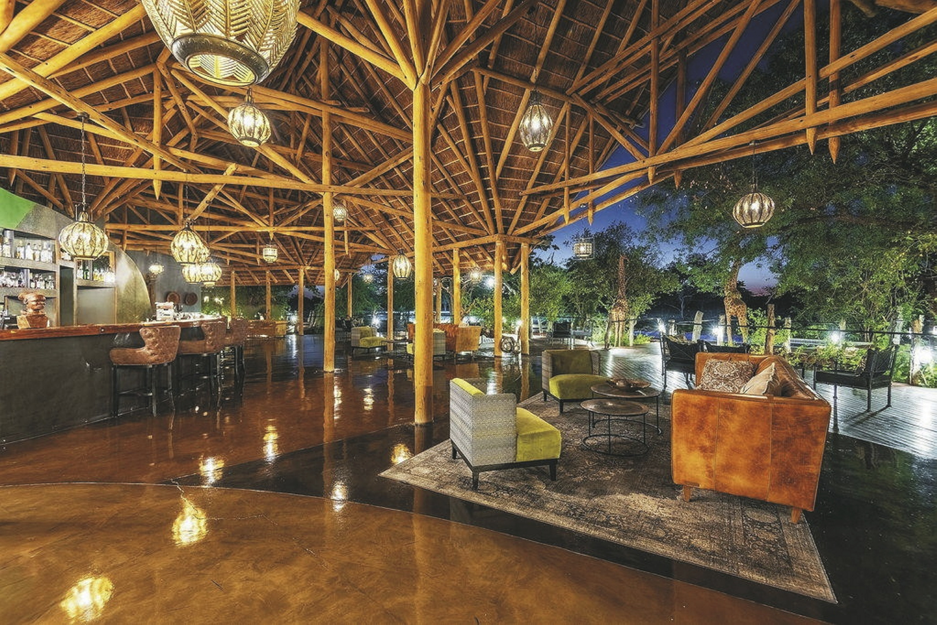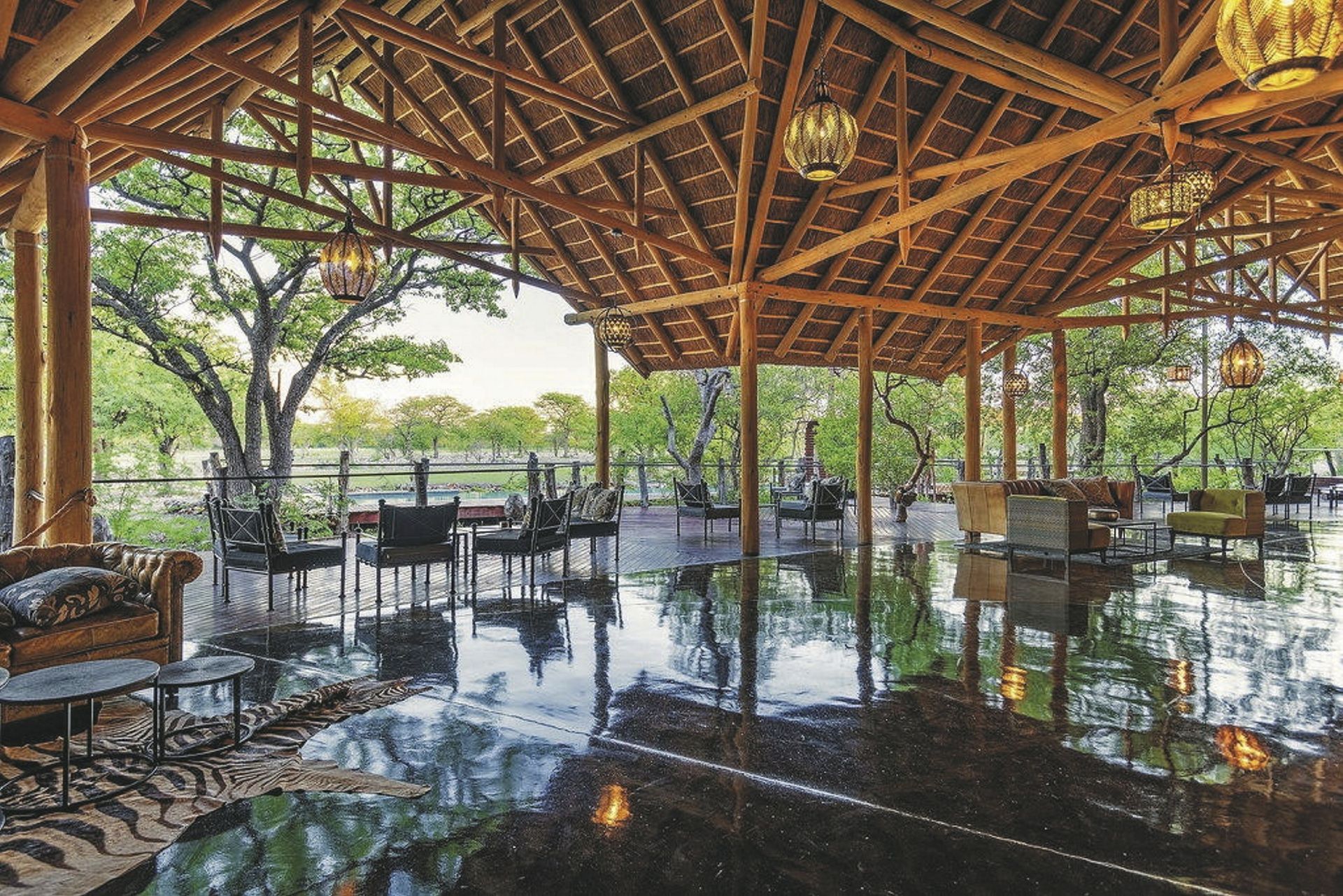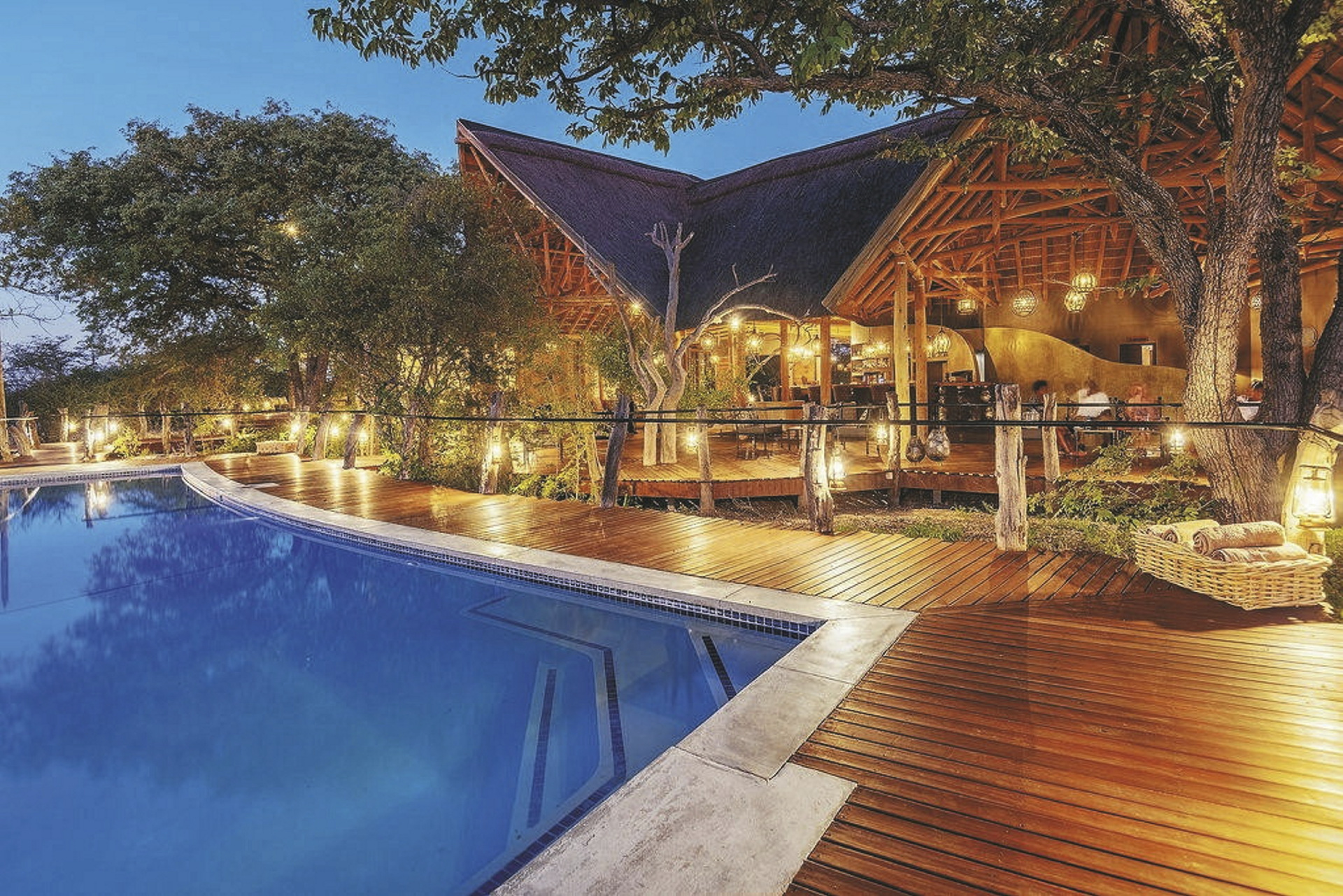 Die Etosha Oberland Lodge liegt in einem ca. 5.500 Hektar großen, privatem Schutzgebiet nur wenige Kilometer vom berühmten Etosha Nationalpark. Die Lodge vereint Luxus mit jeder Menge Privatsphäre. Das Hauptgebäude, welches Sie über einen langen Holzsteg erreichen, verfügt über eine Lounge mit Kamin für kühle Winterabende, ein Restaurant mit großer Terrasse und eine Bar. Es ist herrlich gelegen zwischen großen, uralten Mopanebäumen. Vom großen Pool bietet sich ein toller Blick in die offene Grasebene vor der Lodge und zu den beiden Wasserlöchern. Mit etwas Glück schauen hier auch gerne die Gnus, Antilopen oder weitere Wildtiere vorbei. Während sich die Sonne langsam dem Horizont nähert und sich alle Farben verändern lässt sich dieses Schauspiel wunderbar mit einem Getränk von den kleinen privaten Sitzinseln beobachten. Den Safaritag lassen Sie am besten am Lagerfeuer ausklingen. Optionale Aktivitäten: ganztägige Pirschfahrt im Etosha Nationalpark, geführte Wanderungen.