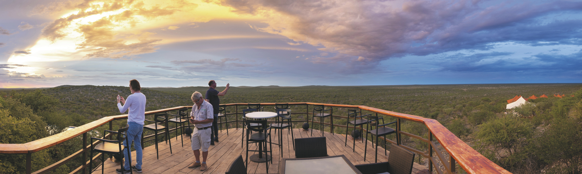 Die Etosha Safari Lodge besticht durch ihre großzügige Aussicht auf die Etosha-Landschaft und den zentralen, geräumigen Bereich mit Restaurant, Bar und vorgelagerter Terrasse. Tage voller Tierwunder stehen im Einklang mit Komfort und Sorgfalt und schaffen ein außergewöhnliches Etosha-Erlebnis. Nach einem ereignisreichen Tag locken drei Pools mit Erfrischung. Von der Sonnenuntergangsplattform beobachten Sie wie die rote Kugel der Sonne anmutig in der Landschaft versinkt. Genießen Sie Ihr Abendessen unter einem Sternenzelt auf der Terrasse, und lassen Sie anschließend am Feuer den Tag Revue passieren. Es könnte nicht besser sein. Wenn die Sterne ihr himmlisches Schauspiel beginnen, rufen weiche Betten und tierische Träume - und die Vorfreude auf einen weiteren ereignisreichen Tag. Optionale Aktivitäten: halb- und ganztägige Pirschfahrten.